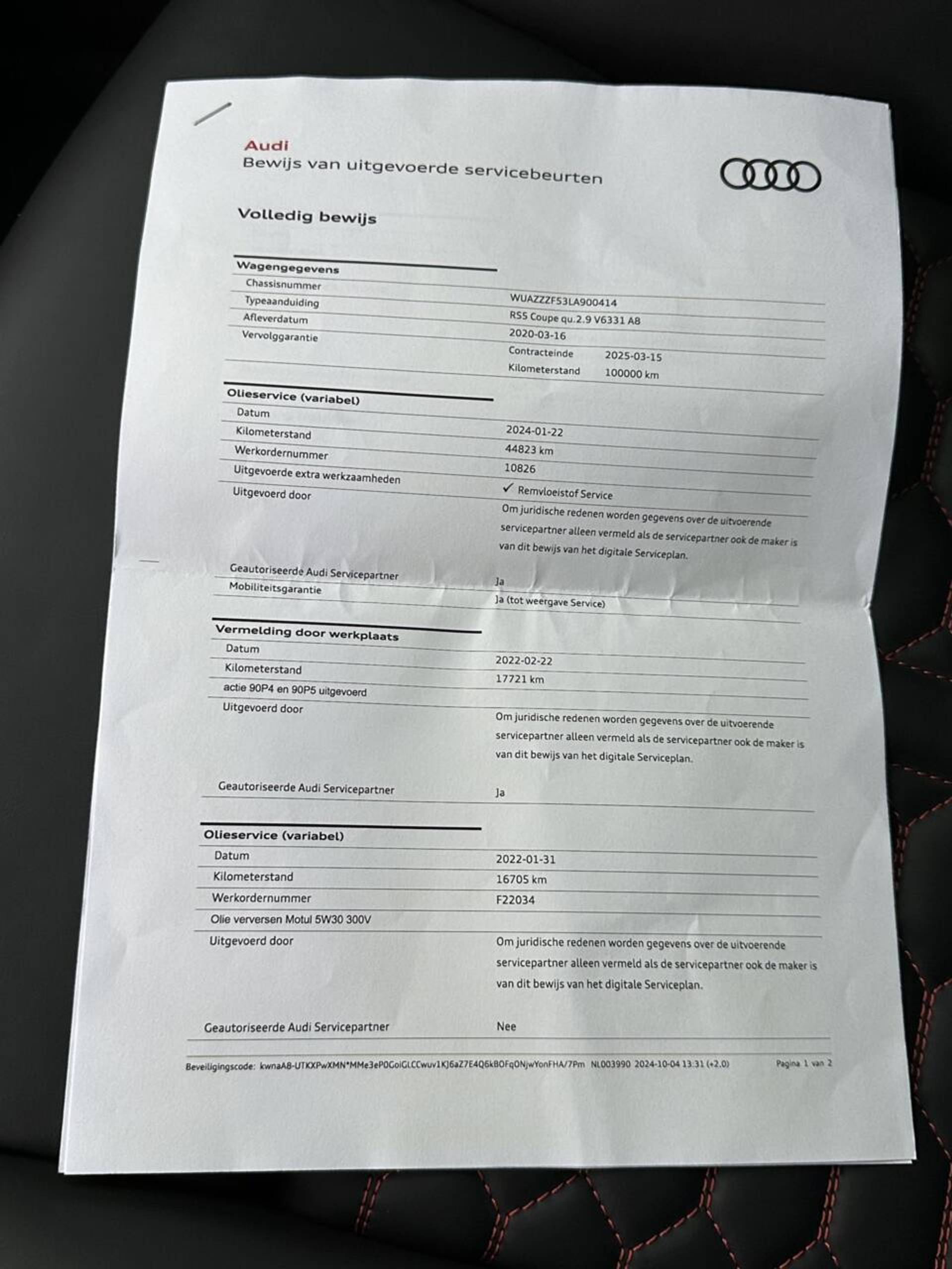- Onderhoudshistorie aanwezig: Ja