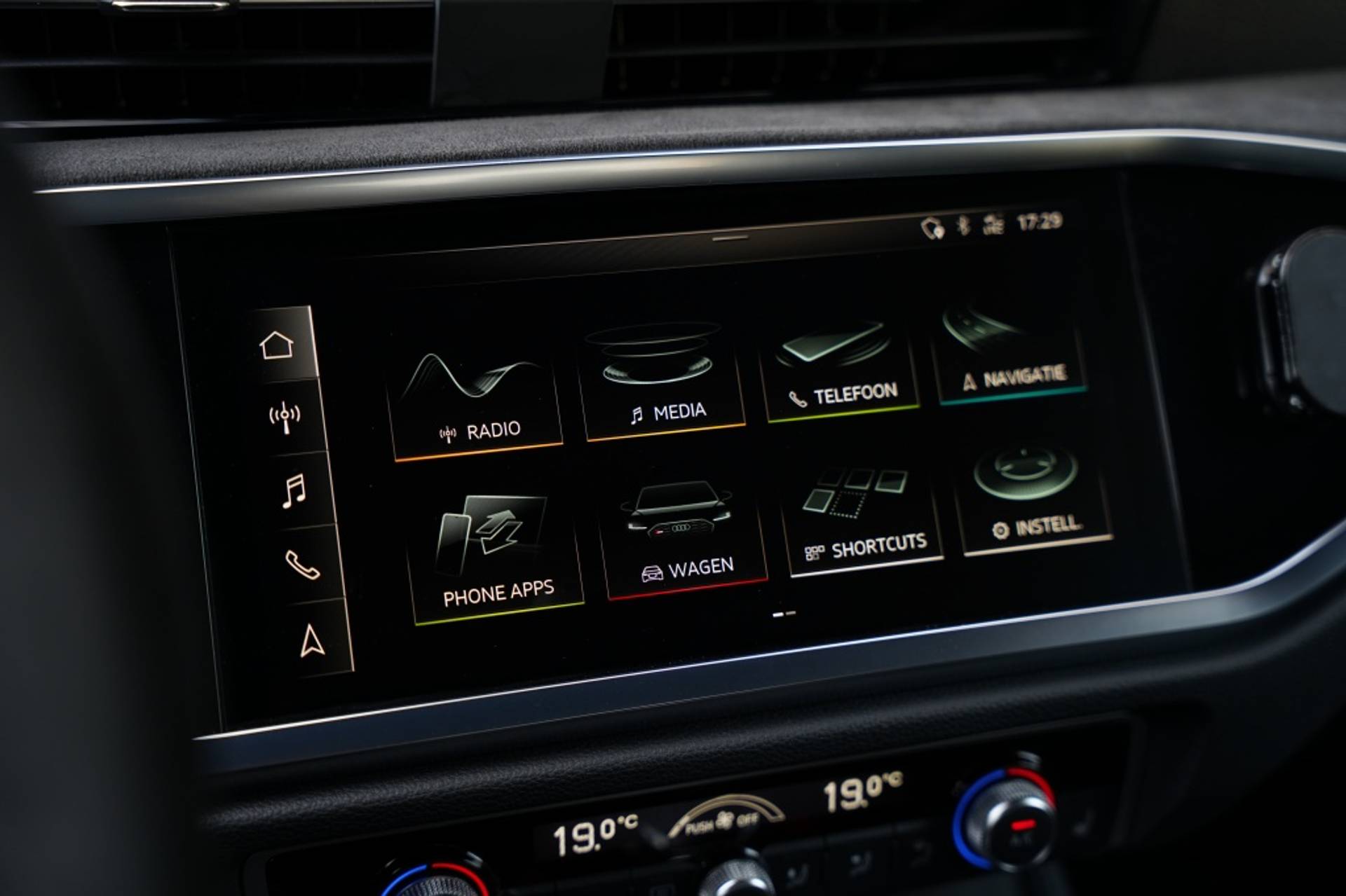 De Audi RSQ3 in de opvallende groene kleur zorgt voor een unieke uitstraling op de weg. De metallic lak geeft de auto een extra glans en beschermt tegen weersinvloeden. De auto is voorzien van comfort-airco-automaat in 3 zones, waardoor jij en je passagiers altijd kunnen genieten van de perfecte temperatuur in het voertuig.