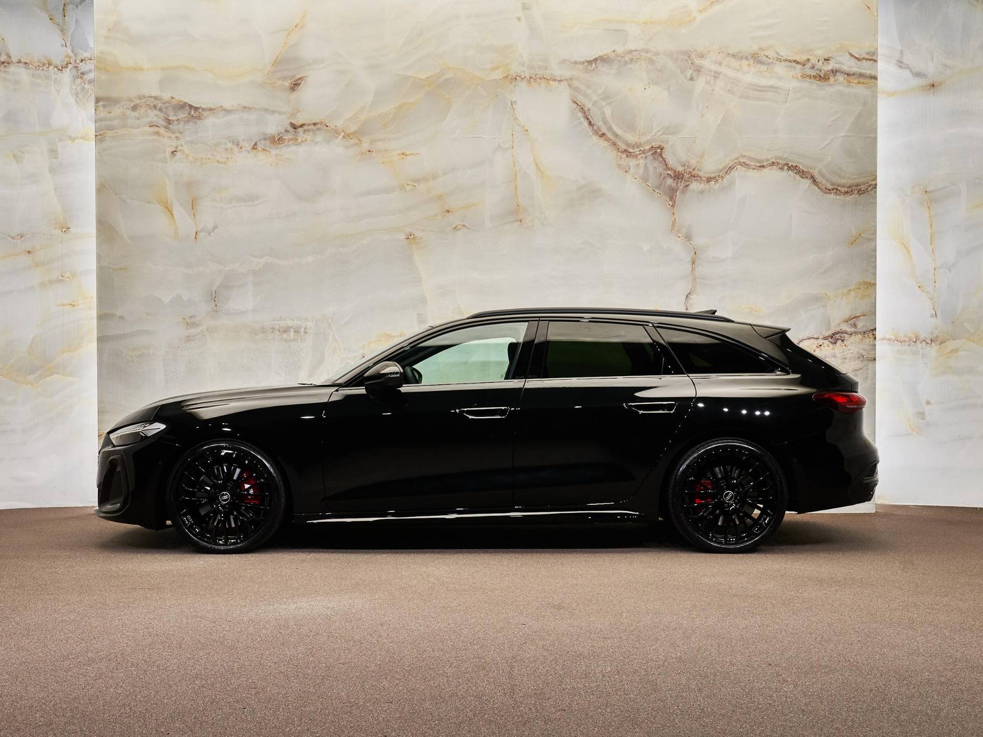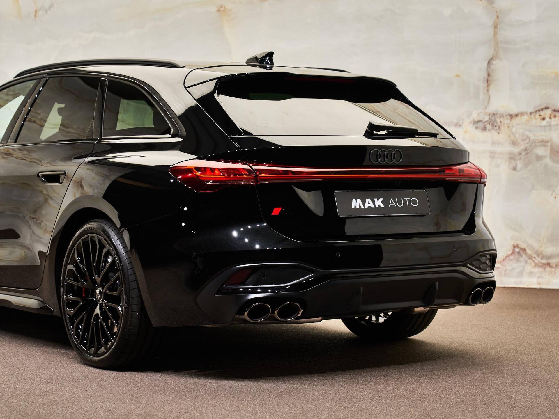 De Audi S5 Avant onderscheidt zich met het Optiekpakket zwart (PAH), waaronder hoogglans zwarte raamlijsten, zwarte spiegelkappen en zwarte uitlaatsierstukken.
