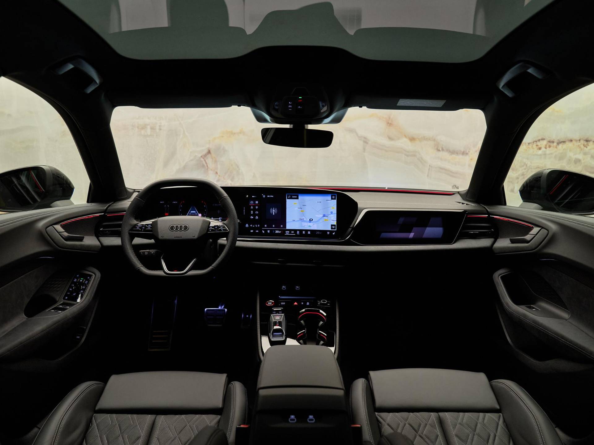 Het interieur is voorzien van elektrisch verstelbare sportstoelen plus (3L5), uitgevoerd in nappaleder zwart met ruitstiksels (PWO). De voorstoelen beschikken over actieve ventilatie en massagefunctie (4D5), en ook de voor- én achterstoelen zijn verwarmbaar (4A4). Het multifunctioneel sportstuurwiel (1XY) is voorzien van schakelpaddels en stuurverwarming. De automatisch te openen en sluiten achterklep met sensorbediening (4E7) en de zwenkbare trekhaak (1D4) verhogen het gebruiksgemak. Daarnaast is deze S5 uitgerust met elektronische interieurvoorverwarming (9M1) en comfortsleutel met safebeveiliging (4K6).