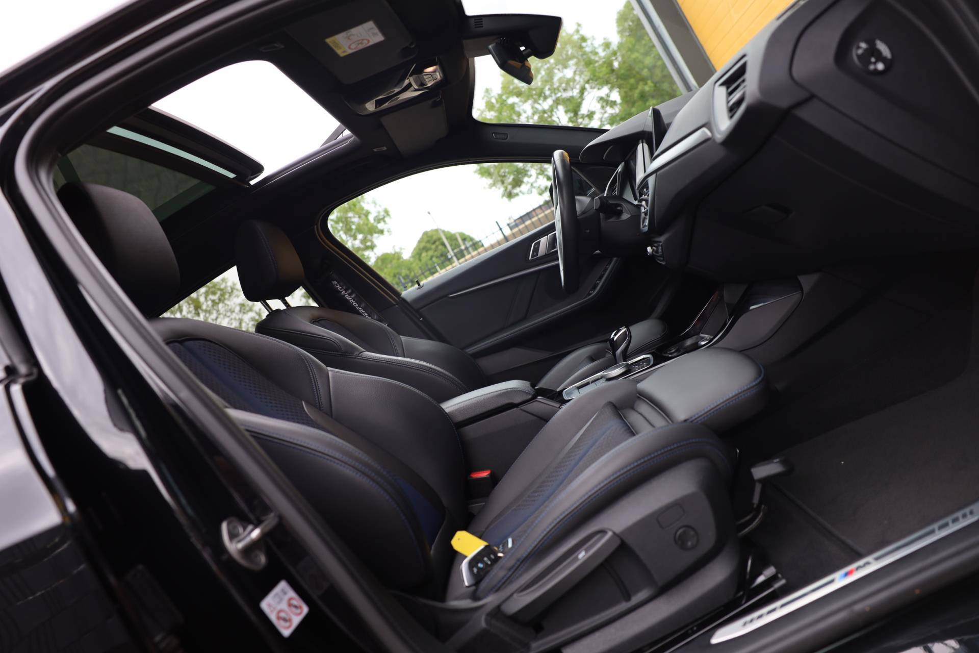 Deze luxe BMW 1-serie 118i M Line beschikt o.a. over: airco, elektrische ramen en spiegels, apple carplay, navi, open panoramadak, digital cockpit, cruise control, sportstoelen, PDC, lichtmetalen velgen, xenon, en nog vele extra's.