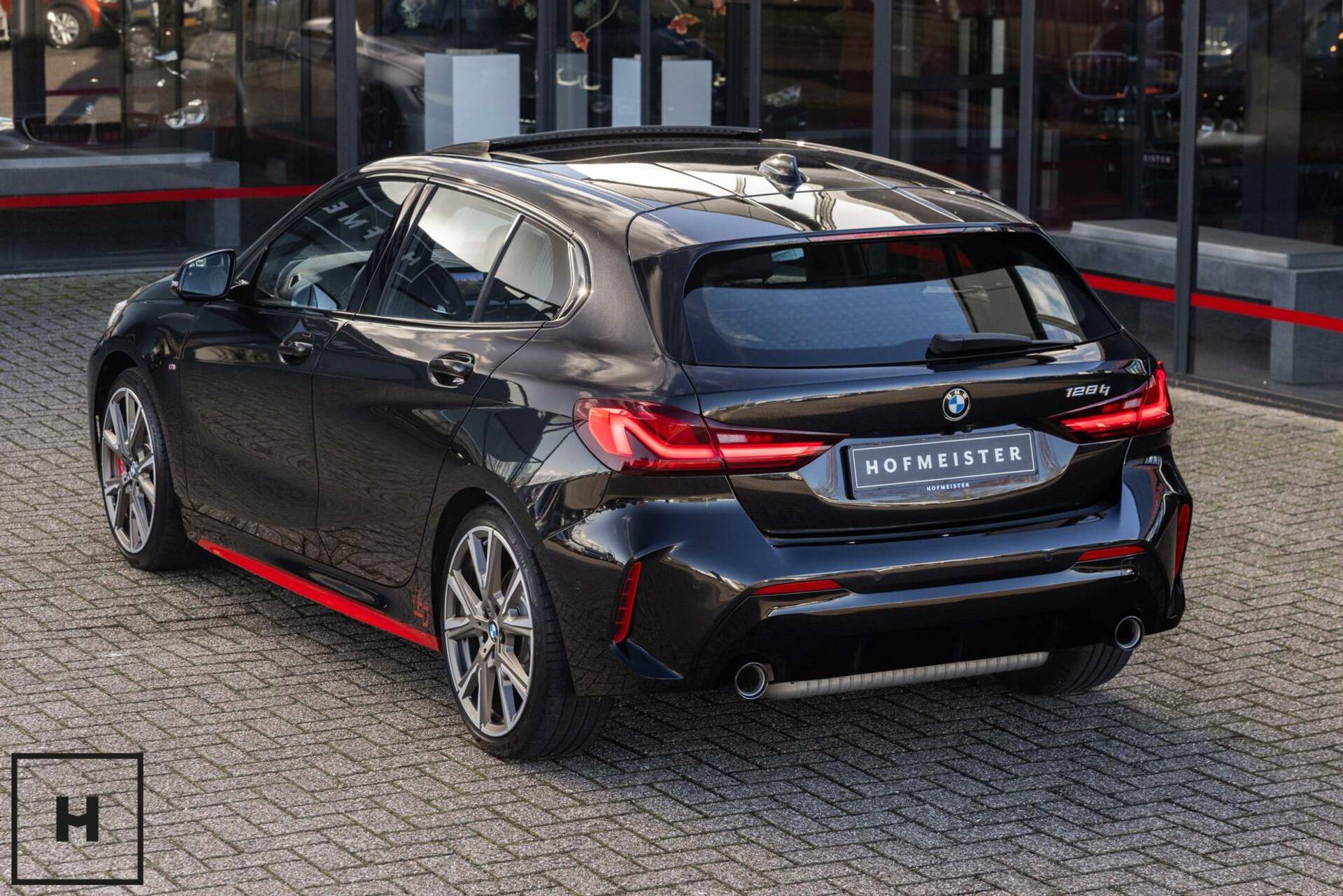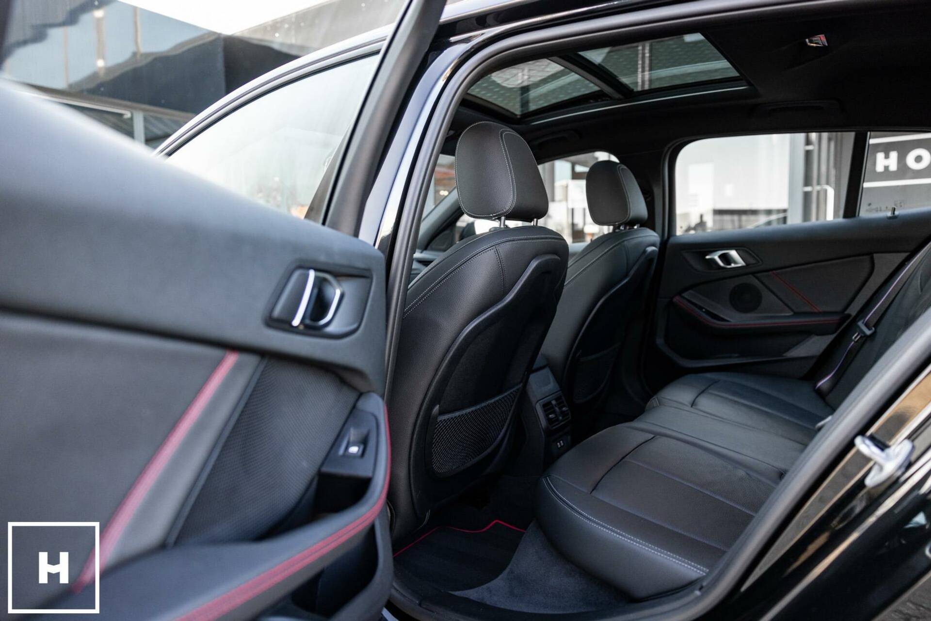 De voor de 128ti typische rode striping komt op een zwarte auto het beste tot zijn recht (en zijn overigens eenvoudig te verwijderen…). Dit is een bijzonder complete 1 Serie, met bijvoorbeeld panoramadak, Head-up Display, Hifi luidsprekersysteem, elektrisch verstelbare voorstoelen, stuurverwarming, Comforttoegang en een elektrisch te openen en sluiten kofferklep.