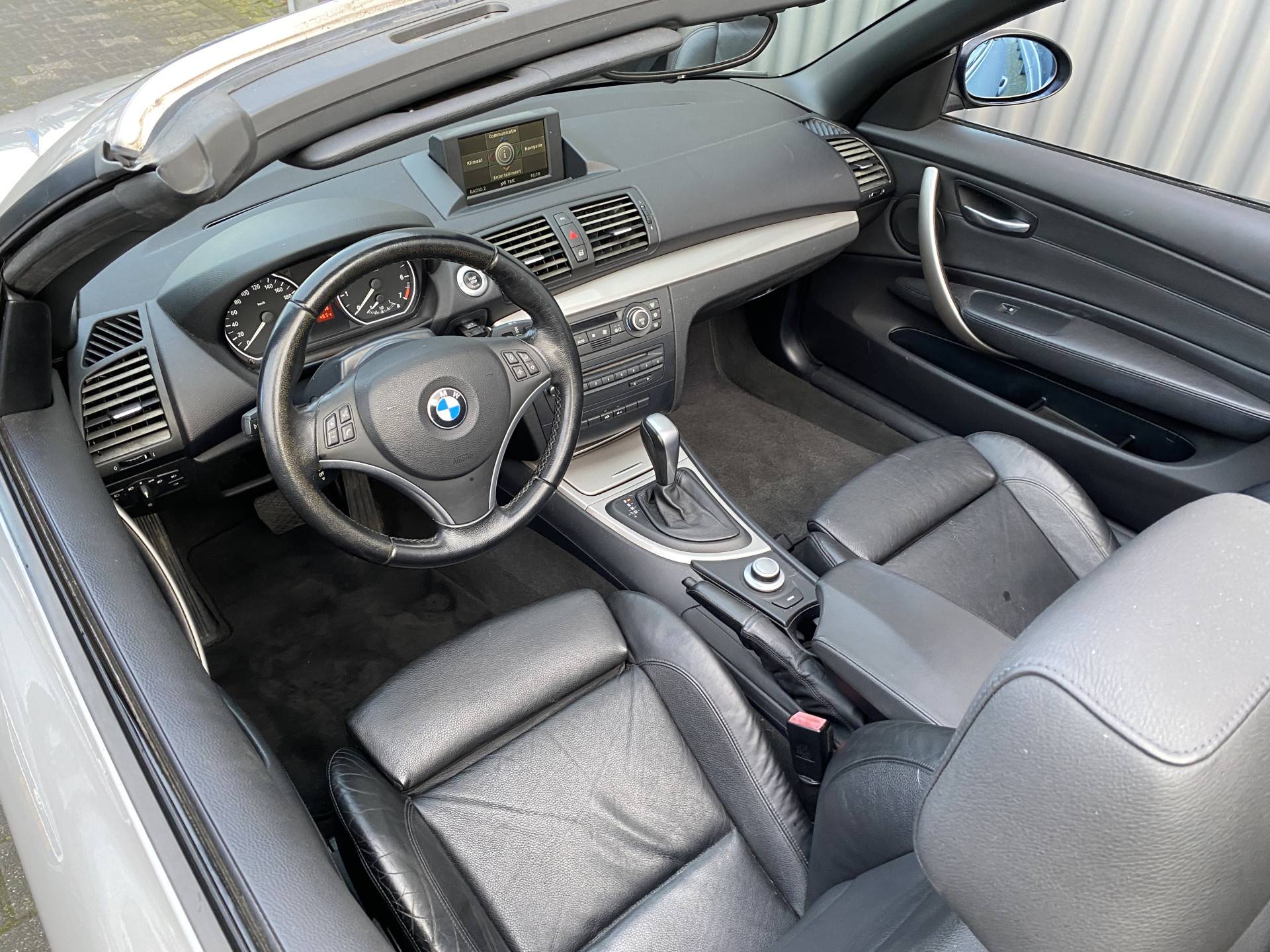WIJ ZIJN ALLEEN OPEN OP TELEFONISCHE AFSPRAAK. Bijzonder nette en rijk uitgeruste BMW 1-serie Cabrio 118i High Executive, slechts 133Dkm. NAP op de klok en met o.a. Automatische Klimaatregeling, Vol Lederen interieur, Navigatiesysteem, Cruise Control, Windscherm, Origineel Licht Metaal en Afneembare Trekhaak. Deze unieke auto wordt geleverd met nieuwe APK en inruil is uiteraard bespreekbaar.