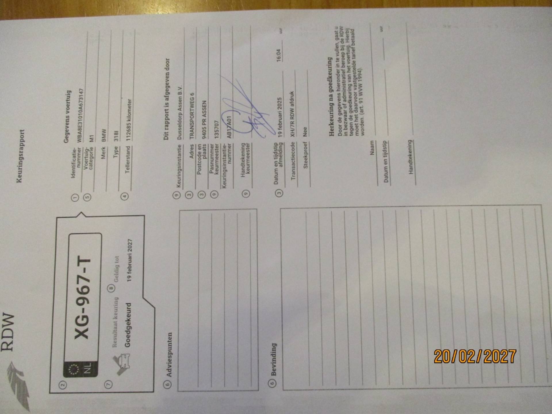 service incl APK uitgevoerd door de BMW dealer op 20-2-2025.