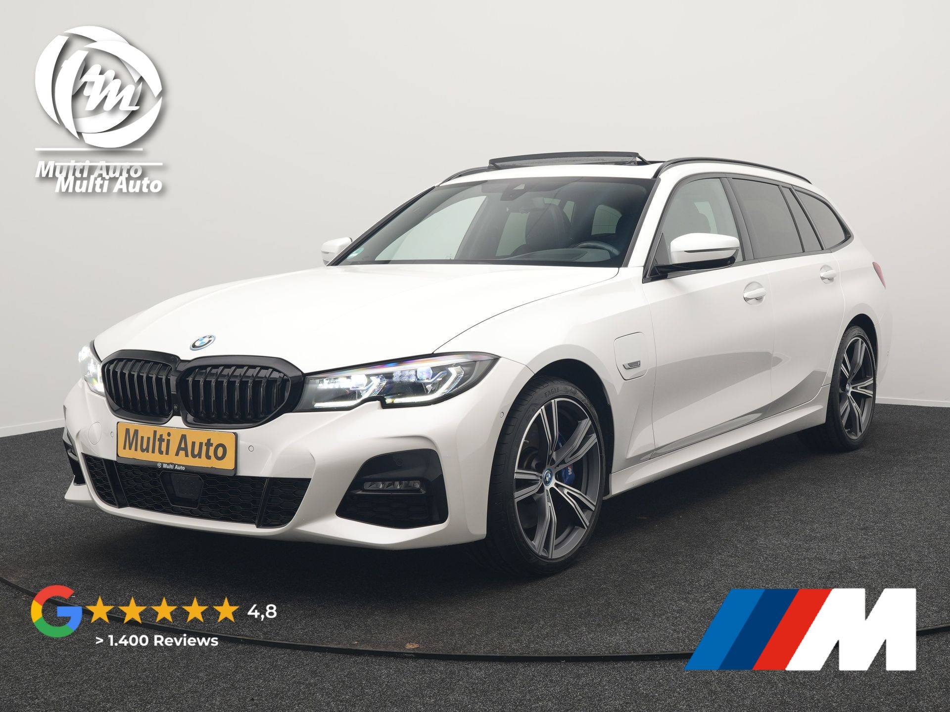 BMW 3-serie Touring 330e xDrive M Sport Plug In Hybrid 293pk Dealer O.H. PHEV | Panodak | Head Up | Adaptive Cruise | Laser LED | 360 Camera | Alcantara Sportstoelen Memory & Verwarmd | Sfeerverlichting | Apple Carplay | Keyless | Blis | Navigatie | Virtual | DAB