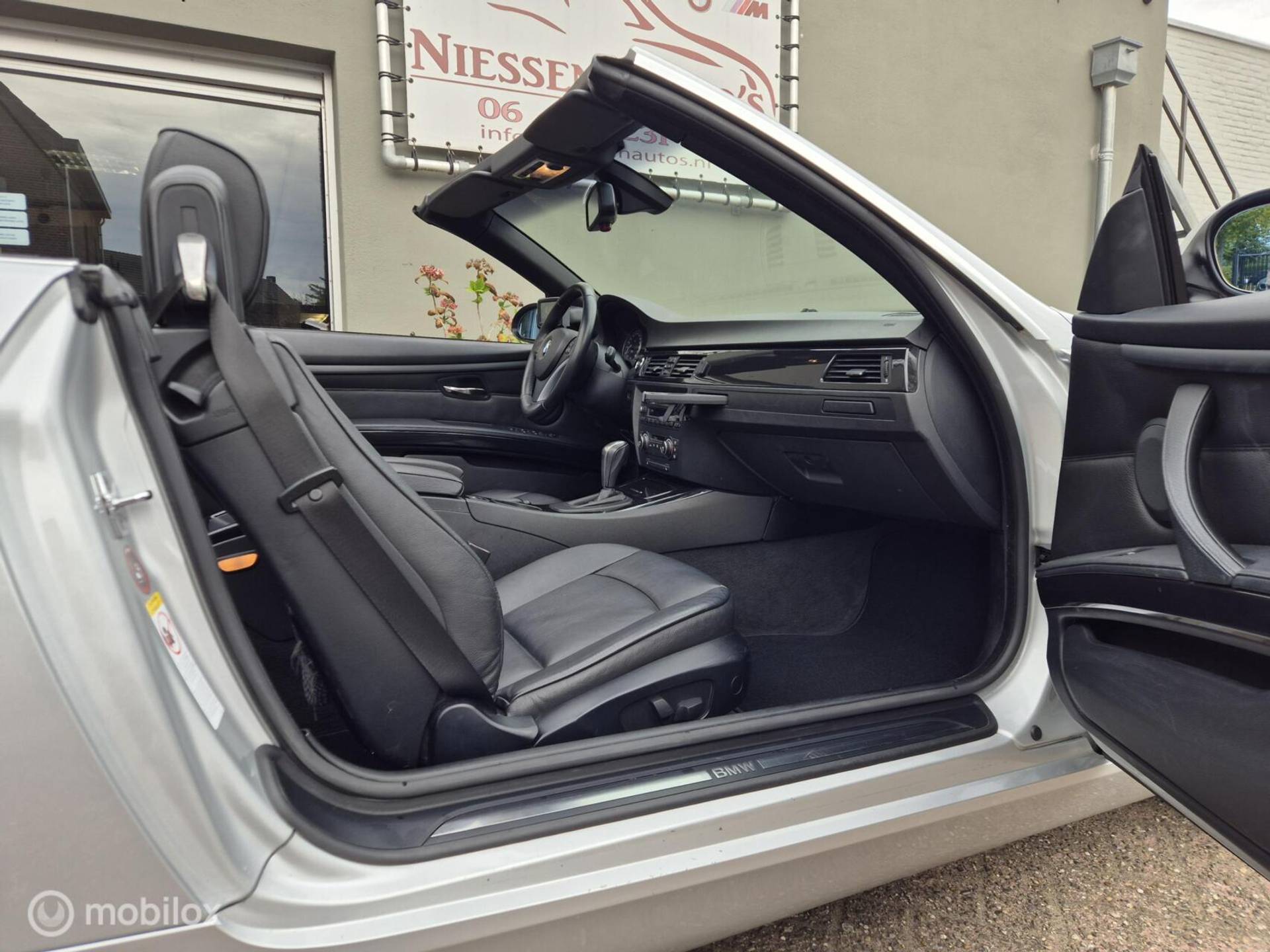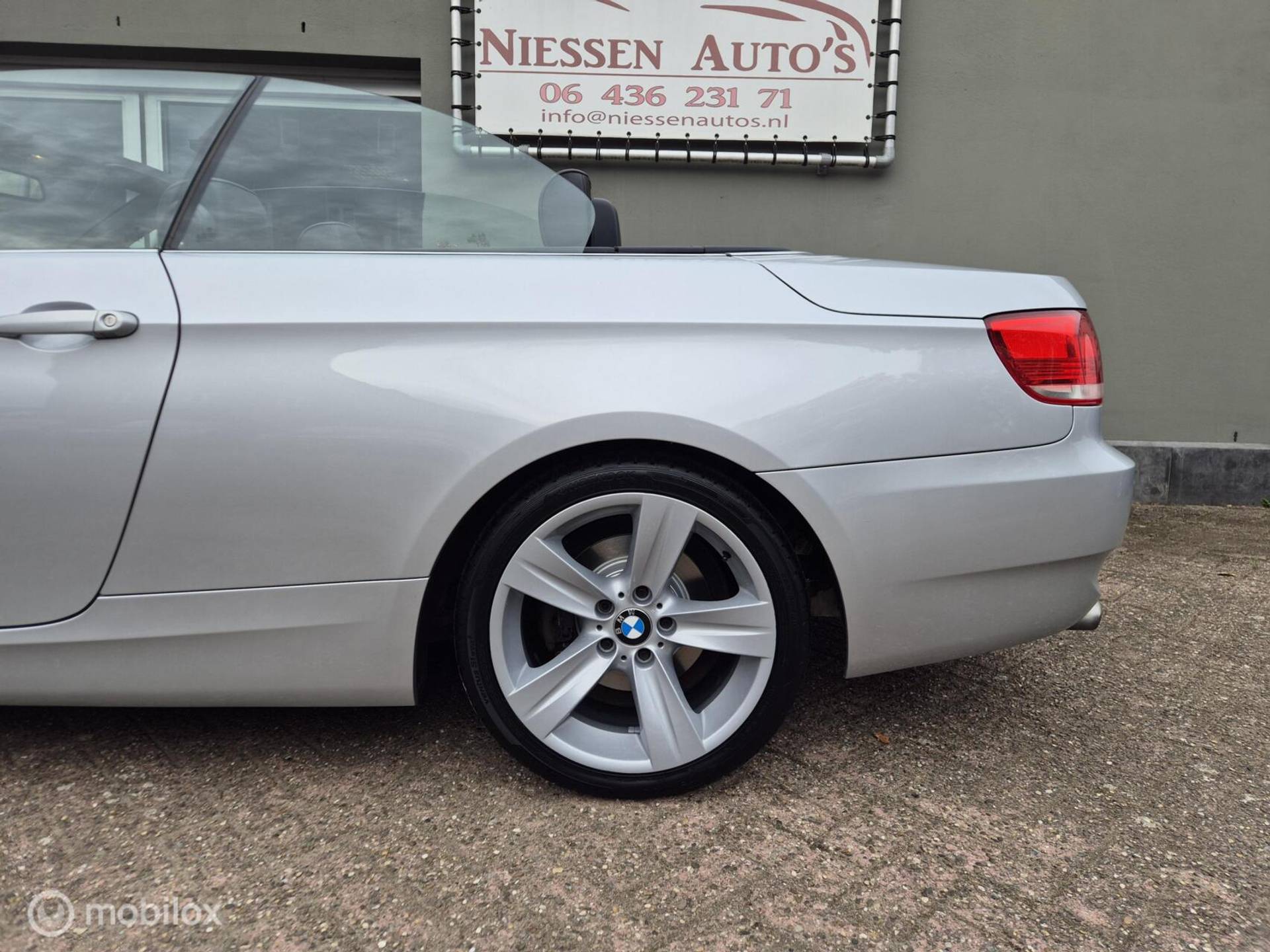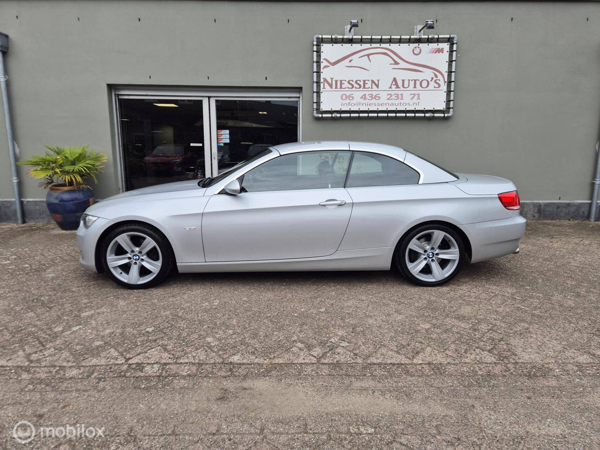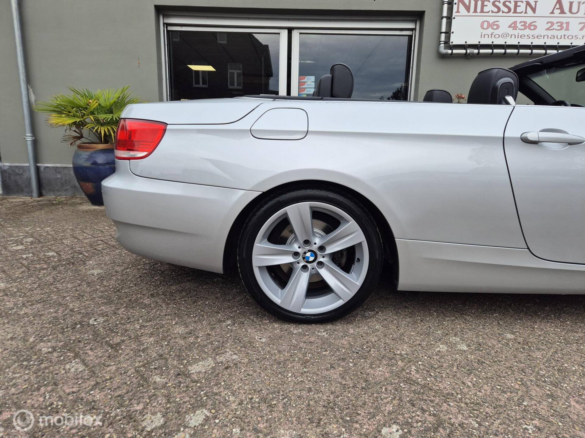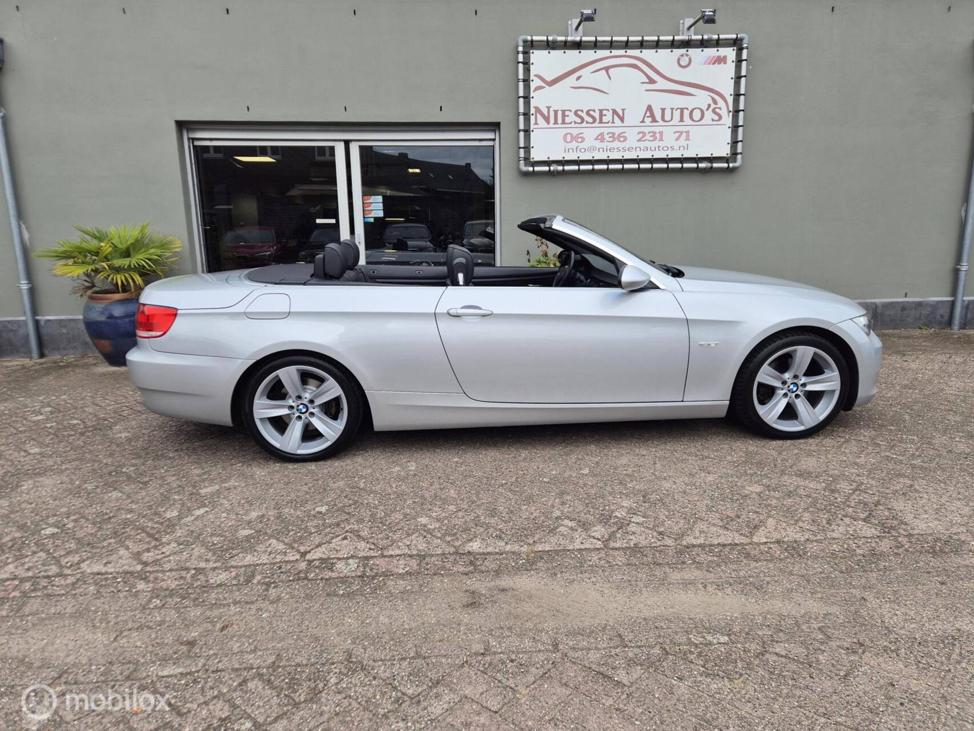 BMW 3-Serie E93 cabriolet High Executive afkomstig van de 3e eigenaar aangeboden. De BMW verkeert zowel van binnen als van buiten in zeer nette staat. Voorzien van de prachtige kleur Titansilber Metallic in combinatie met een zwart Lederen interieur met stoelverwarming & hoogglans zwarten sierlijsten, om het helemaal af te maken is de BMW voorzien van de 18 inch Style 189 breedset. Motorisch is de BMW voorzien van de krachtige doch zuinige N43 4 cilinder motor die 170pk levert & gekoppeld is aan een automatische versnellingsbak inclusief steptronic functie. De Complete onderhoudshistorie is aanwezig inclusief Nationale Autopas (NAP). Recent is de BMW voorzien van een onderhoudsbeurt incl nieuwe Distributieketting, Gereviseerd Differentieel (hardeman) 4 nieuwe banden & remmen aan de achterzijde. Enkele verdere opties van deze "High Executive" zijn: Xenon, Regensensor, Licht pakket, Stoelverwarming, Lederen bekleding, Parkeersensoren, Comfort pakket, Navigatie etc.