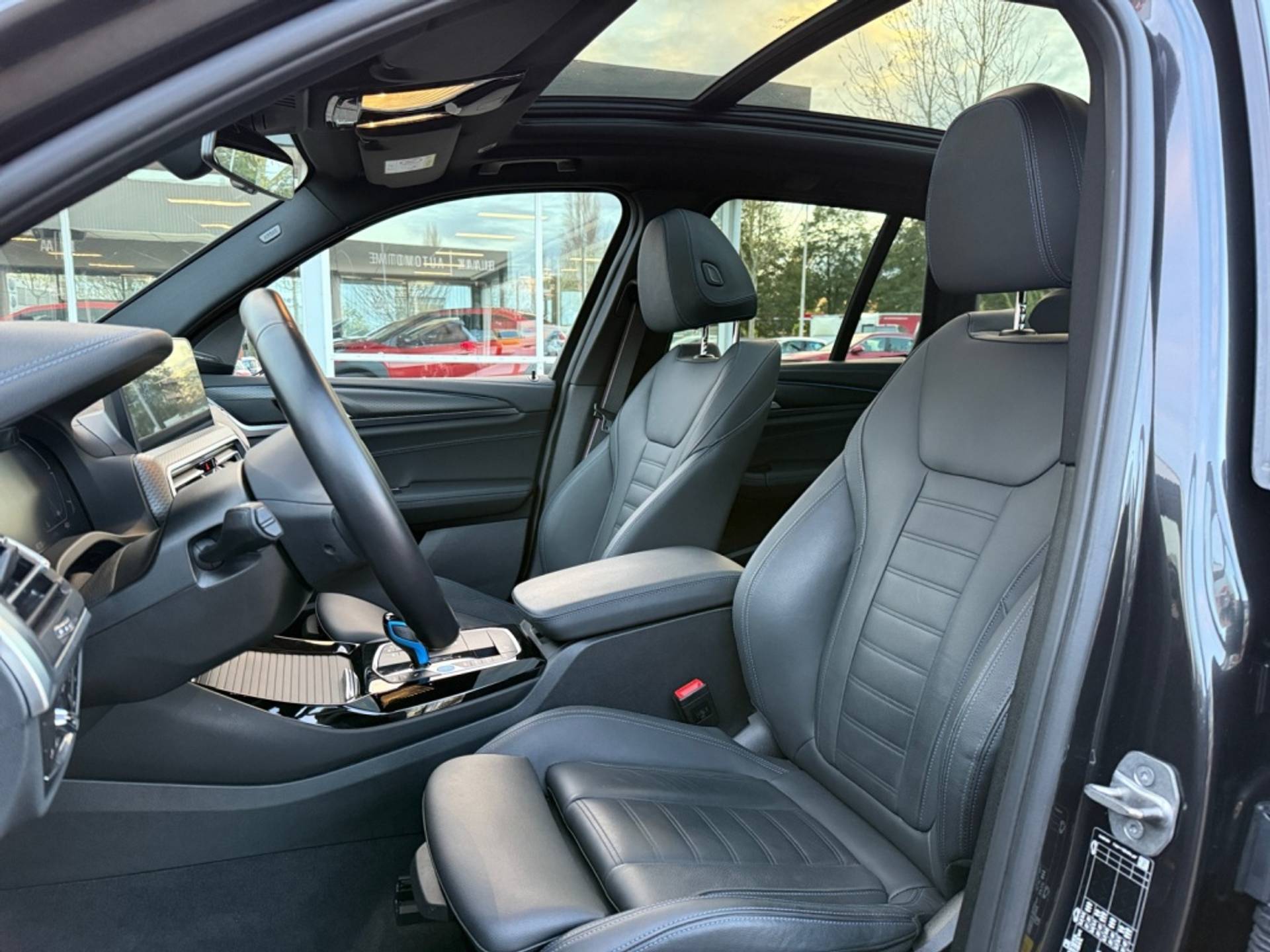 Nooit meer tanken. Een laadkabel volstaat om het accupakket van deze Bmw iX3 op te laden. Het aantal kilometers dat u op een acculading kunt rijden, is ruimschoots genoeg voor de gangbare dagelijkse ritten, en het opladen kan in de meeste gevallen 's nachts gebeuren. Voorzien van een lederen interieur: stijl en kwaliteit voor u en uw passagiers! Koude start? Niet met de verwarmbare voorstoelen! Goeie looks? Jazeker! Maar de sportstoelen zorgen ook voor een goed gesteunde en comfortabele zit. Wat een licht geeft dat glazen elektrisch bedienbare panoramadak. De achterklep opent automatisch met een druk op de knop. Handig als u met volle handen staat. Ook is de auto voorzien van: 20 inch lichtmetalen velgen, LED koplampen, adaptief dempingsysteem, geluidsisolerende ramen, in delen neerklapbare achterbank en LED-achterlichten.