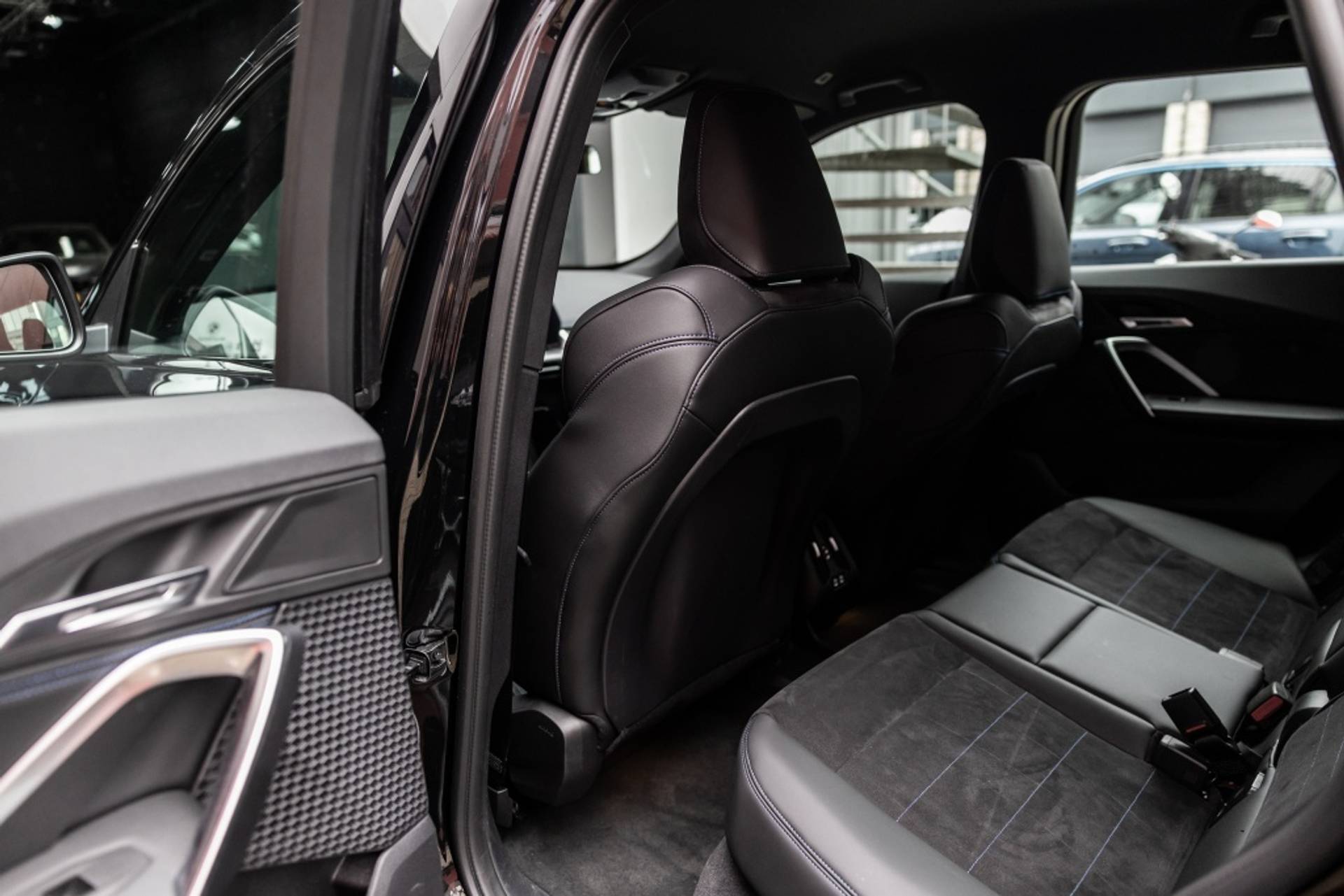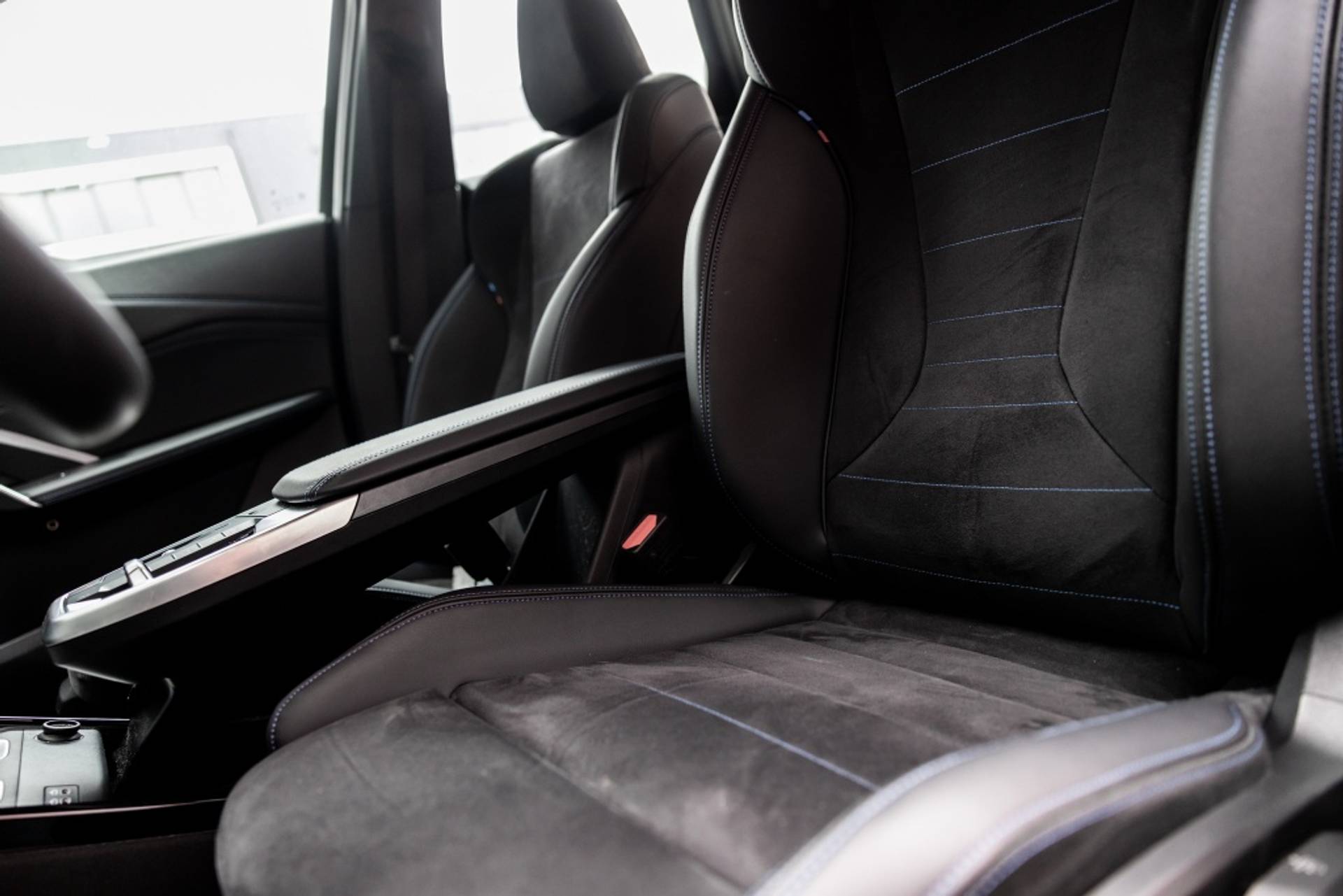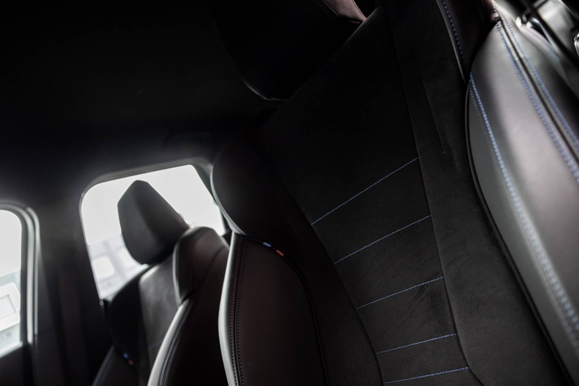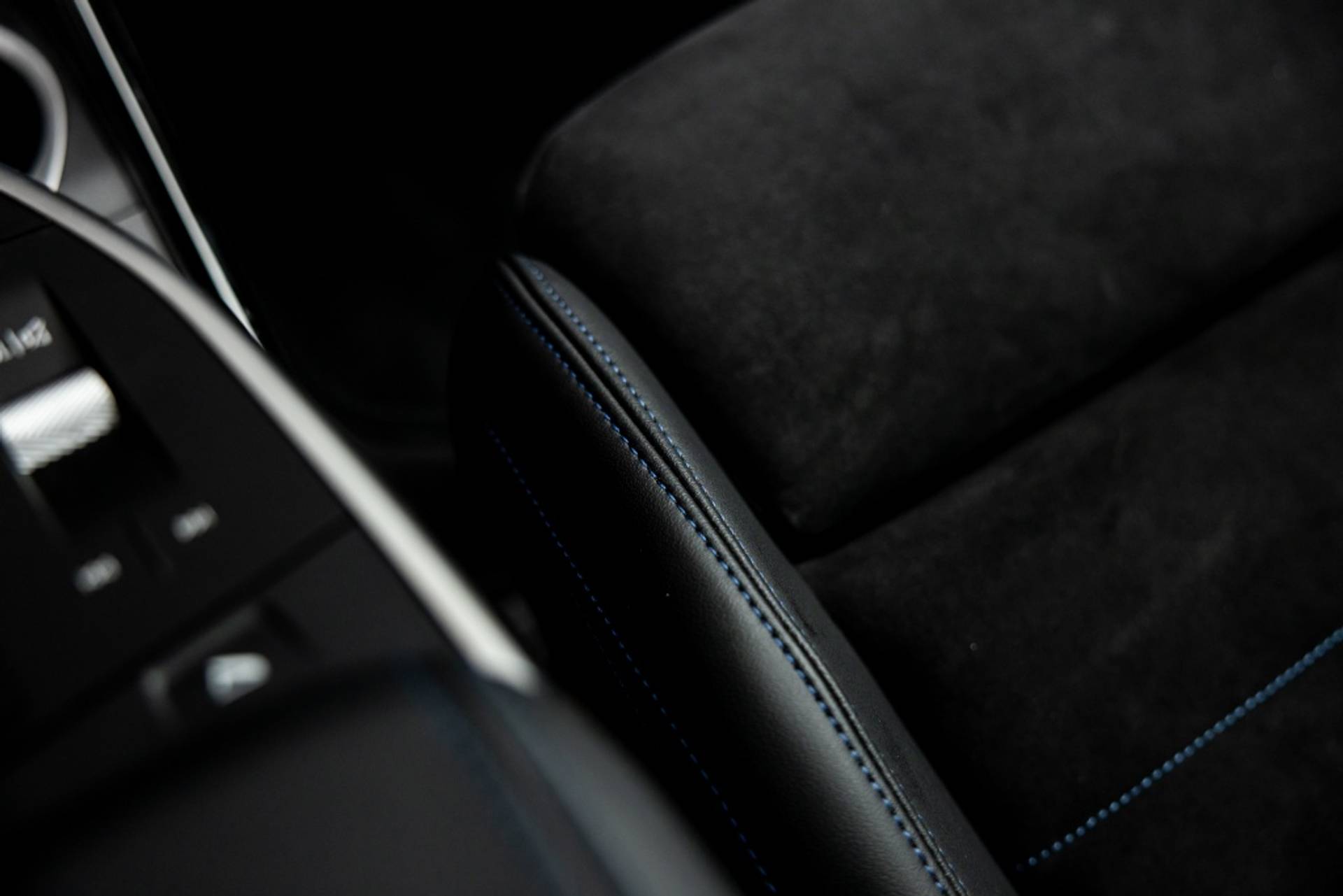 ✓ Stoelbekleding/kussens: M Alcantara / Veganza Combinatie (Zwart met blauw Contraststiksels)