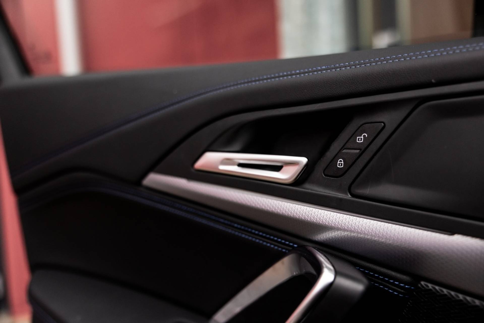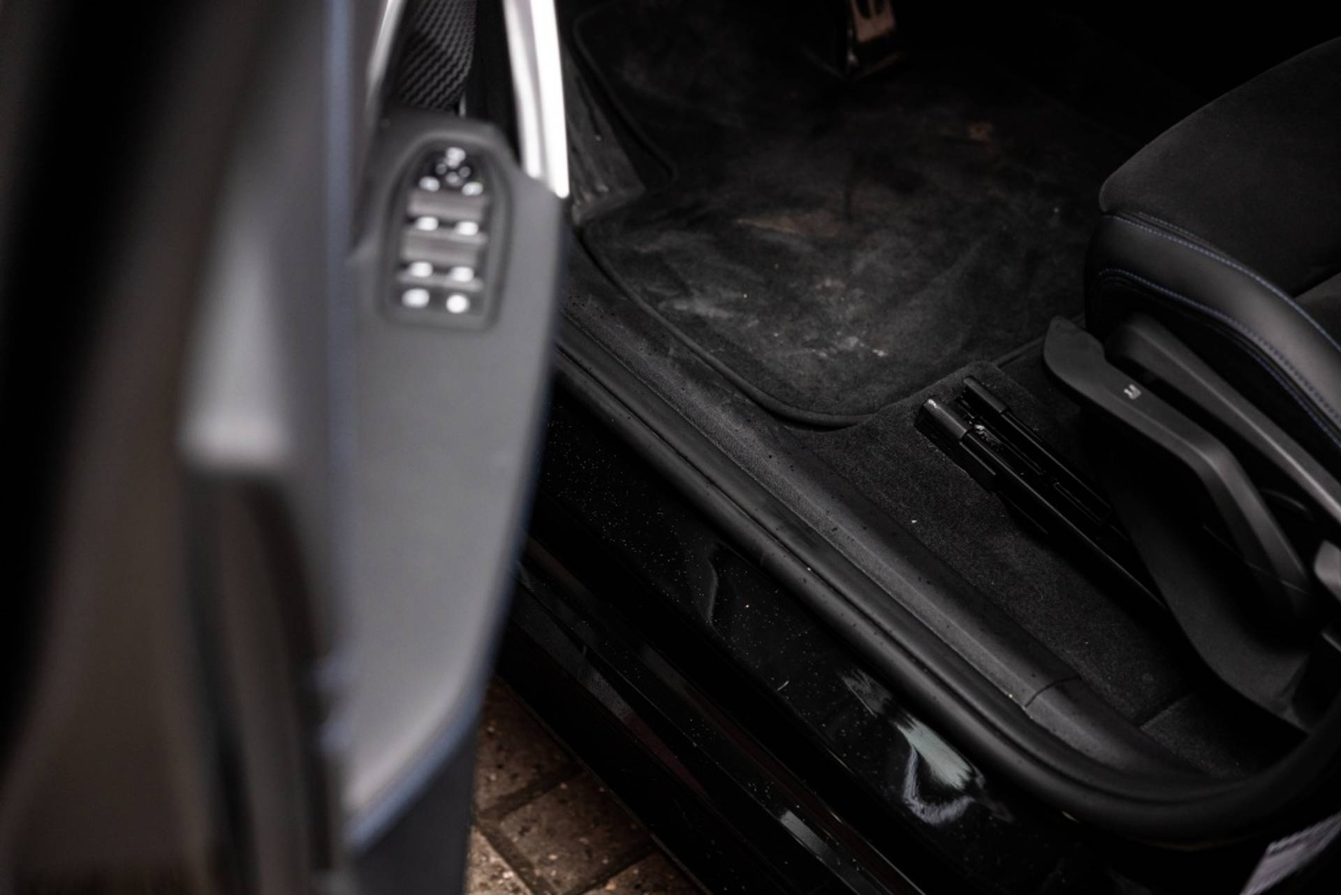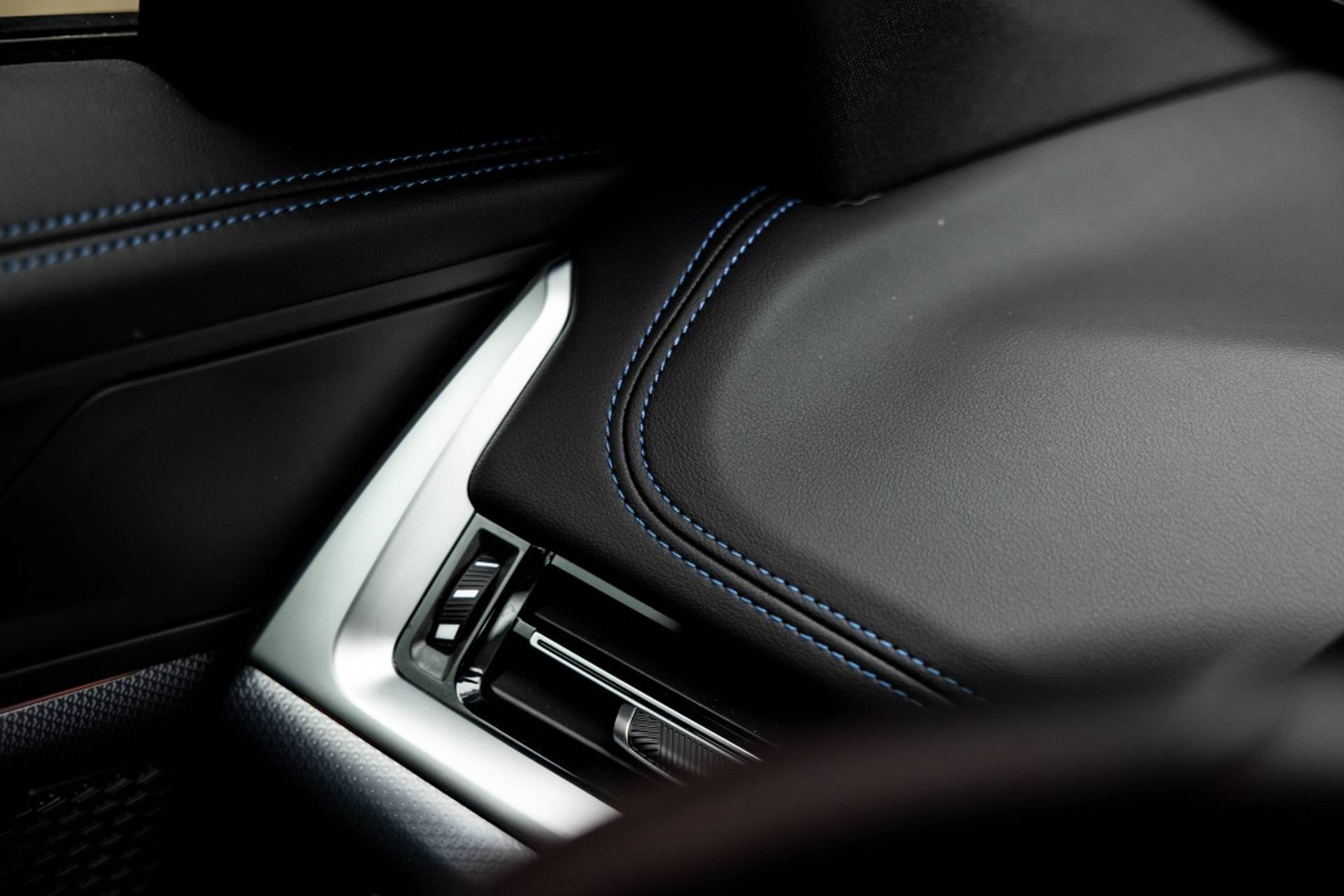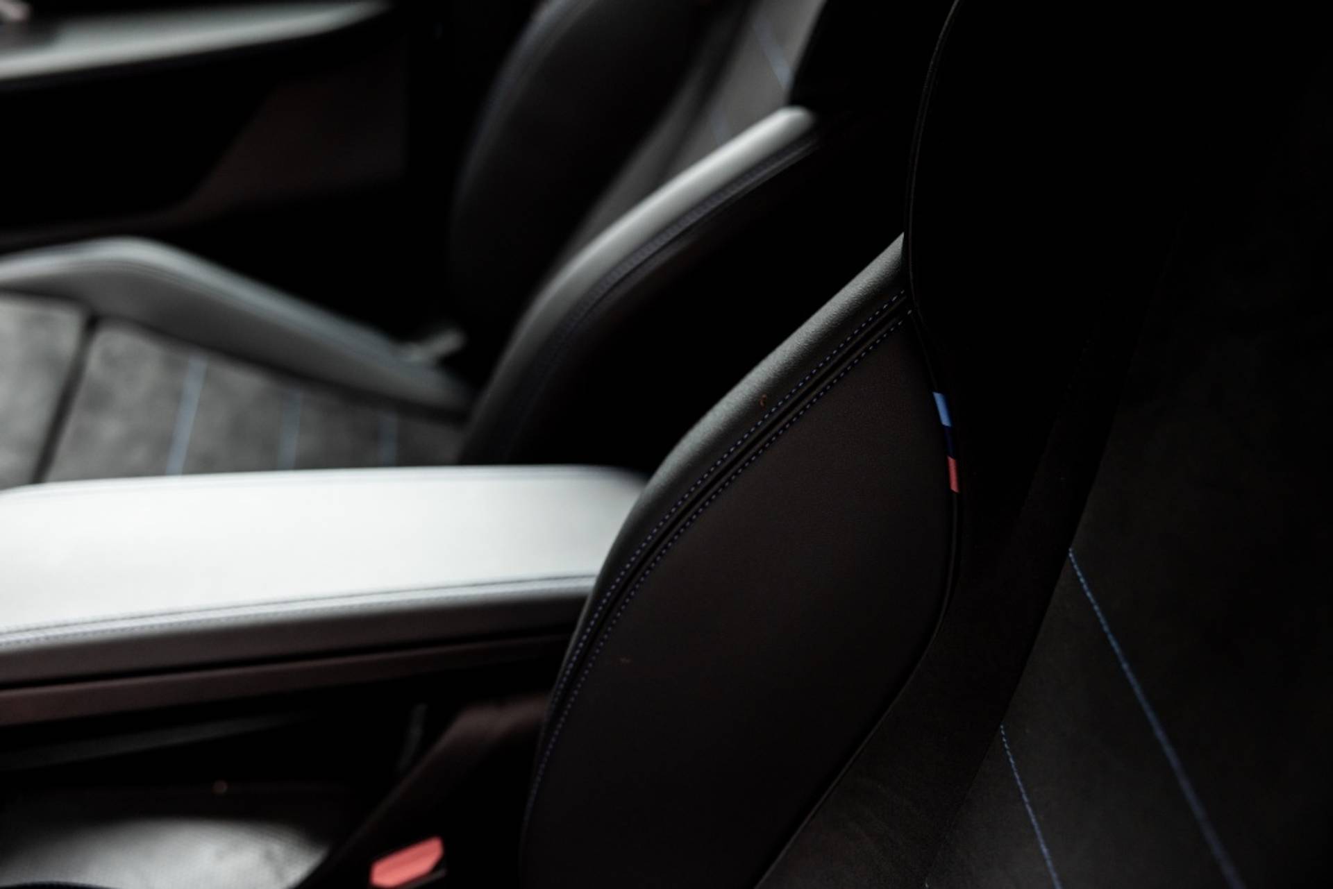 ✓ Stoelbekleding/kussens: M Alcantara / Veganza Combinatie (Zwart met blauw Contraststiksels)