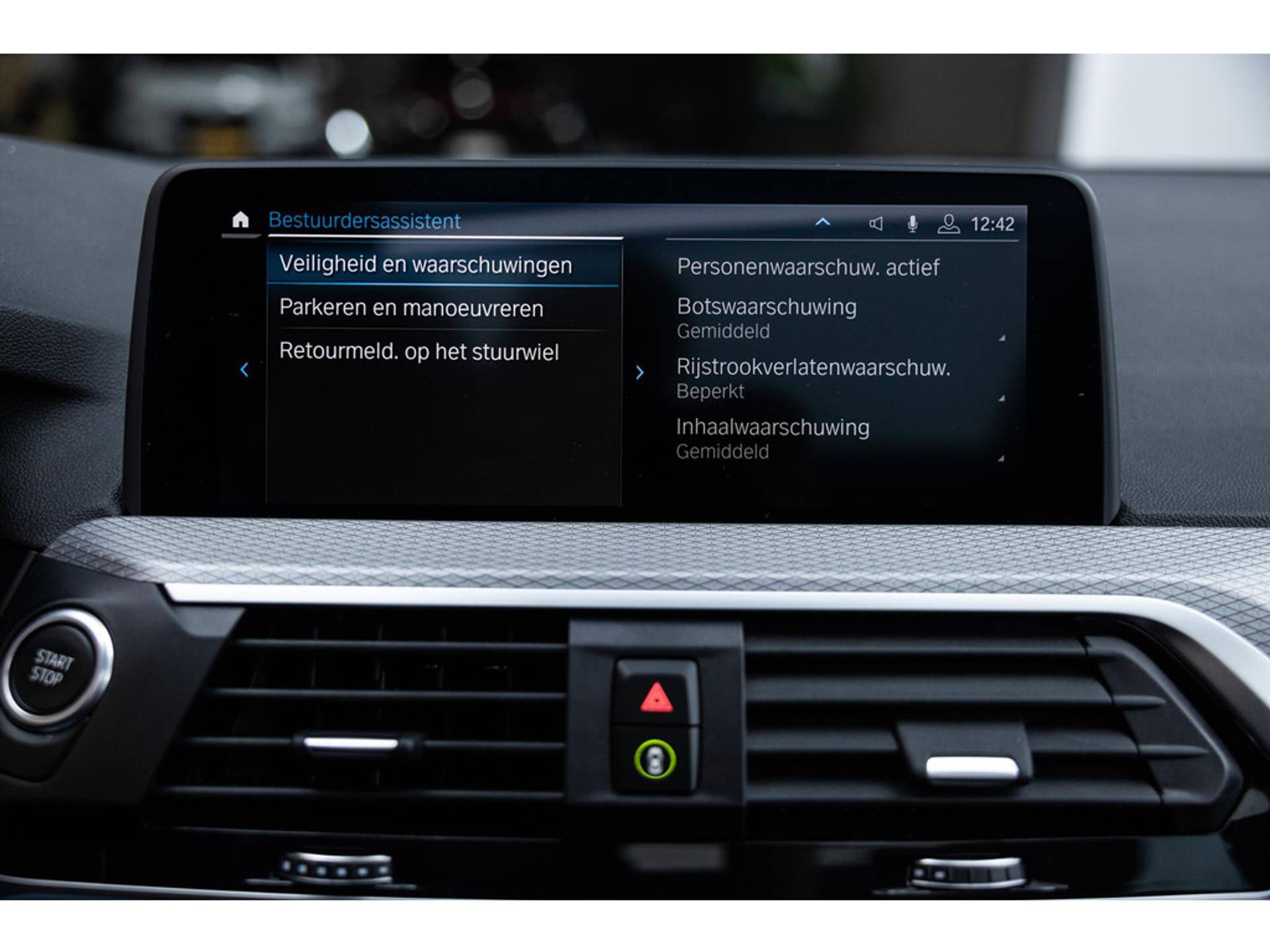 Deze BMW is voorzien van verschillende intelligente veiligheidsvoorzieningen. Ze kijken tijdens het rijden als het ware met u mee, ze signaleren potentieel gevaarlijke situaties en in een aantal gevallen kunnen ze ook ingrijpen. Hou de weg in het vizier! De head-up display zorgt dat u de dashboardinfo in beeld geprojecteerd krijgt. Wanneer u onbedoeld buiten uw rijstrook terechtkomt, geeft lane assist een waarschuwingssignaal.