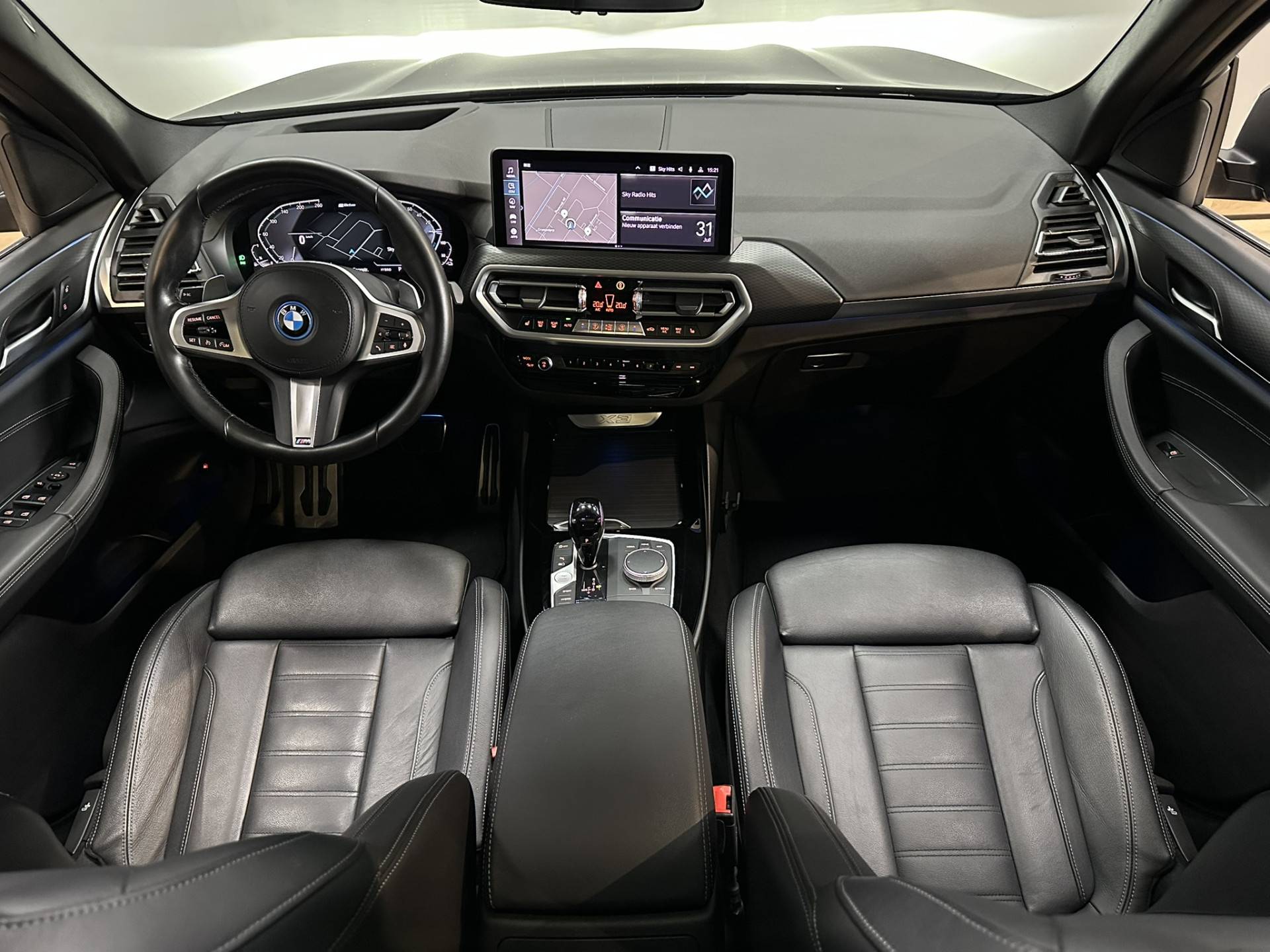 Met het digitale dashboard kunt u de cockpit-interface naar uw voorkeur instellen. Een onopvallend paaltje of een overstekend kind achter de auto brengt risico's met zich mee. Gelukkig laat de achteruitrijcamera feilloos zien of alles veilig is. Deze BMW X3 is 'connected'. Belangrijke functies worden permanent gemeten en zijn uit te lezen via een speciale app, ook op afstand. Onderweg kunt u veilig genieten van het audio-installatiesysteem met DAB-radio en het navigatiesysteem met harde schijf. Want in deze BMW bedient u ze vanaf het stuurwiel of met uw stem. Deze BMW X3 is voorzien van sensoren aan de achterzijde om een achteropkomend verkeer waarschuwing te geven als de afstand tussen u en een achterligger te klein is. Ook automatische airconditioning, sportstuur met schakelpaddels, regen- en lichtsensor, cruise control, dvd-systeem en automatisch dimmende buitenspiegels zijn aan boord.