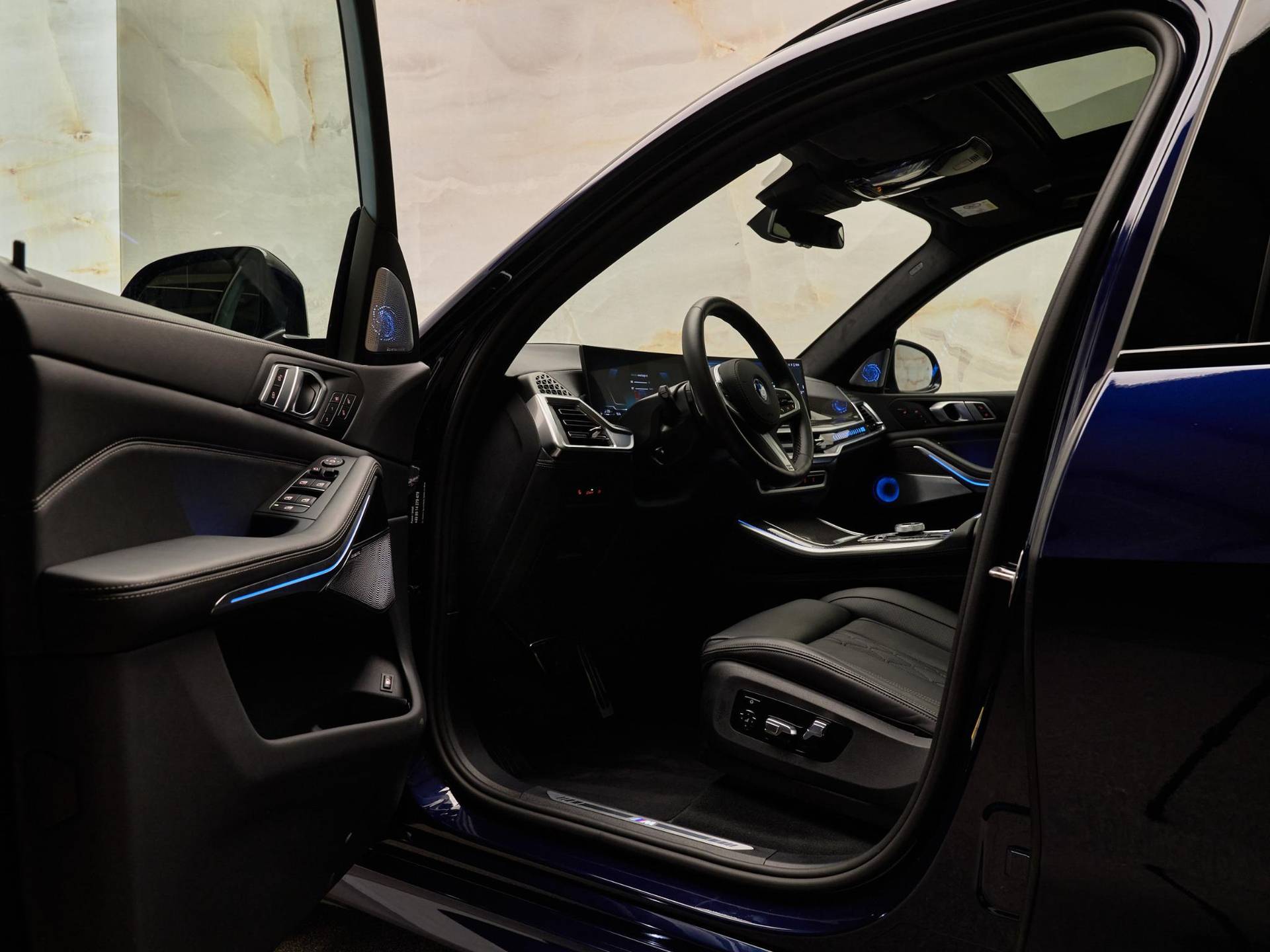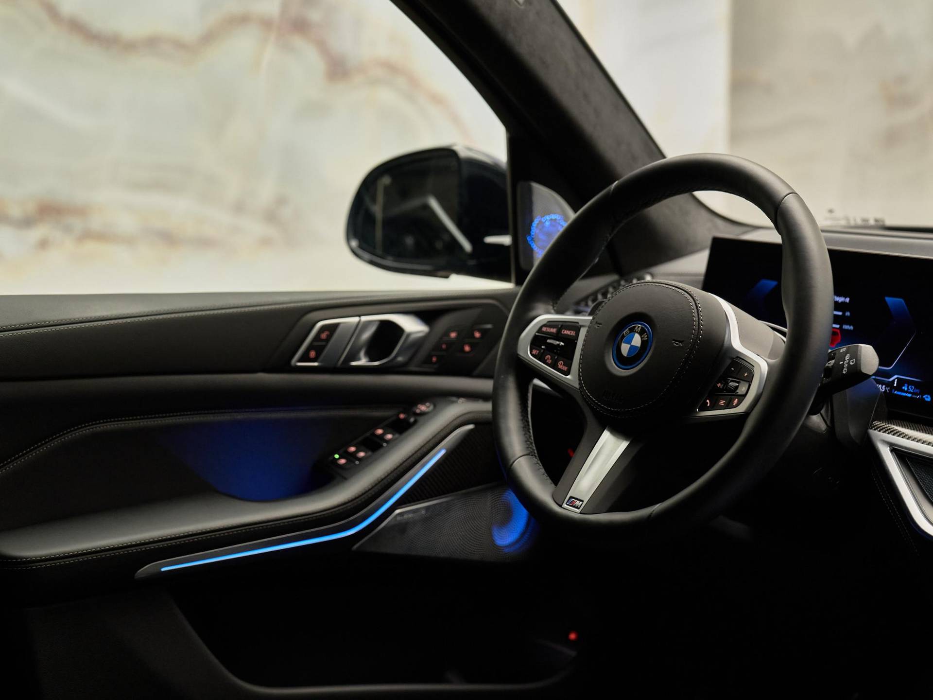 Het sportieve karakter wordt versterkt door het M Sportpakket, M Sportpakket Pro, 22 inch lichtmetalen M wielen Dubbelspaak styling 742 M (S1PQA), BMW Iconic Glow nierengrille (S3DNA) en uitgebreide M Hoogglans Shadow Line (S760A / S7M9A). Het interieur is verfijnd afgewerkt met M interieurlijsten Carbon Fibre (S4MCA), Glasapplicatie CraftedClarity (S4A2A) en een BMW Individual dashboard met leder Walknappa bekleed (S4M5A).