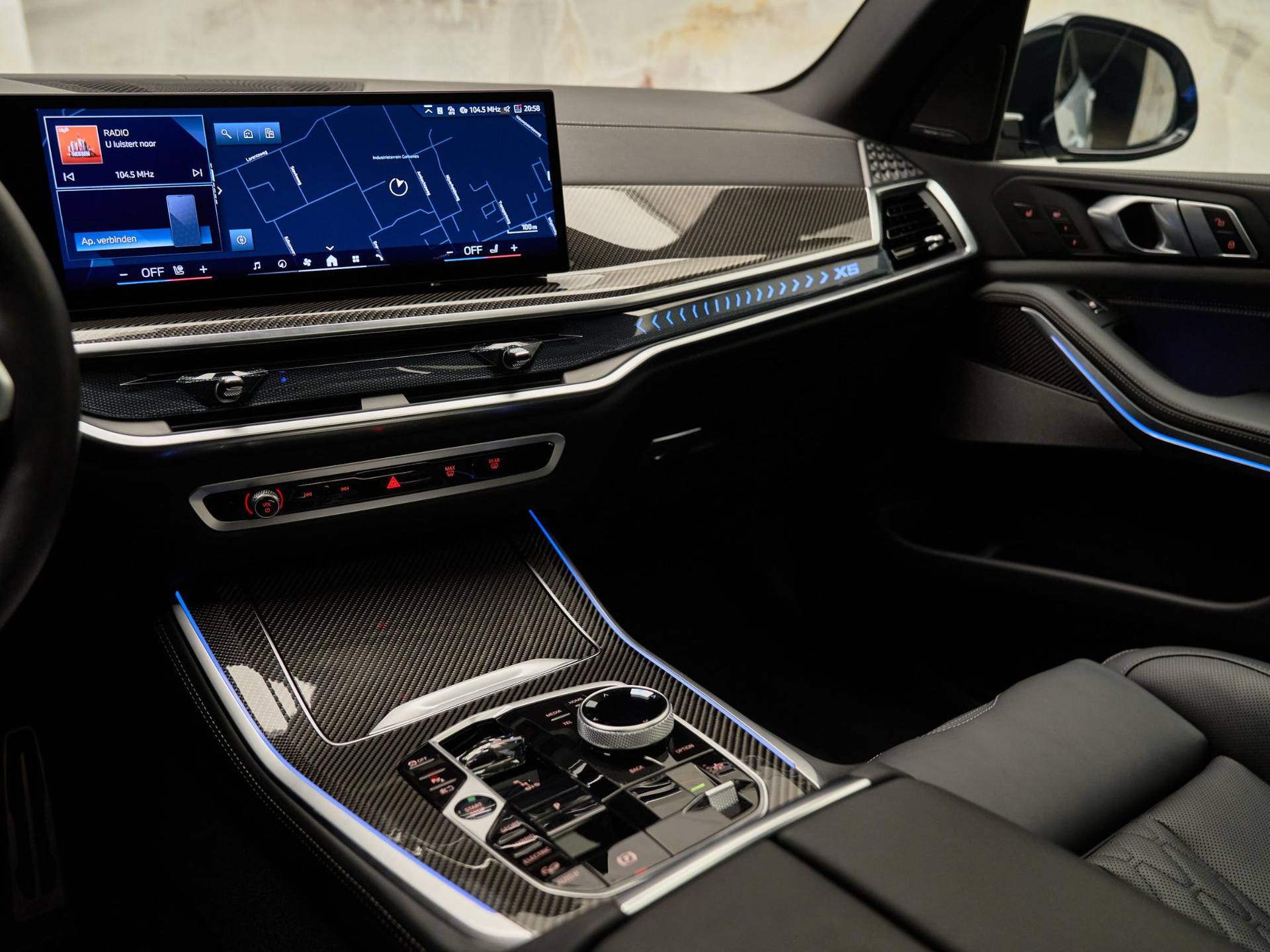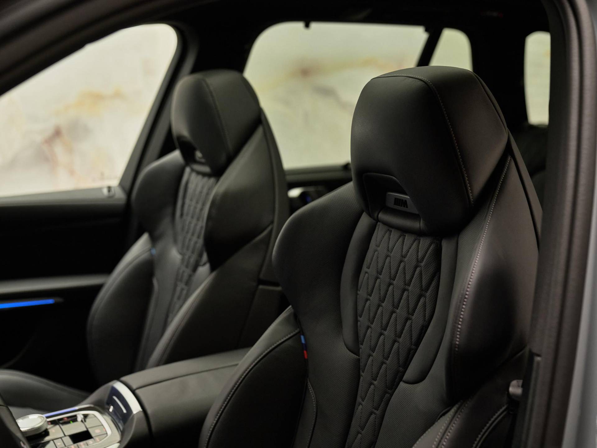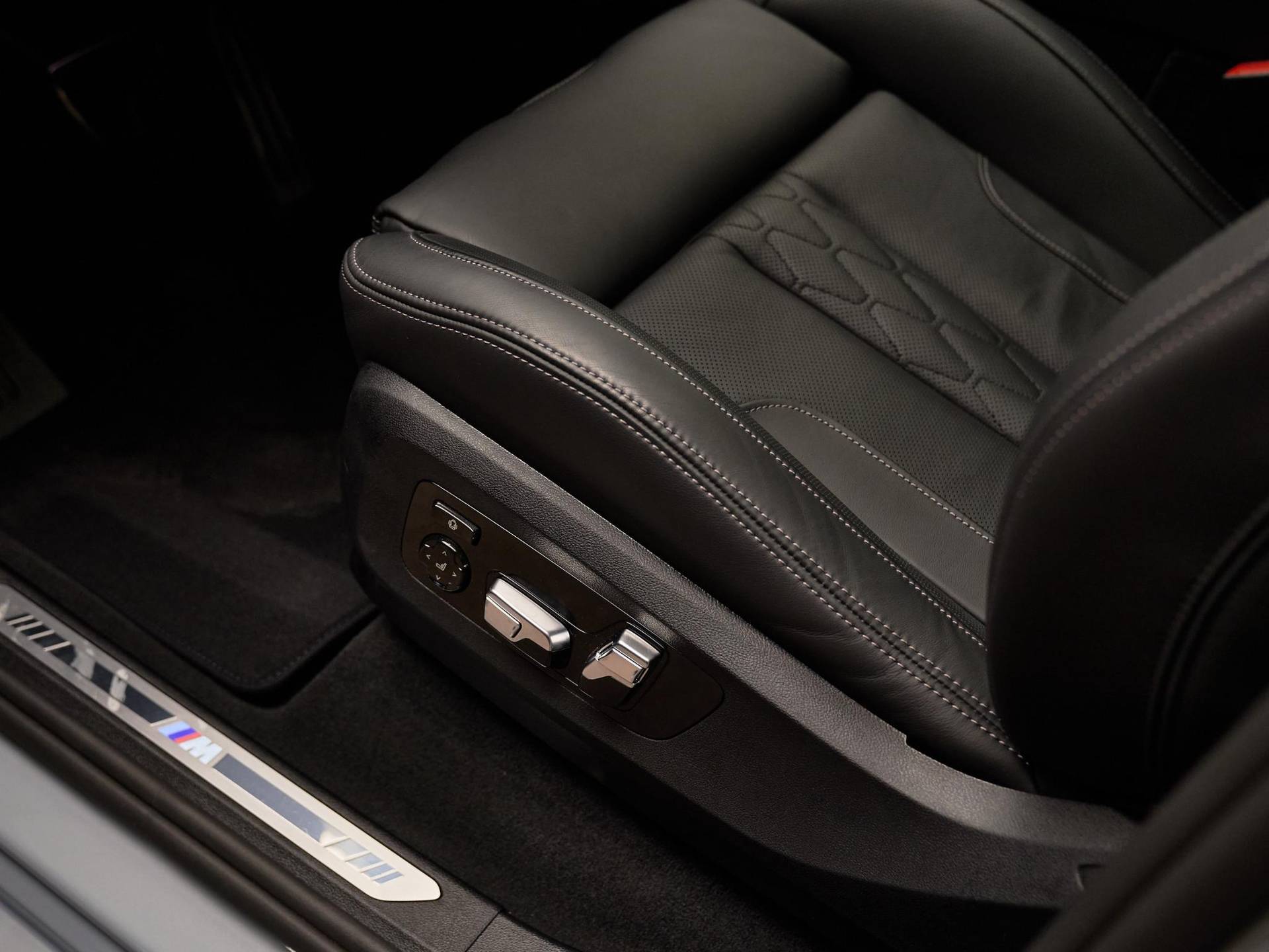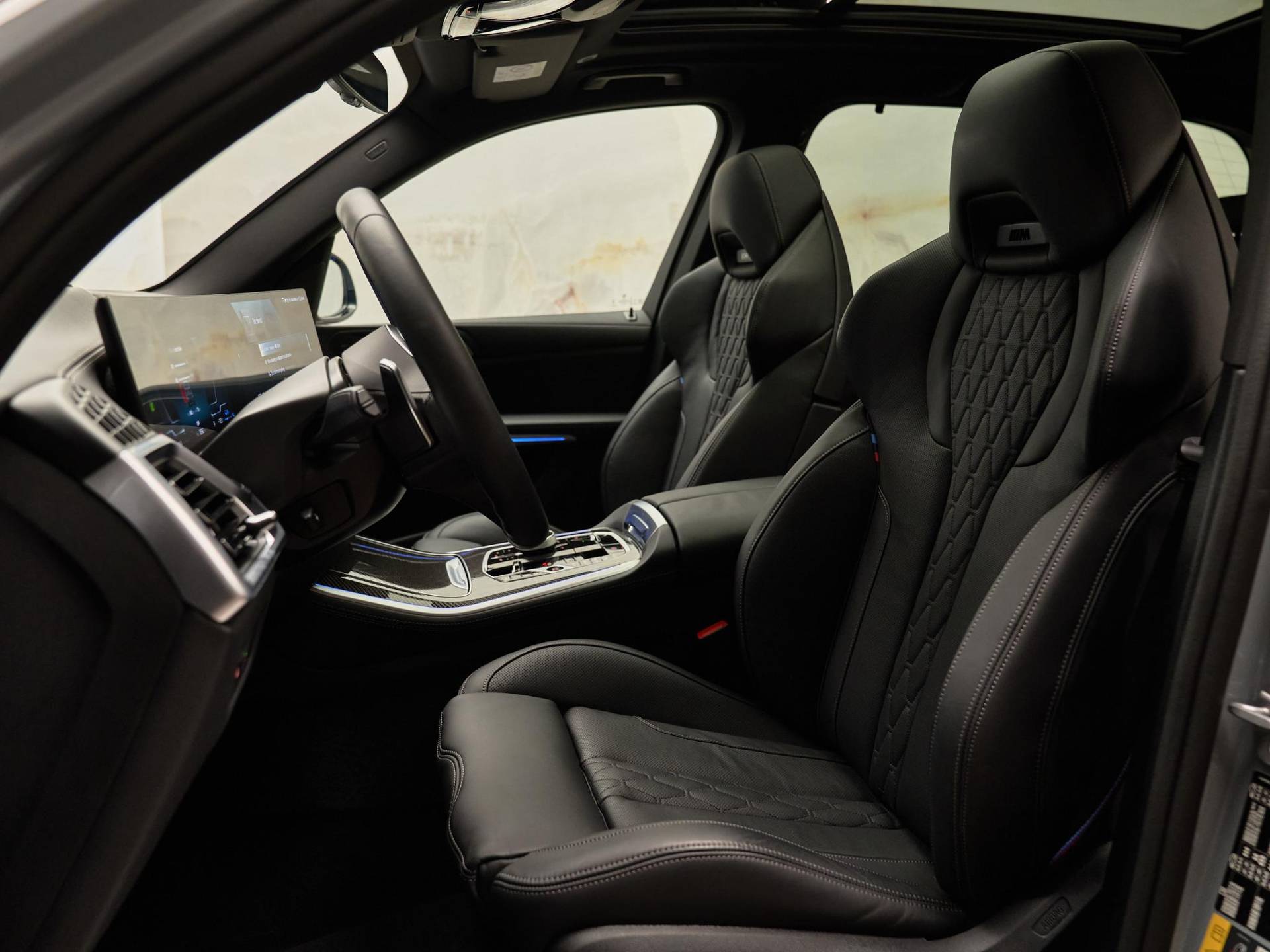 Binnenin valt direct de hoogwaardige afwerking op: BMW Individual dashboard met leder bekleed (S4M5A), M Carbon Fibre interieurlijsten (S4MCA) en Ambiance verlichting (S4URA) creëren een premium sfeer. Het Ambient Air pakket (S4NMA) parfumeert en filtert de lucht in het interieur, terwijl de M Hemelbekleding in Anthrazit (S775A) de sportieve look compleet maakt.
