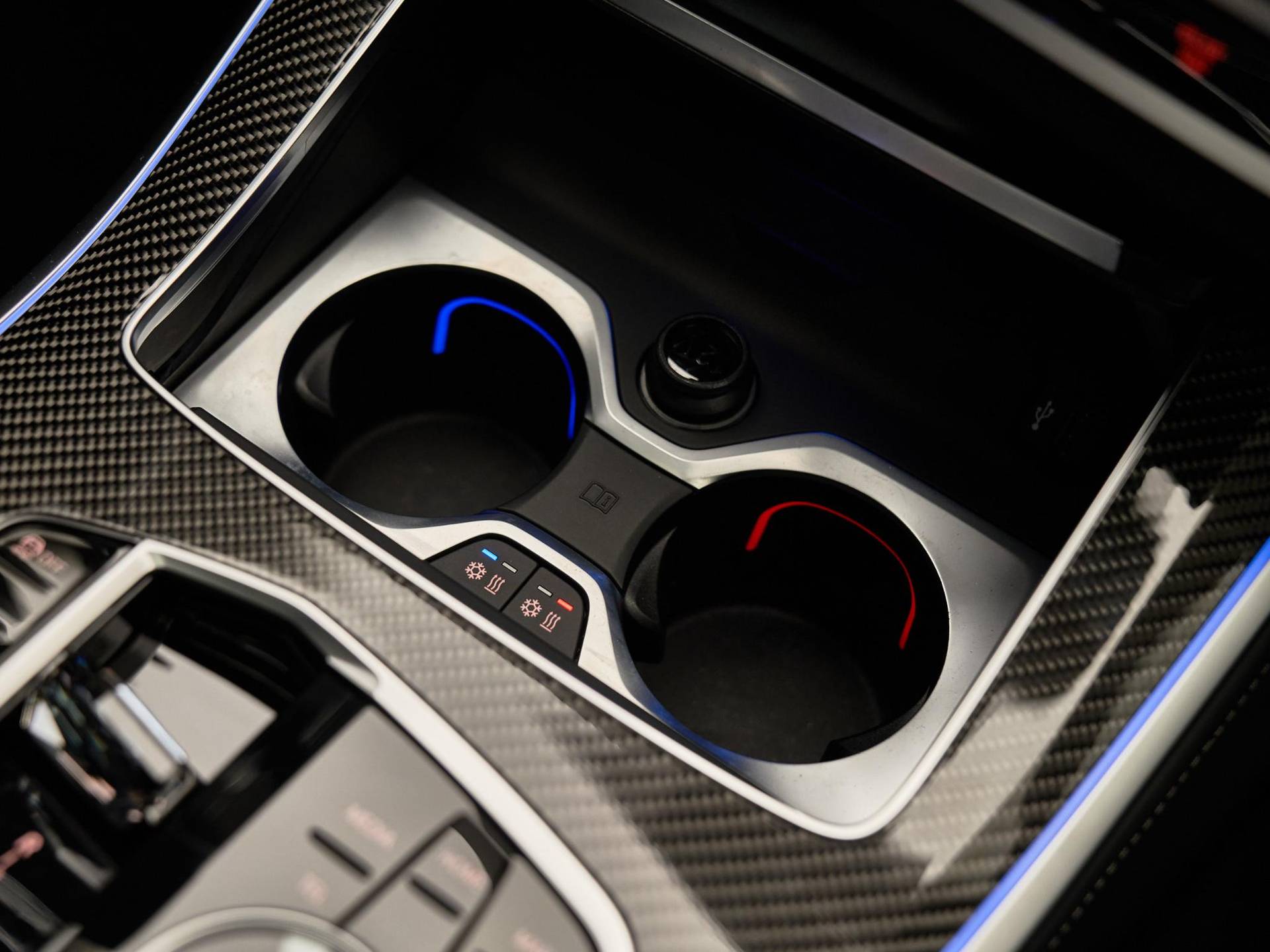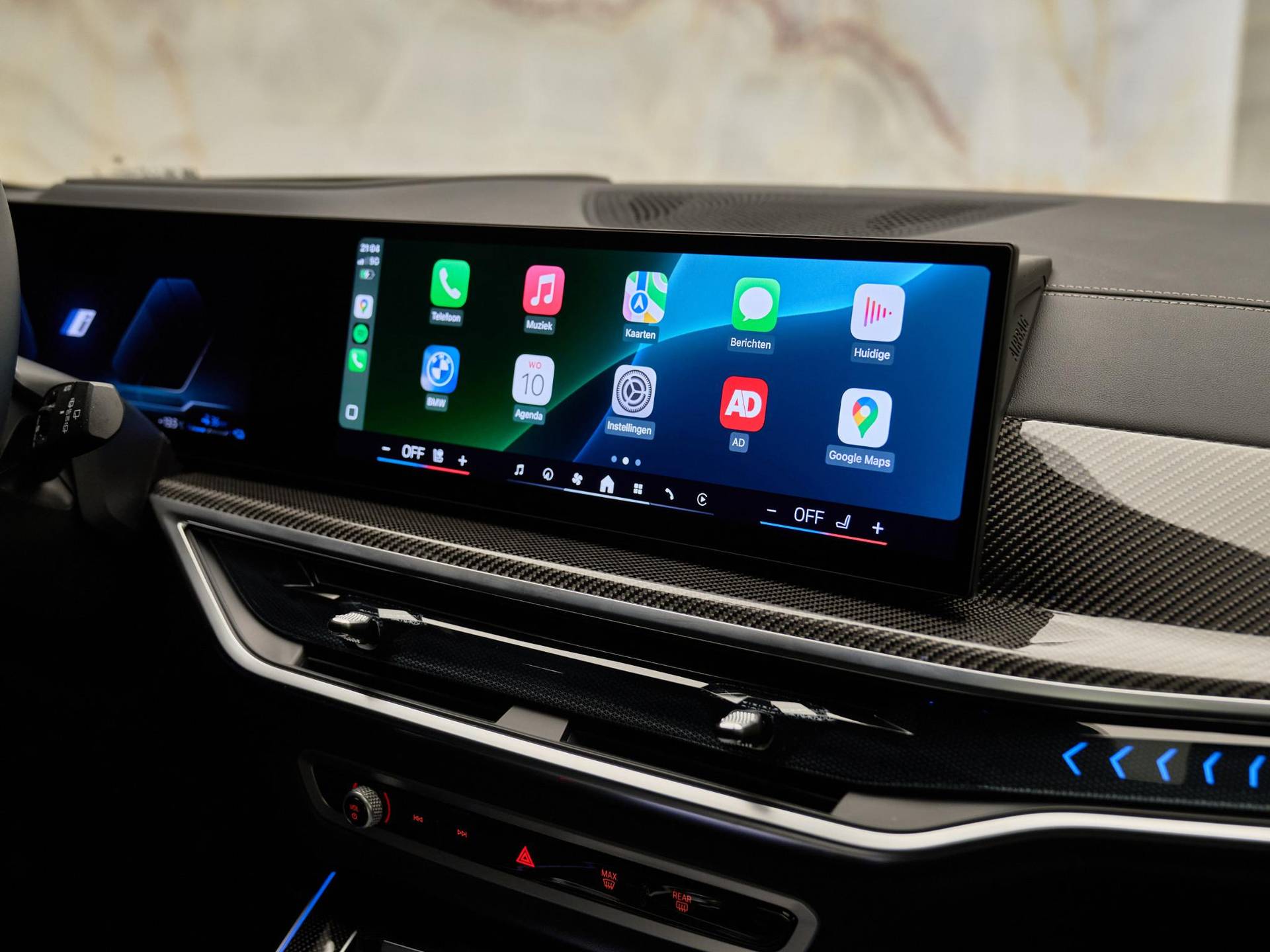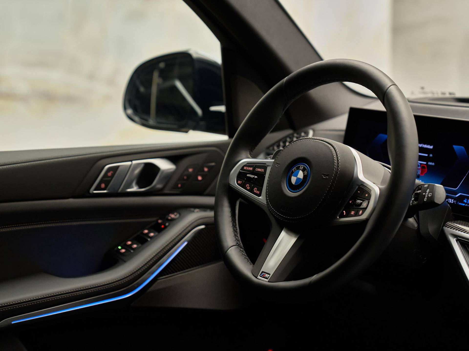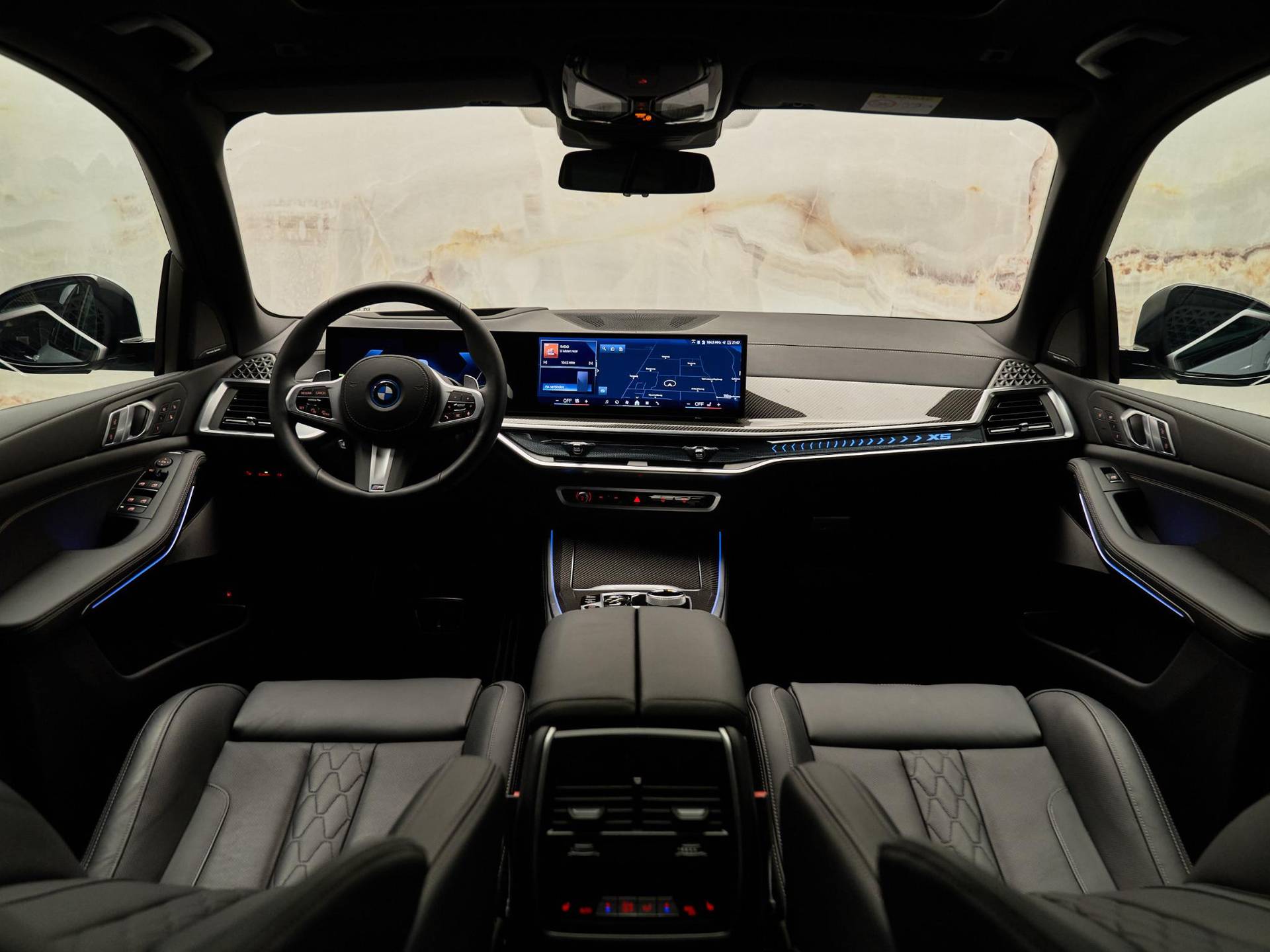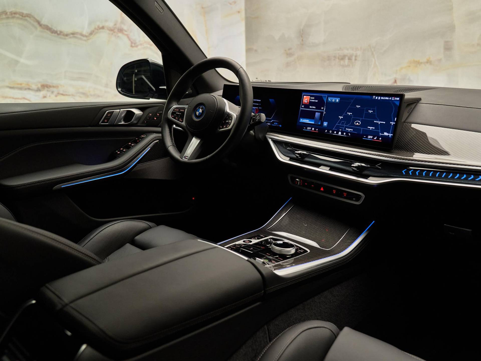 Binnenin valt direct de hoogwaardige afwerking op: BMW Individual dashboard met leder bekleed (S4M5A), M Carbon Fibre interieurlijsten (S4MCA) en Ambiance verlichting (S4URA) creëren een premium sfeer. Het Ambient Air pakket (S4NMA) parfumeert en filtert de lucht in het interieur, terwijl de M Hemelbekleding in Anthrazit (S775A) de sportieve look compleet maakt.