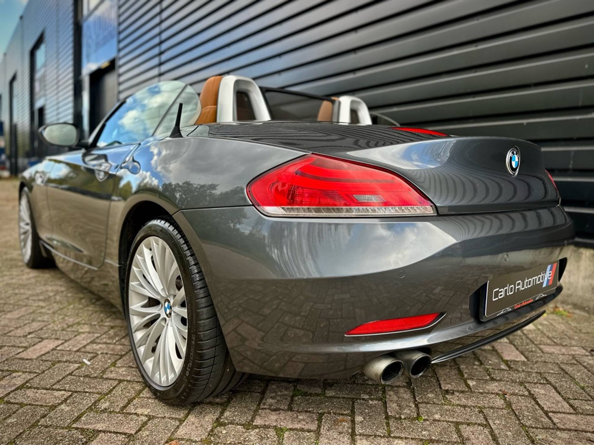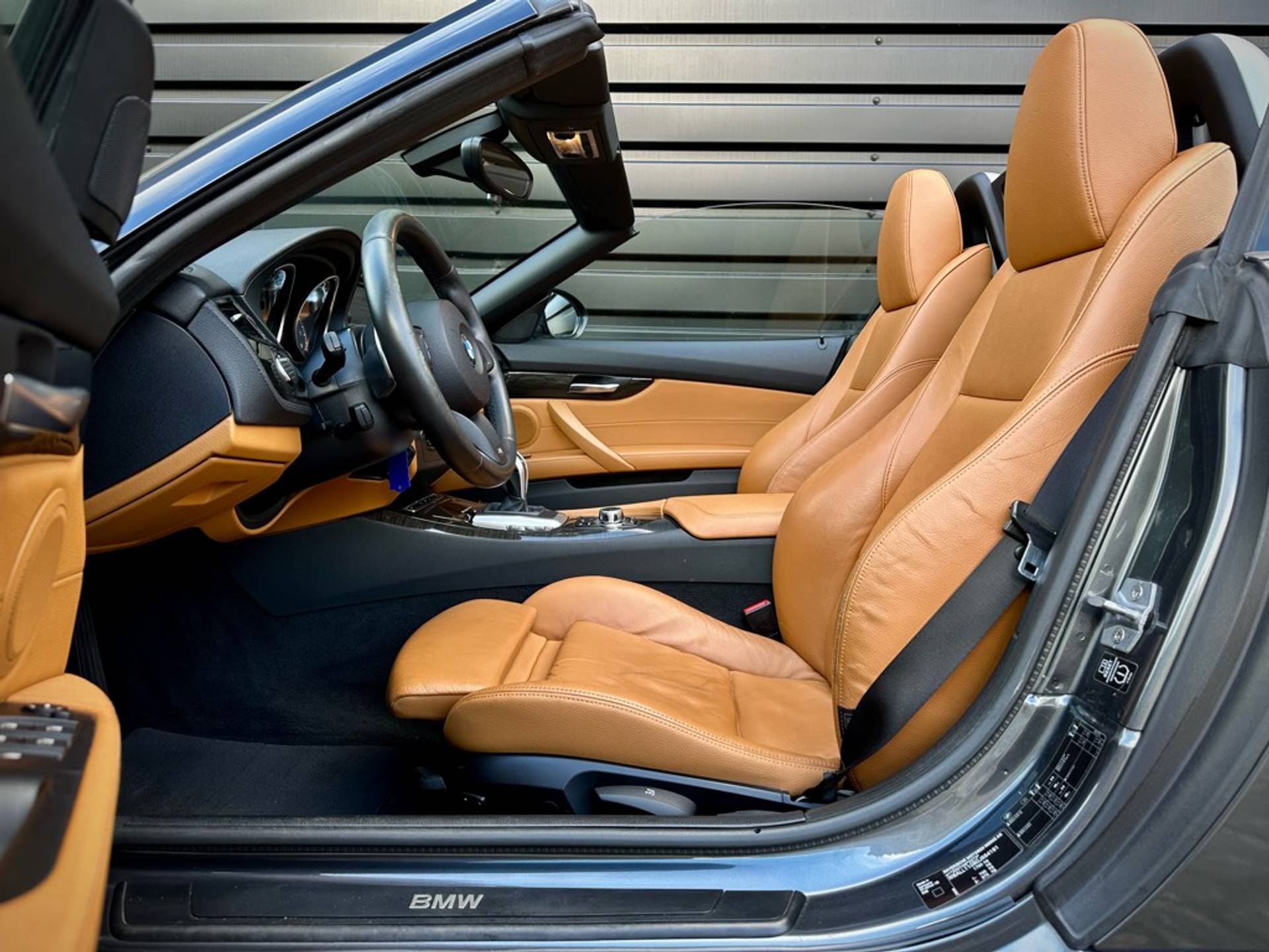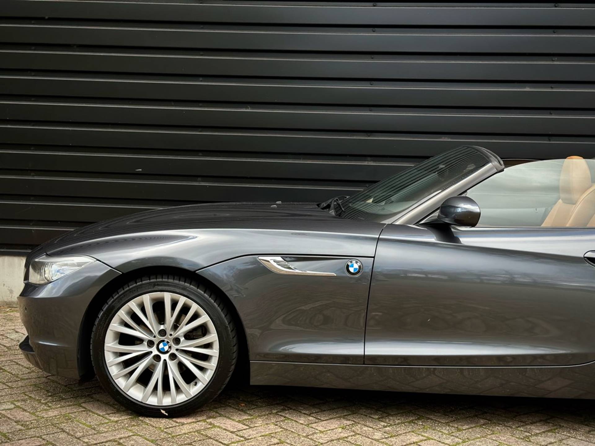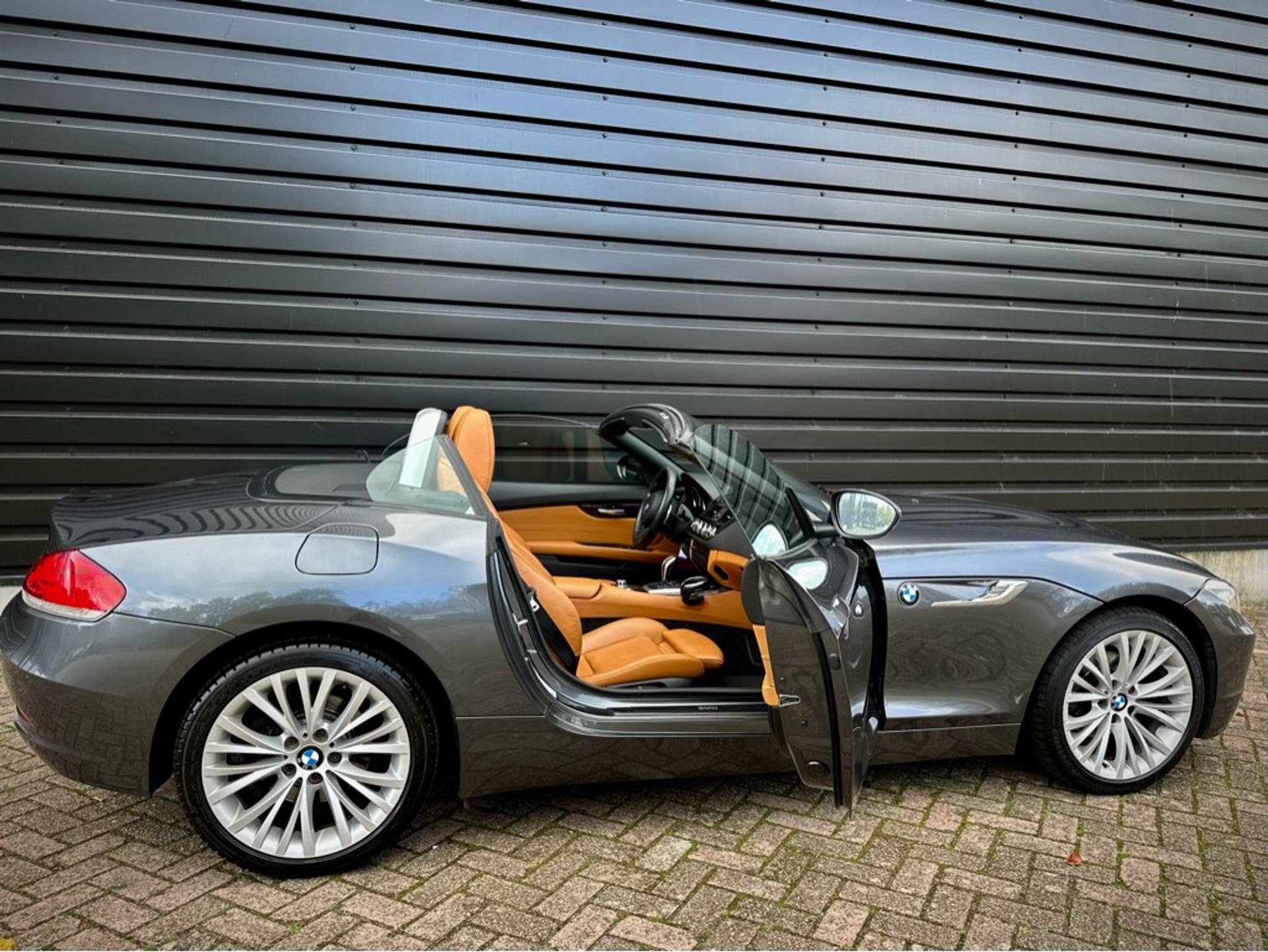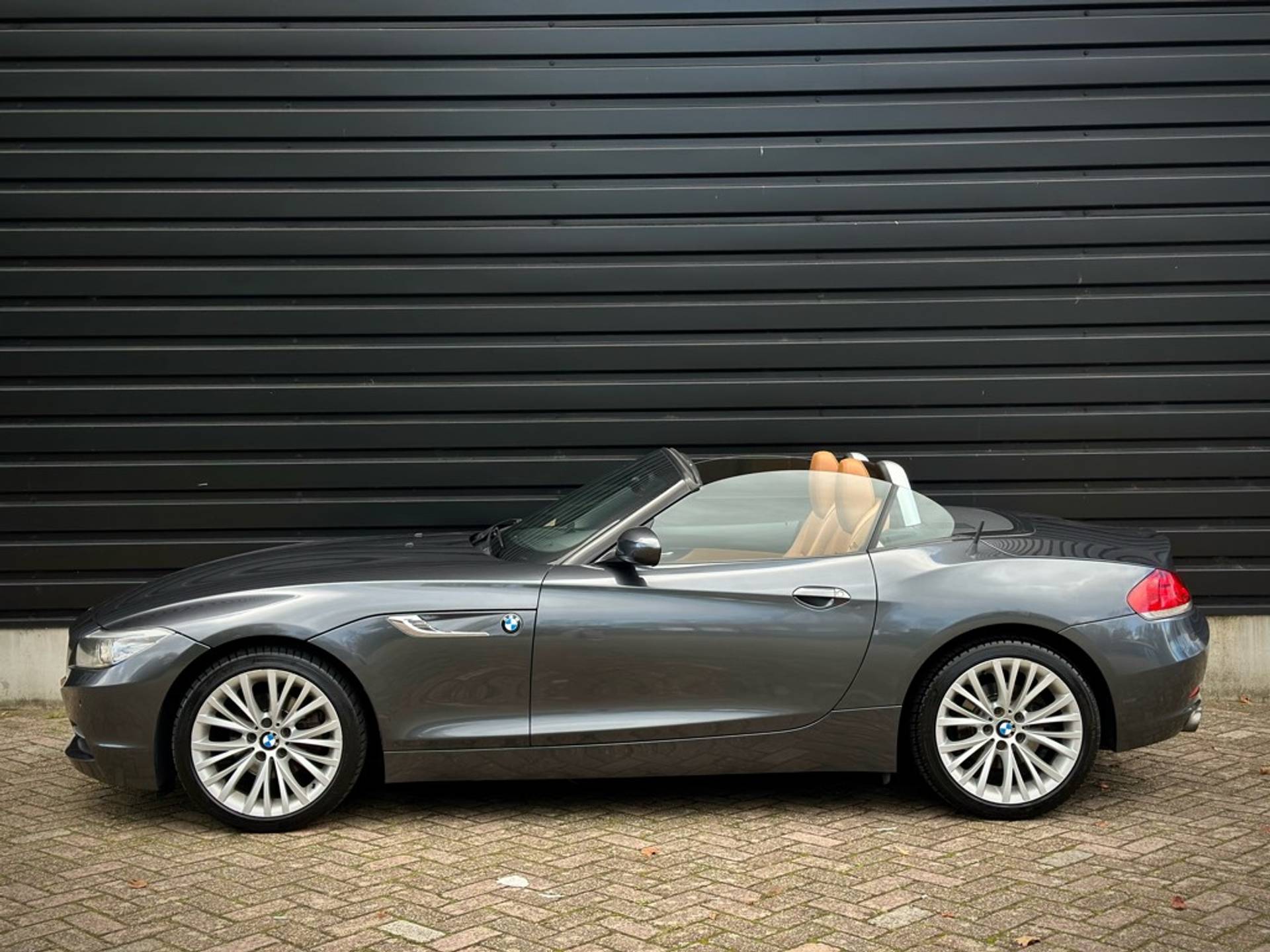 Fraaie BMW Z4 Roadster sDrive 18i geleverd in een zeer chique kleurstelling die begint met de 'Mineralgrau metallic' lak aan het exterieur en zich volmaakt met het volledig lederen KANSAS/WALNUSS interieur. Origineel Nederlandse auto, rechtstreeks afkomstig van 3e eigenaar en vrijwel volledig BMW dealer onderhouden.