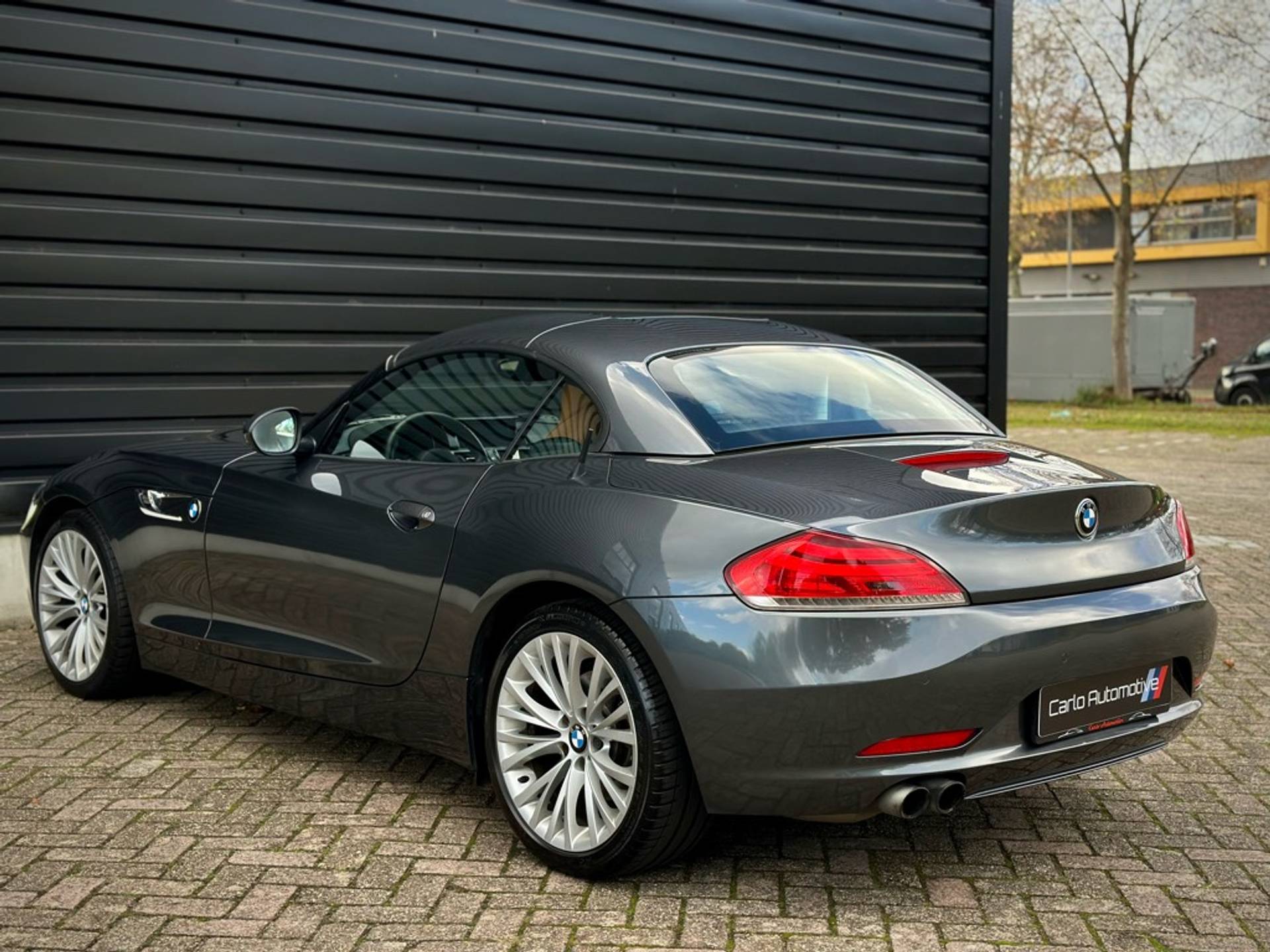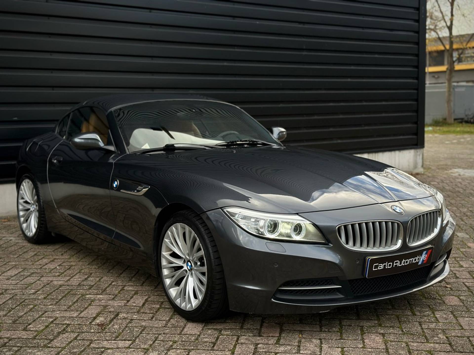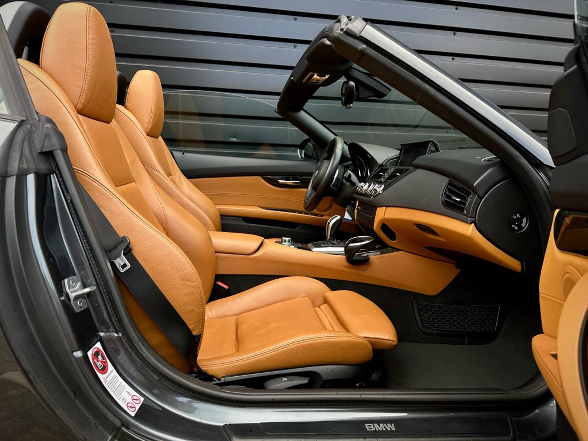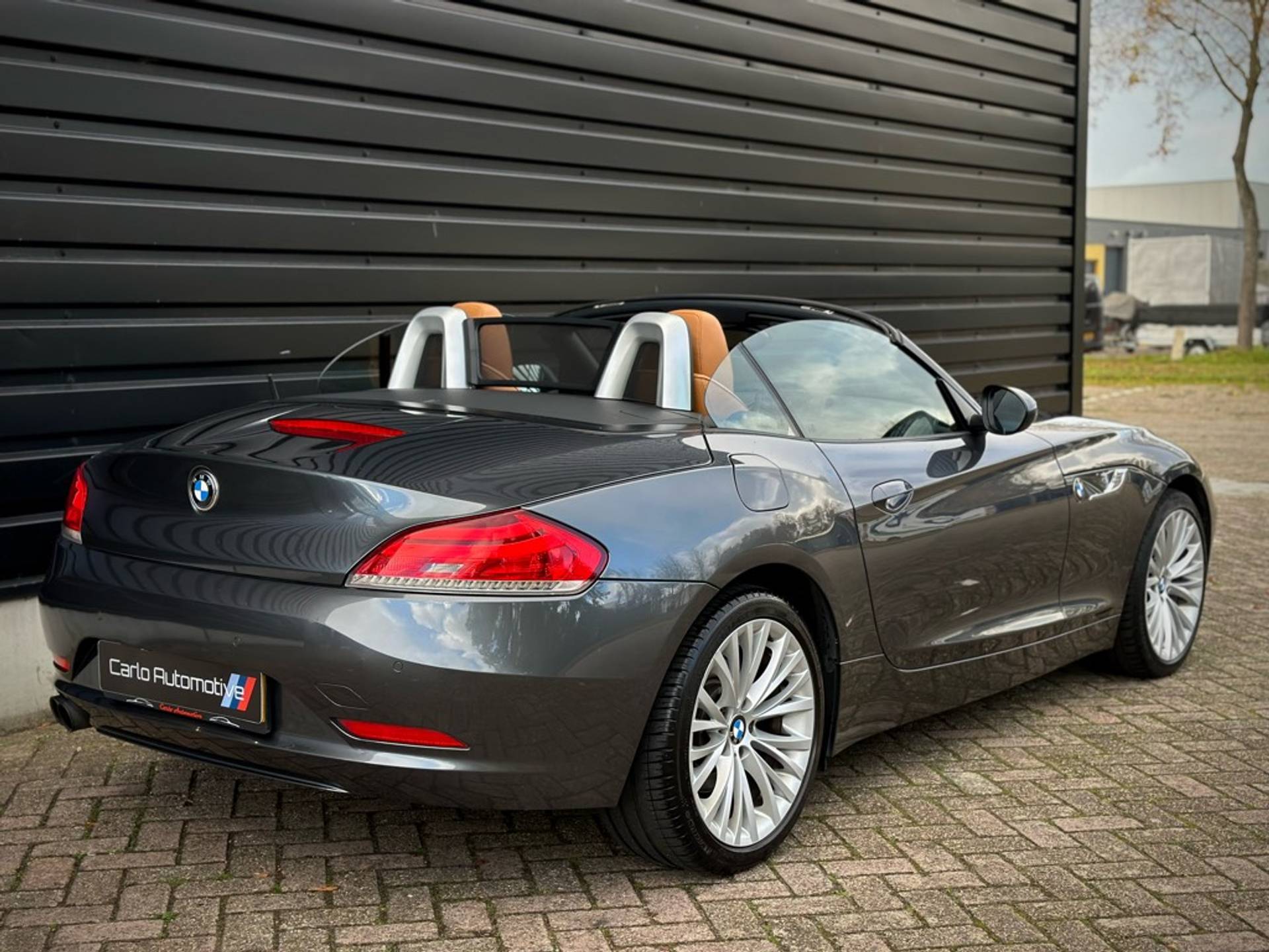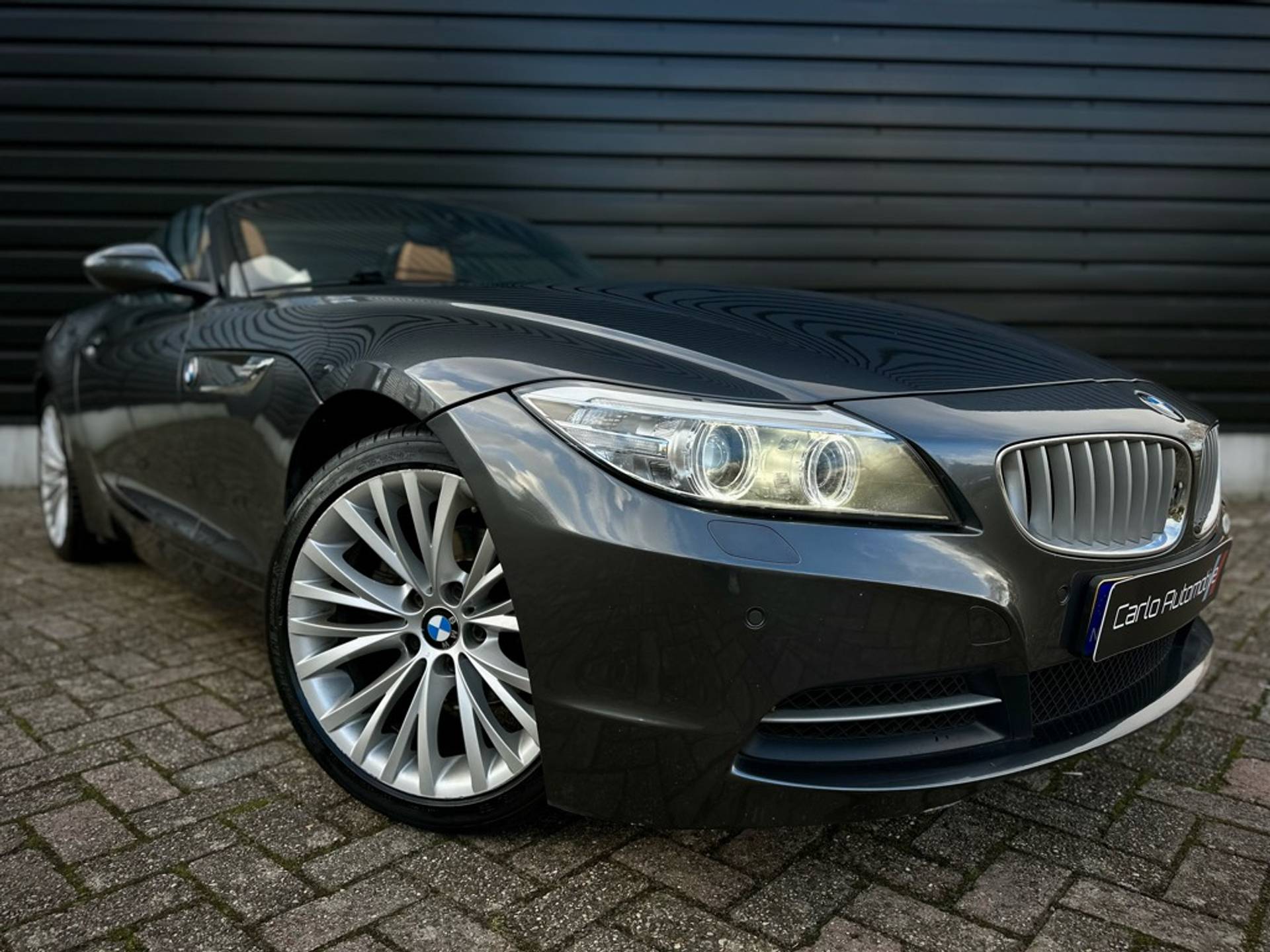 Fraaie BMW Z4 Roadster sDrive 18i geleverd in een zeer chique kleurstelling die begint met de 'Mineralgrau metallic' lak aan het exterieur en zich volmaakt met het volledig lederen KANSAS/WALNUSS interieur. Origineel Nederlandse auto, rechtstreeks afkomstig van 3e eigenaar en vrijwel volledig BMW dealer onderhouden.