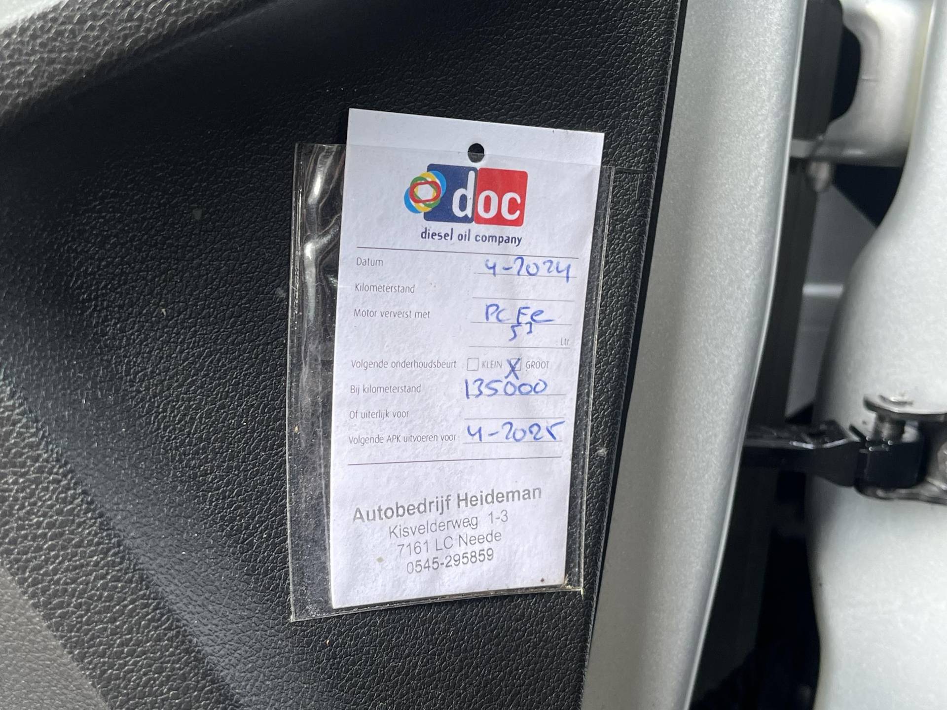 ✓ APK bij aflevering: N