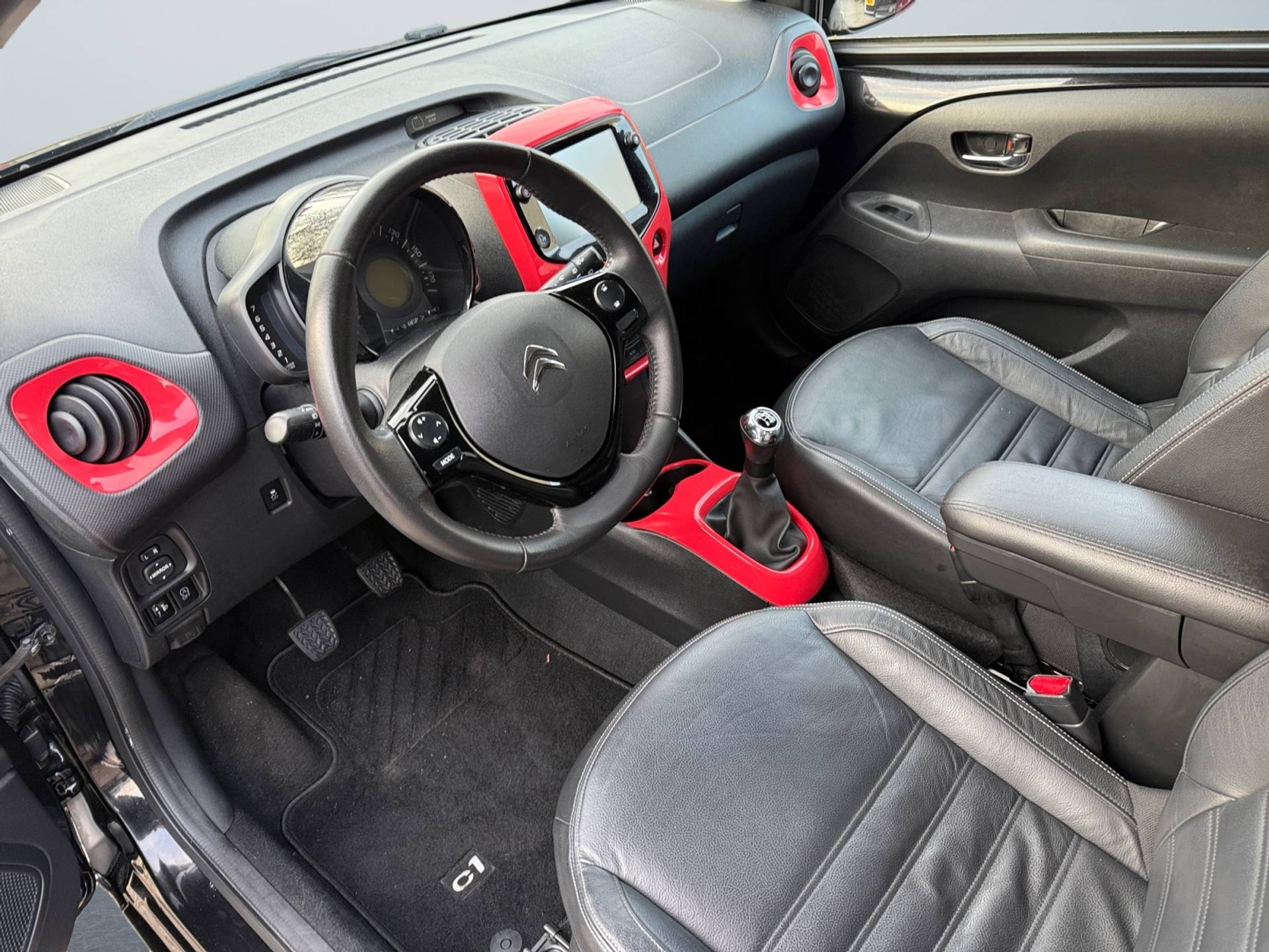 Op zoek naar een stijlvolle en compacte auto die perfect past bij jouw dagelijkse ritjes? Maak kennis met deze Citroen C1 1.0 VTi AirScape Shine uit 2019. Met zijn elegante zwarte kleur, rode cabrio cak, lichtmetalen velgen, en extra getinte ramen is deze hatchback een echte eyecatcher op de weg. Wat deze Citroen C1 Shine extra speciaal maakt, is zijn uitgebreide uitrusting: automatische airconditioning, stoelverwarming met lederen bekleding, achteruitrij camera en Apple Caplay.
