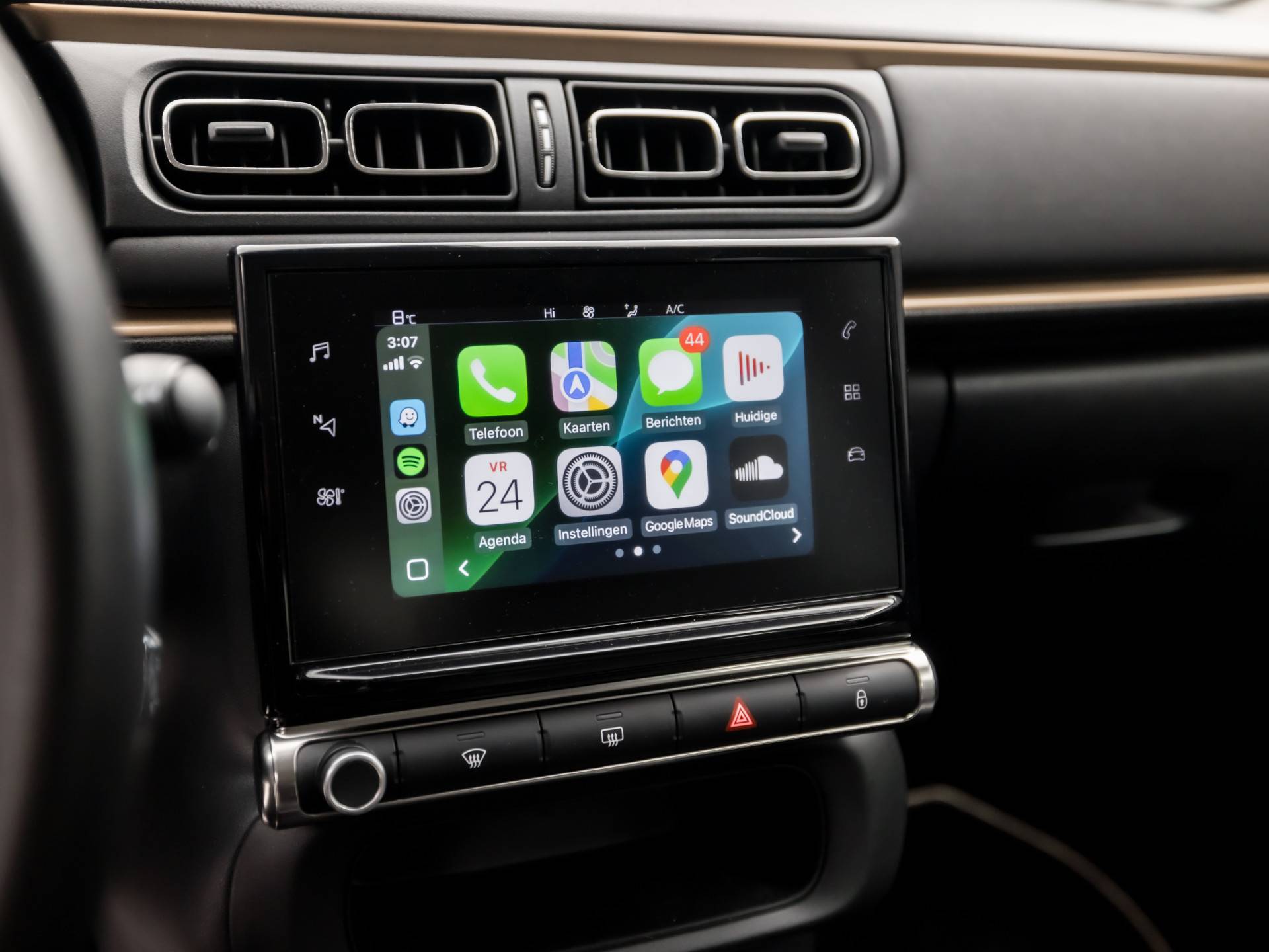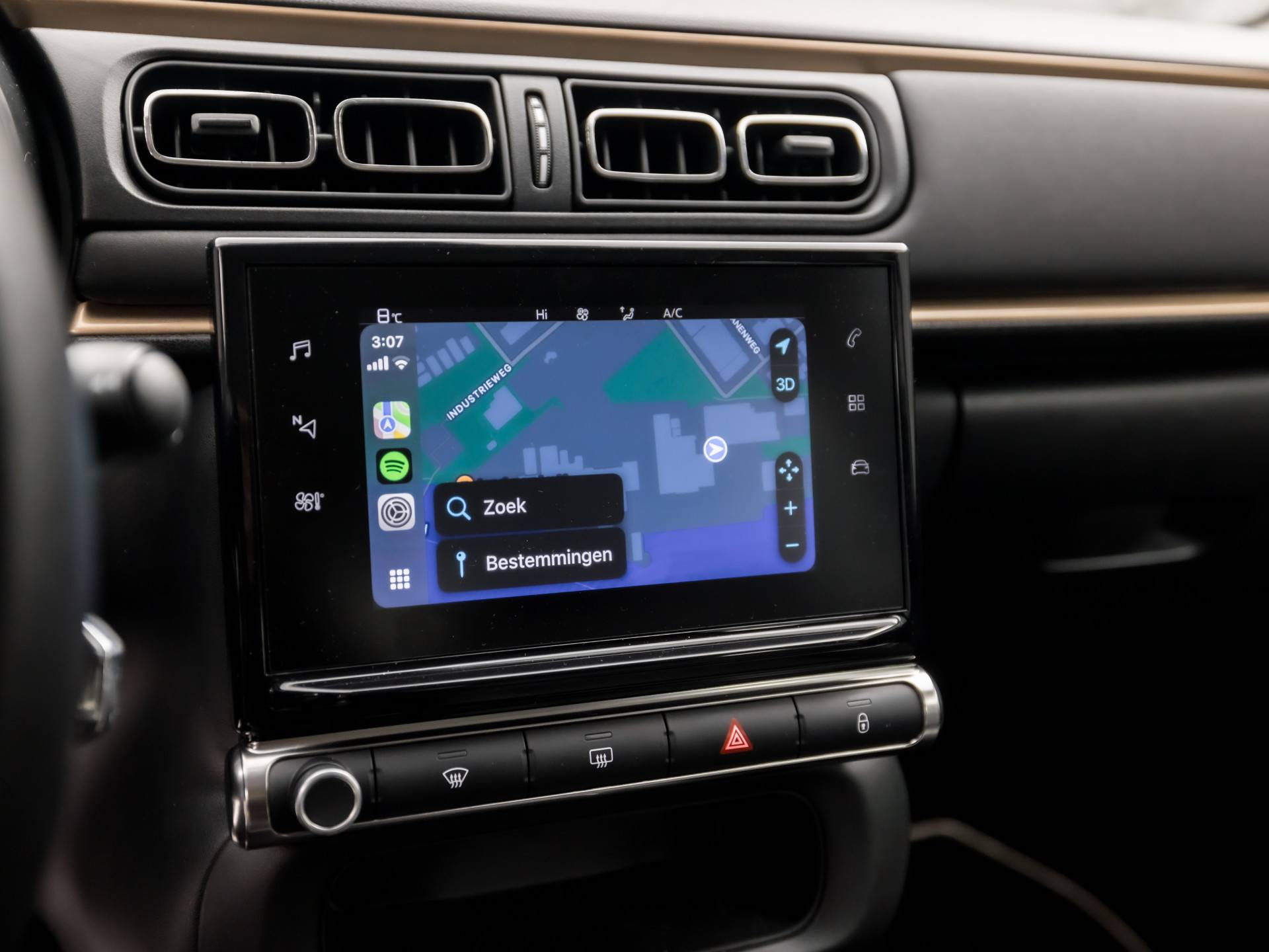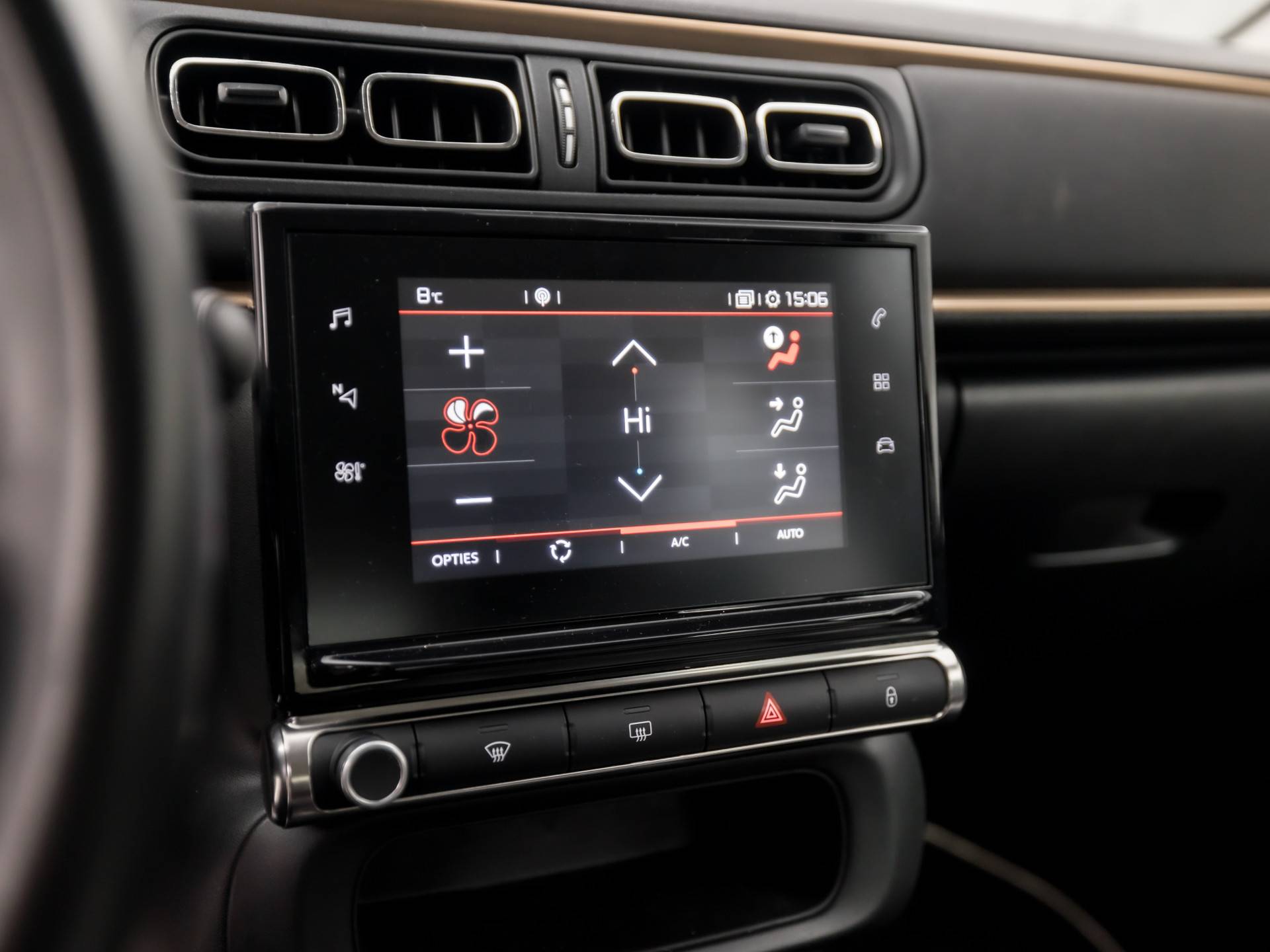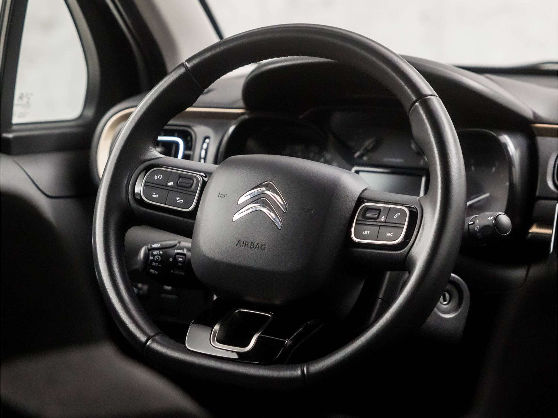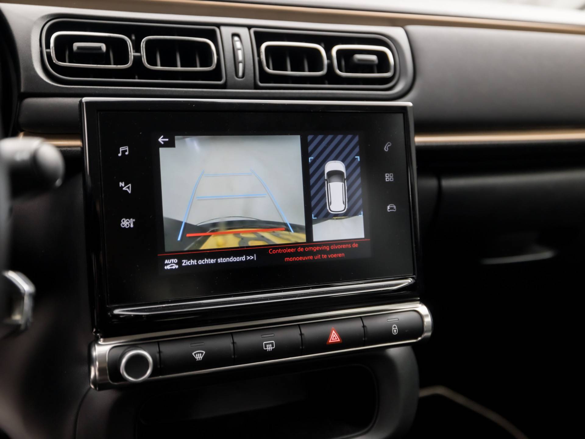 De achteruitrijcamera levert eersteklas parkeerservice. U weet precies hoeveel ruimte u nog heeft, in beeld en geluid. Had u de auto nou wel afgesloten? Met Connected Services checkt u het overal en altijd. Onderweg kunt u veilig genieten van het audio-installatiesysteem met DAB-radio en het navigatiesysteem. Want in deze Citroën bedient u ze vanaf het stuurwiel of met uw stem. Aan boord van deze Citroën C3 is een achteropkomend verkeer waarschuwing voor extra veiligheid. Nooit meer te warm of te koud. De automatische airconditioning zorgt altijd voor de temperatuur die u kiest. Natuurlijk behoren regensensor, cruise control, automatisch dimmende binnenspiegel, lederen stuur, isofix-aansluiting en centrale deurvergrendeling met afstandsbediening ook tot de uitrusting van deze complete auto.