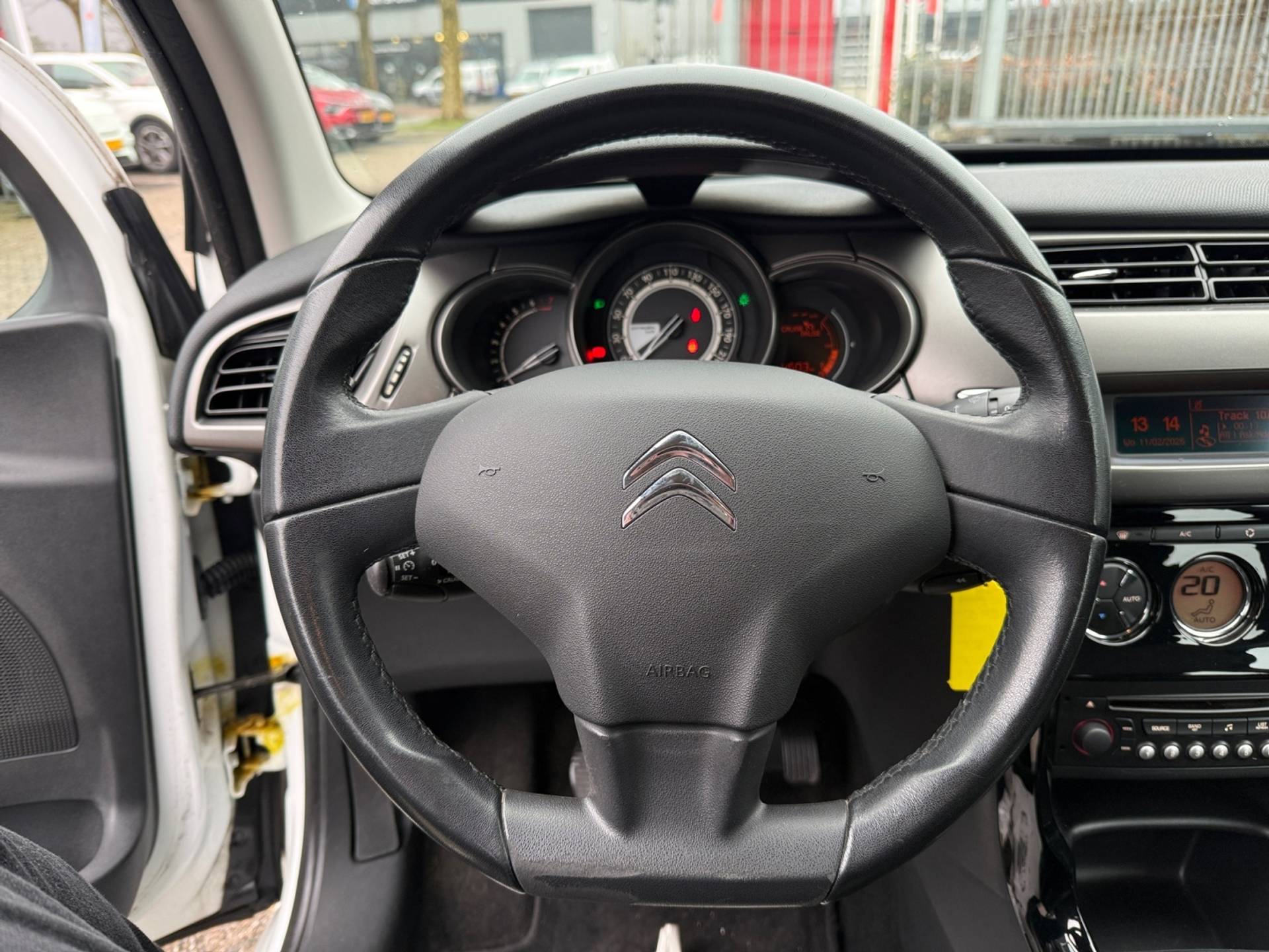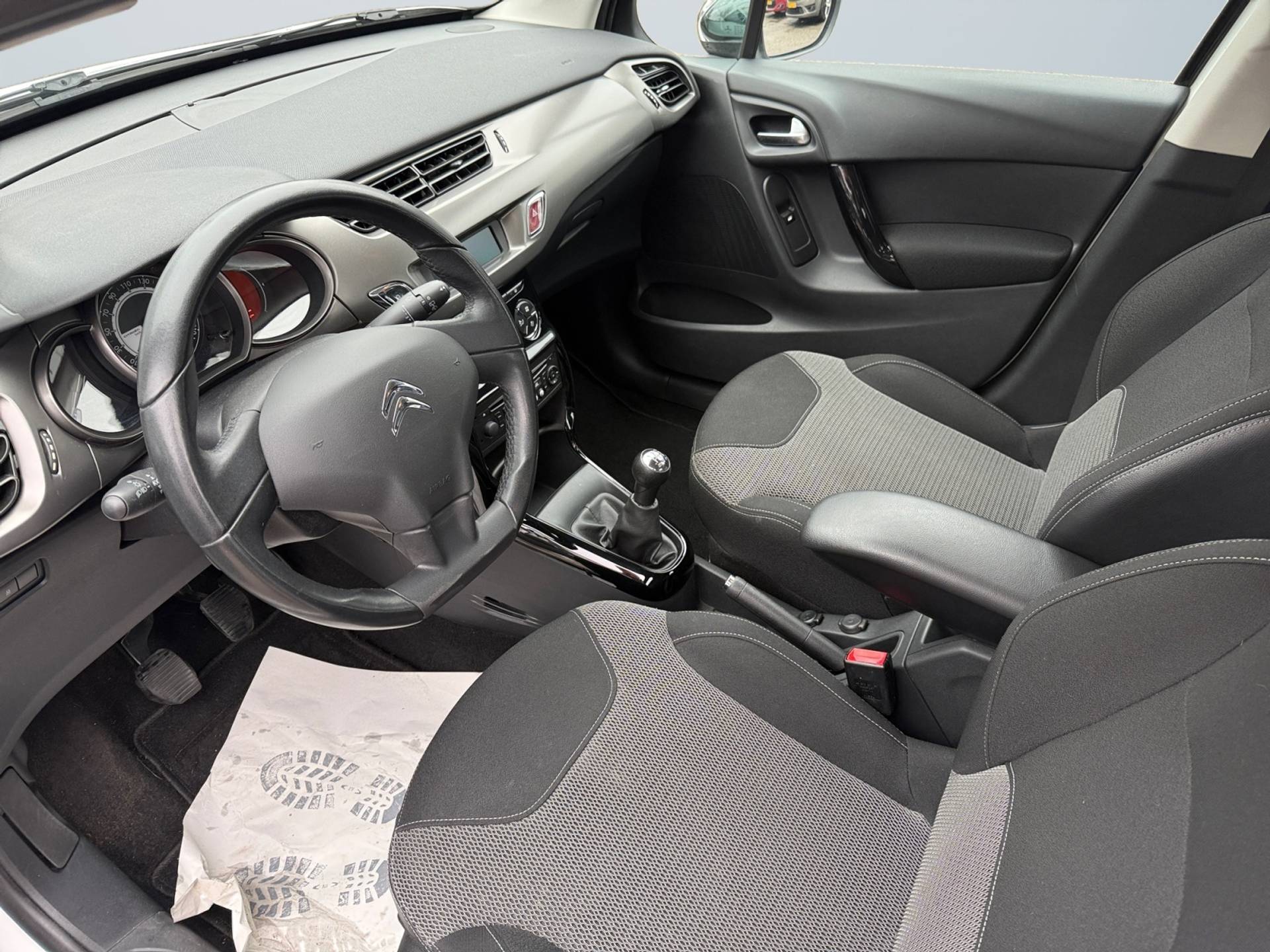 Het interieur van de Citroen C3 is niet alleen functioneel, maar ook stijlvol afgewerkt. De armsteun aan de voorzijde zorgt voor extra comfort tijdens langere ritten, terwijl het lederen stuur prettig in de hand ligt en een luxe uitstraling geeft aan het dashboard. Met vijf deuren is instappen en uitstappen een fluitje van een cent, en ook passagiers op de achterbank kunnen eenvoudig plaatsnemen.