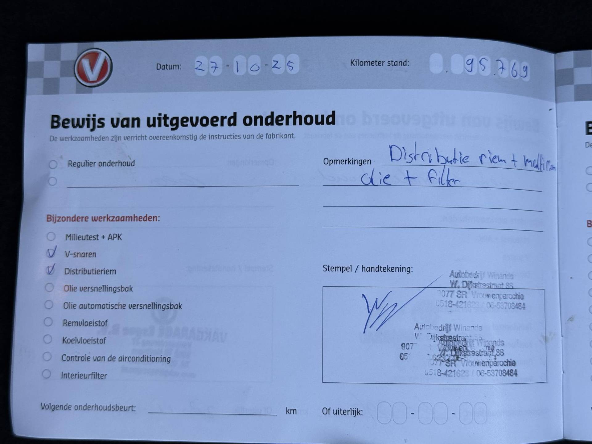 Distributie vervangen bij 95.769km(27-10-2025)