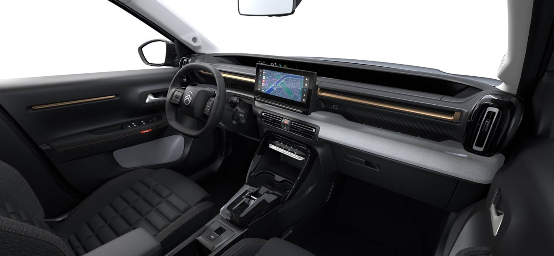 ✓ Ambiance Urban Bronze, incl.: Advanced Comfort Seats met 10mm extra schuimvulling en een gecapitonneerd oppervlak Bekleding 'Black' stof en grijze stof 'Quadric' met bronzen accentstiksels