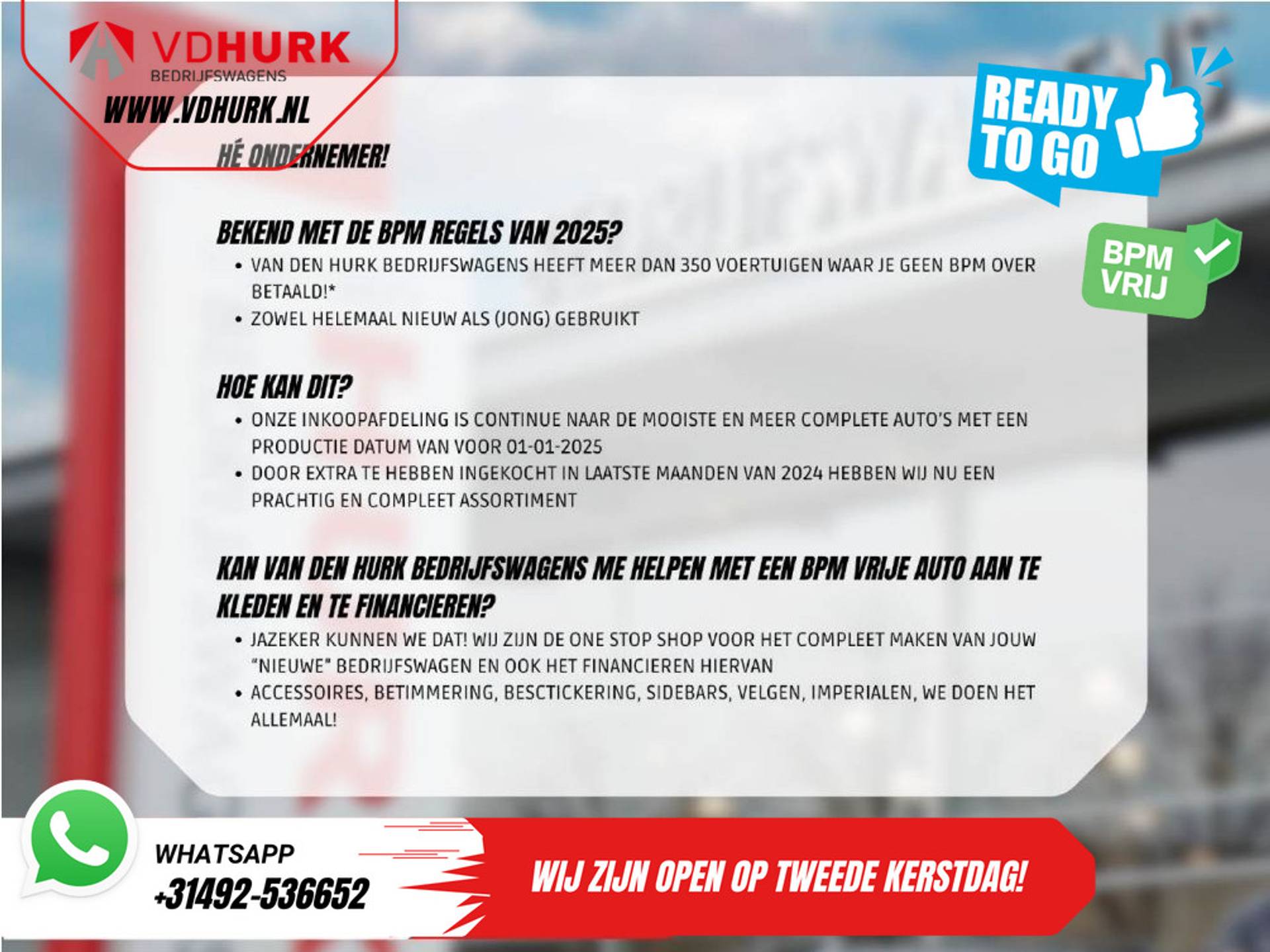 Profiteer zo lang de voorraad strekt van BPM voordeel! Tevens zijn onze nieuwe voertuigen rijklaar en komen er dus GEEN rijklaarmaakkosten meer bij!