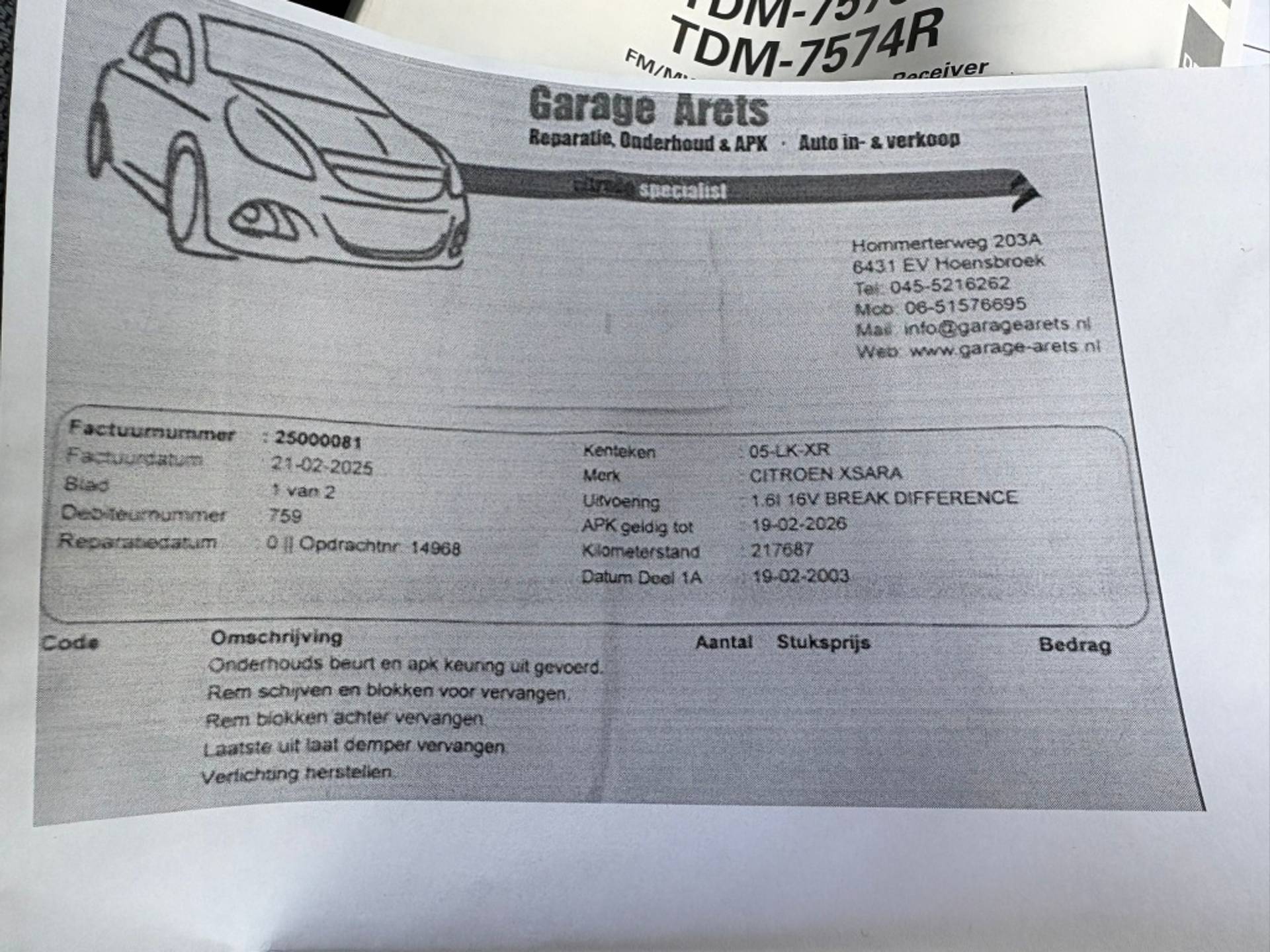 Bij de 217.687 een beurt gehad apk remschijven en blokken vervangen incl uitlaatdemper
