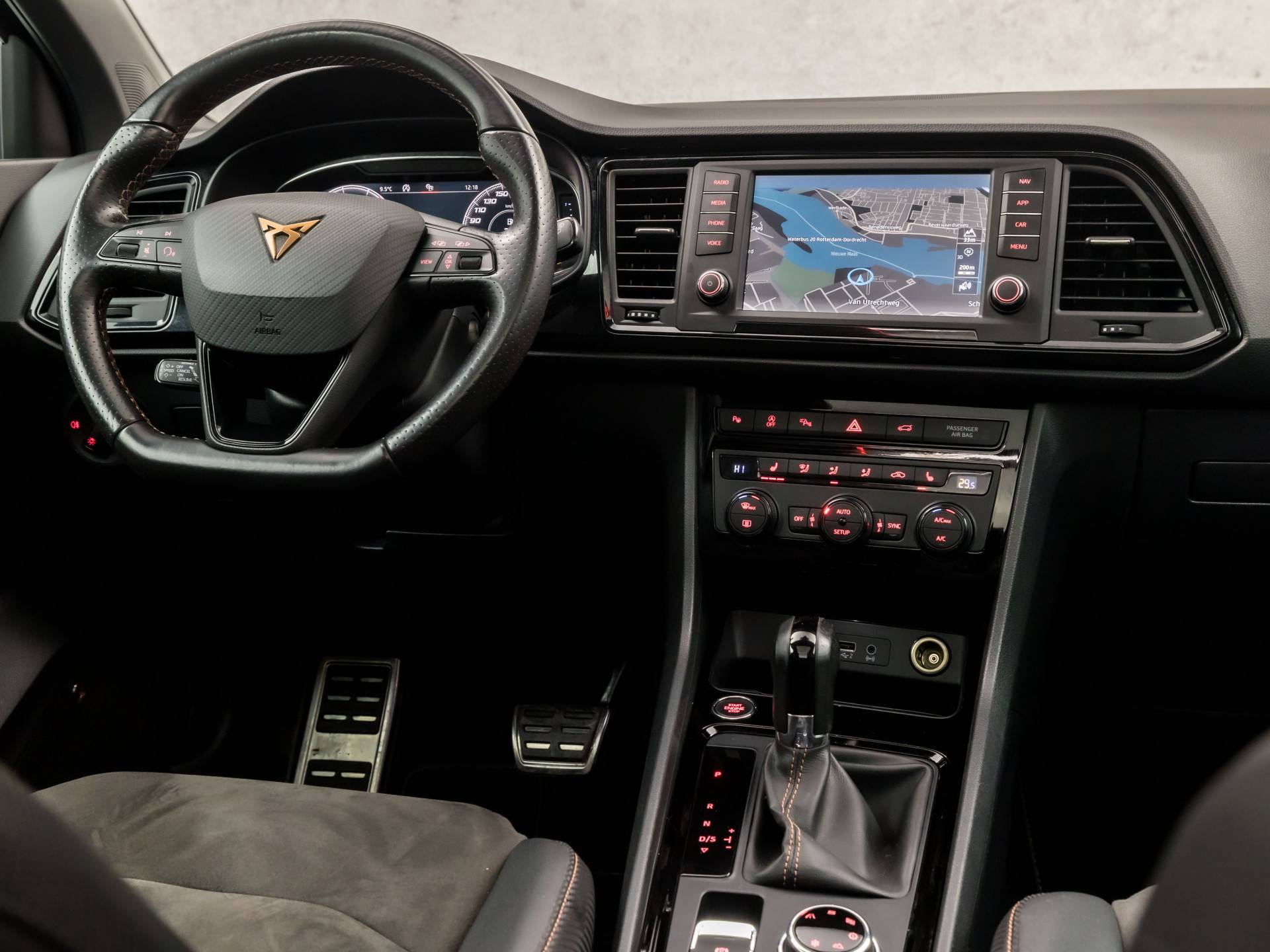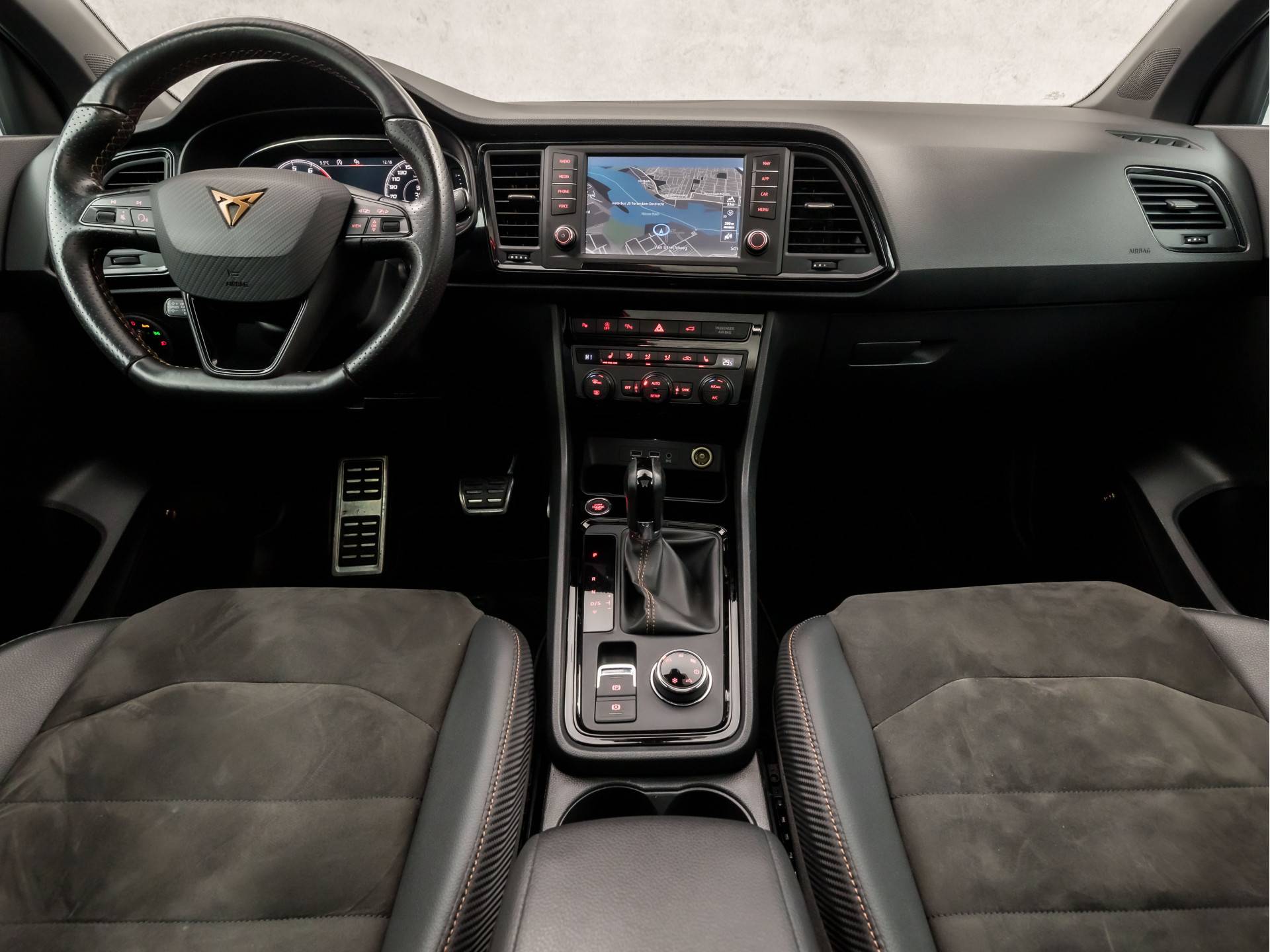 Pragmatisch en veilig als deze auto is, beschikt hij over diverse veiligheidssystemen. De actuele snelheidslimiet, een inhaalverbod en andere verkeersborden; de verkeersborddetectie ondersteunt u tijdens elke rit. Deze CUPRA Ateca blijft altijd alert. Zo wordt gebruik gemaakt van forward collision warning. Bij het mogelijke risico op een aanrijding met een voertuig voor u, slaat het systeem alarm. Op lange ritten voorkomt de vermoeidheidsassistent dat uw concentratie afneemt. In deze CUPRA vinden we verder een dodehoekdetectie, autonoom remsysteem en bandenspanningcontrolesysteem.