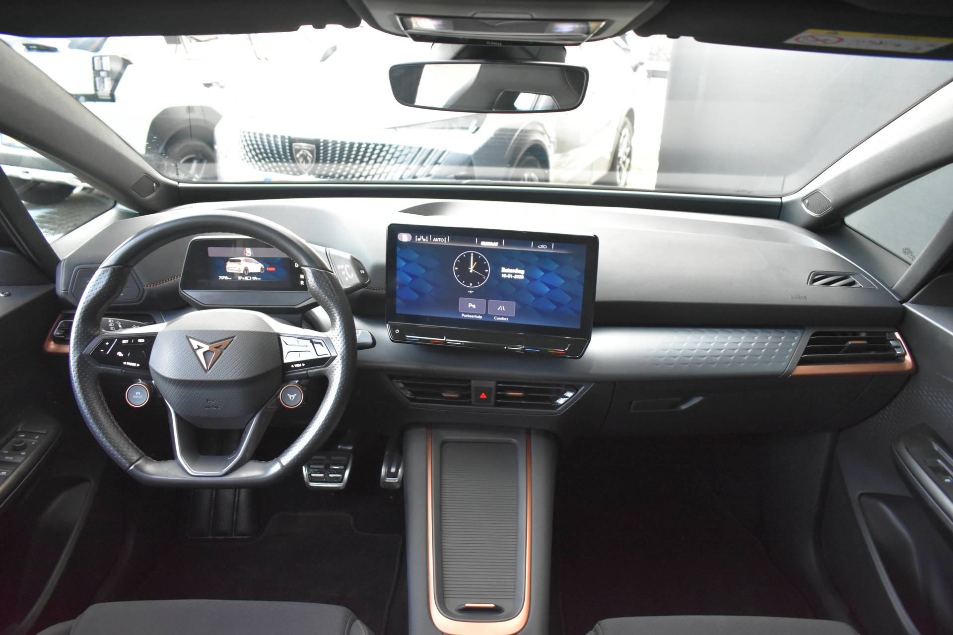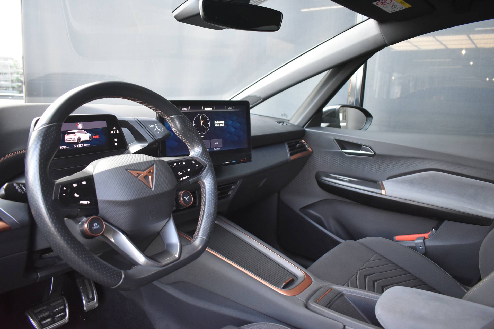 CUPRA heeft een uitstekende reputatie opgebouwd als het gaat om betrouwbare elektrische auto's. Kiest u voor deze Born, dan kiest u voor degelijke techniek van topklasse. De elektromotor laat u geluidloos over de weg gaan. Wat een verademing, en zoveel power ook nog! Een krachtige motor geeft deze auto zijn sportieve prestaties. 's Winters op pad gaan kan een behoorlijke uitdaging zijn. Daarom is deze CUPRA Born voorzien van weldadige verwarmbare voorstoelen. De strakke sportstoelen hebben niet alleen de looks, maar bewijzen ook hun functie als u wat meer vraagt in de uitdagende bochten. Stramme vingers krijgen 's winters een VIP-behandeling van het verwarmd stuurwiel. Tot de uitrusting van deze CUPRA behoren ook 19 inch lichtmetalen velgen, Full LED koplampen, sportonderstel, extra getint glas, in delen neerklapbare achterbank en LED-achterlichten. In één oogopslag heeft u alle benodigde functies onderweg in beeld, dankzij het slim ingedeelde digitale dashboard. Zodra u naar de 'R' schakelt, gaat de achteruitrijcamera in werking en heeft u een perfect zicht op alles wat zich achter de auto afspeelt. Adaptive cruise control houdt de ingestelde snelheid vast en houdt automatisch afstand tot uw voorligger. Met de ingebouwde spraakbediening kunt u de belangrijkste voertuigsystemen bedienen met stemcommando's. De jeugd is niet los te maken van hun smartphone, en dat zie je ook aan deze jonge auto. Via een speciale app staat u overal en altijd in contact met uw vierwieler. Superhandig! Met premium audiosysteem, full map navigatiesysteem, automatische airconditioning, draadloos opladen, DAB ontvangst en regensensor is deze CUPRA helemaal compleet. De CUPRA Born is uw trouwe partner onderweg, want hij houdt continu voor u de situatie op en om de weg in de gaten. Volautomatische veiligheidssystemen kunnen daarbij ingrijpen om u voor gevaarlijke situaties te behoeden. Een belangrijke bijdrage aan de veiligheid onderweg levert de verkeersbord-detectie. Het Lane-keeping systeem zorgt dat u mooi binnen de lijntjes blijft. Ongemerkt buiten de rijstrook komen is er niet meer bij. Veel aanrijdingen bestaan uit kop-staartbotsingen. De forward collision warning reduceert dat risico aanzienlijk. In deze CUPRA vinden we verder een vermoeidheidsherkenning, frontale botsbescherming en bandenspanningcontrolesysteem. Met deze fantastische elektrische auto is de toekomst begonnen. Even bellen voor een afspraak en hij staat klaar voor een proefrit!