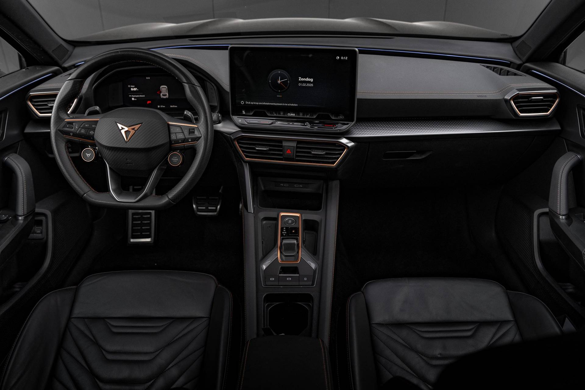 Deze CUPRA Formentor staat voor u klaar. Een geweldige, nog jonge occasion die goed is voor gemakkelijk nog een tonnetje of twee op de teller. Het zal niet lang meer duren totdat benzinerijden uit de tijd is. Maar voor nu is dit de beste oplossing: een combi van elektrisch en brandstof, met een hybride motor. Het interieur ademt luxe door de leren bekleding. Doe maar luxe! Neem plaats in de verwarmbare voorstoelen en voel de weldaad in koude dagen. Een praktische extra is de elektrisch bedienbare achterklep die opent en sluit met een druk op de knop. Het glazen panoramadak zorgt ervoor dat u zich omringd voelt door de omgeving. Geen gekleum meer in de koude dagen. Het verwarmd stuurwiel voelt als een weldaad na het ijskrabben. De slimme koplampen gebruiken de allernieuwste matrix LED-verlichting. Altijd maximaal zicht, nooit verblinding bij de tegenligger. Ook 19 inch lichtmetalen velgen, adaptief dempingsysteem, trailer assistent, extra getint glas, in delen neerklapbare achterbank en LED-achterlichten zijn aan boord. Uw rit wordt comfortabel en veilig gemaakt door het digitale dashboard dat alles projecteert wat u wenst in de digitale wereld van mobiliteit. Door het combineren van beelden van vier camera's, biedt de 360 graden camera een naadloos en gedetailleerd beeld van de hele omgeving rondom deze auto. Adaptive cruise control is veilig en comfortabel. De snelheidsregelaar houdt automatisch afstand tot het voertuig dat voor u rijdt. Even niks om achter de auto te hangen? Dan is de elektrisch inklapbare trekhaak superhandig. De speciale app verbindt met Connected Services, die de status van vitale functies bijhoudt en waarschuwt als u bijvoorbeeld moet tanken, de bandenspanning moet controleren of olie moet bijvullen. Extra opties op deze auto zijn: dashboard met spraakbediening, premium audiosysteem, navigatiesysteem, automatische airconditioning, DAB ontvangst en regensensor. Aan boord van deze CUPRA houden verschillende geavanceerde systemen voor u de weg in de gaten. Ze waarschuwen u voor noodsituaties en kunnen in een aantal gevallen ook zelf ingrijpen. Tijdens de rit hebt u altijd een bijrijder, want de verkeersbord-detectie leest de borden langs de weg en projecteert ze voor u op het instrumentarium. Het Lane-keeping systeem registreert permanent of u binnen de lijnen van de rijstrook blijft; dwaalt u onbedoeld af, dan waarschuwt het systeem en corrigeert de koers. Op een kop-staartbotsing zit niemand te wachten. Daarom is de forward collision warning onderweg constant alert en berekent via een sensor de veilige afstand tot voorliggers. Ook helpen het dodehoekdetectie, hill hold functie, vermoeidheidsherkenning en bandenspanningcontrolesysteem, uw rit tot een veilige rit te maken. Bent u nieuwsgierig geworden? Bel ons nu of mail ons voor meer informatie.
