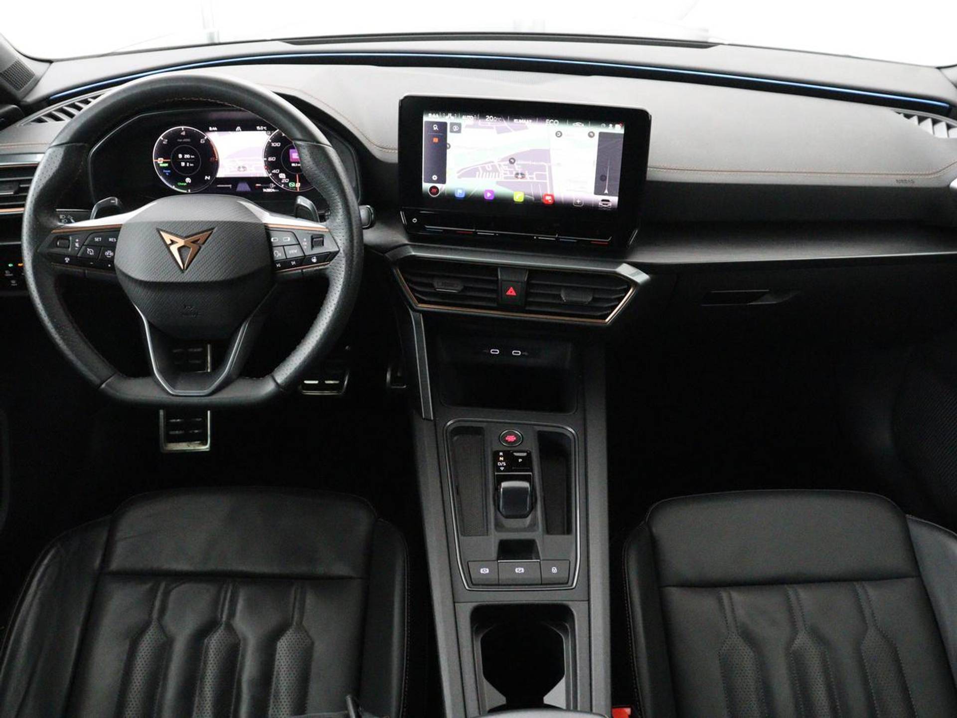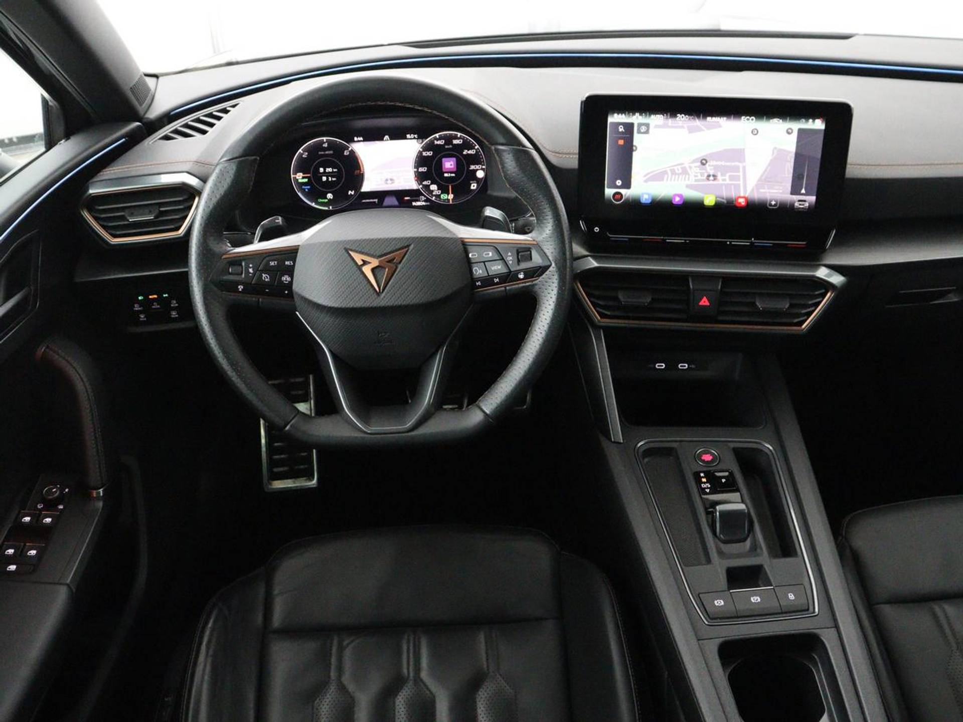 Ervaar de wonderen van de digitale mobiliteitswereld waarbij alles wat u wenst op het digitale dashboard verschijnt. Met de achteruitrijcamera ziet u wat er achter de auto gebeurt. Zo rijdt u moeiteloos achteruit. Adaptive cruise control is veilig en comfortabel. De snelheidsregelaar houdt automatisch afstand tot het voertuig dat voor u rijdt. Zo'n lekkere jonge auto heeft natuurlijk leuke extra's, zoals remote services. Met een speciale app maakt u overal verbinding met de auto. Zo kunt u functies activeren en controleren. Deze Cupra is voorzien van spraakbediening voor het full map navigatiesysteem en voor het audiosysteem met DAB-ontvangst. Maar u kunt ook de knoppen op het stuur gebruiken. En dan is deze auto ook nog eens voorzien van electronic climate control, draadloos opladen, regensensor en automatisch dimmende binnenspiegel.