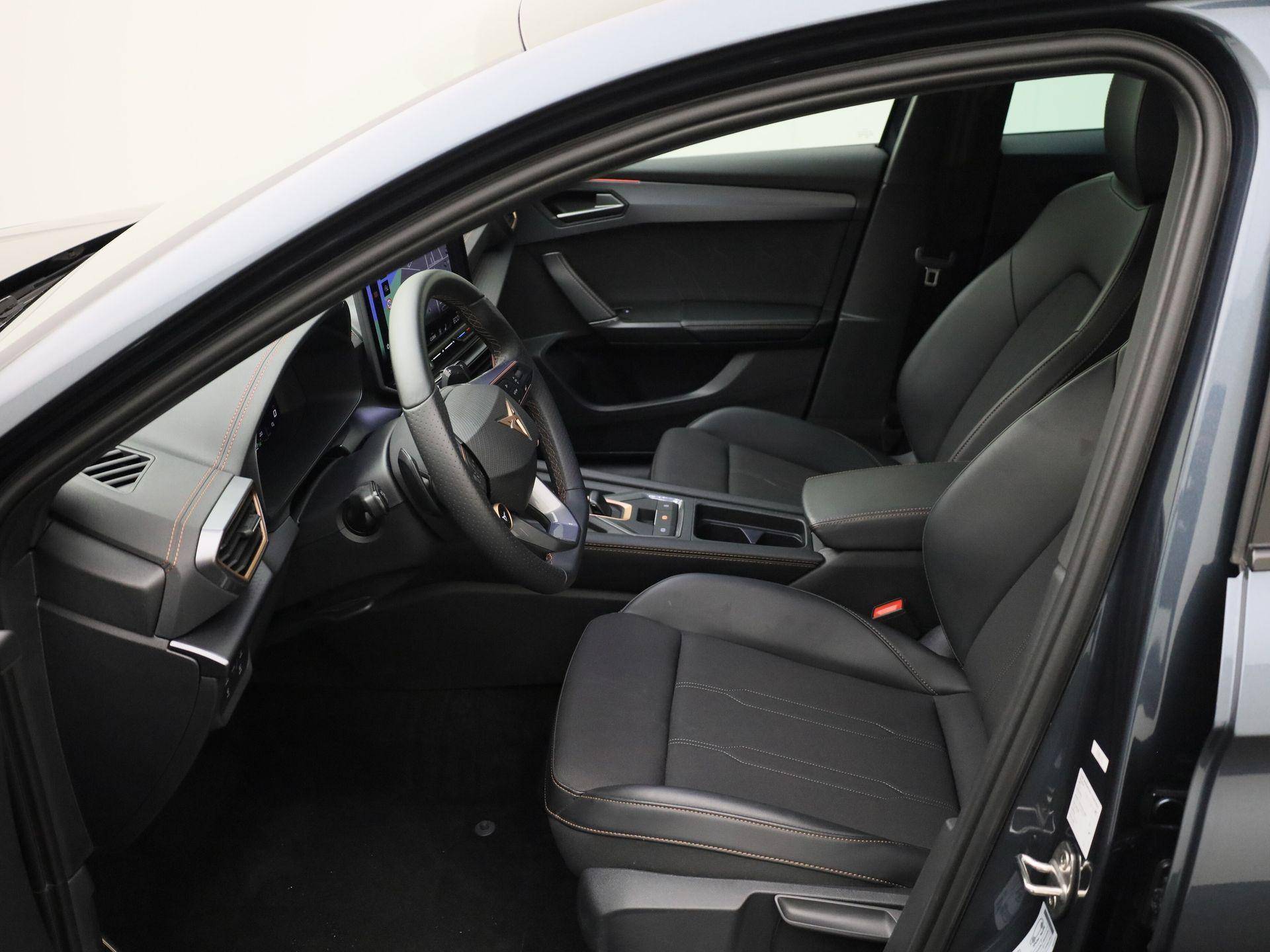 Soepel rijgedrag, een krachtige acceleratie en een laag brandstofverbruik, de hybride CUPRA Leon is een innovatieve auto. Elektrisch rijden of liever benzine? Kiezen hoeft niet, want de hybride motor maakt het allebei mogelijk. Ga samen met uw bijrijder lekker zitten in de verwarmbare voorstoelen. Chauffeur en bijrijder zitten stabiel in de scherpe bochten door de sportstoelen. Als het buiten koud wordt, voelt zo'n verwarmd stuurwiel heerlijk aan. Natuurlijk behoren 18 inch lichtmetalen velgen, Full LED koplampen, extra getint glas, in delen neerklapbare achterbank, LED-achterlichten en verstelbare lendensteunen ook tot de uitrusting van deze complete auto.