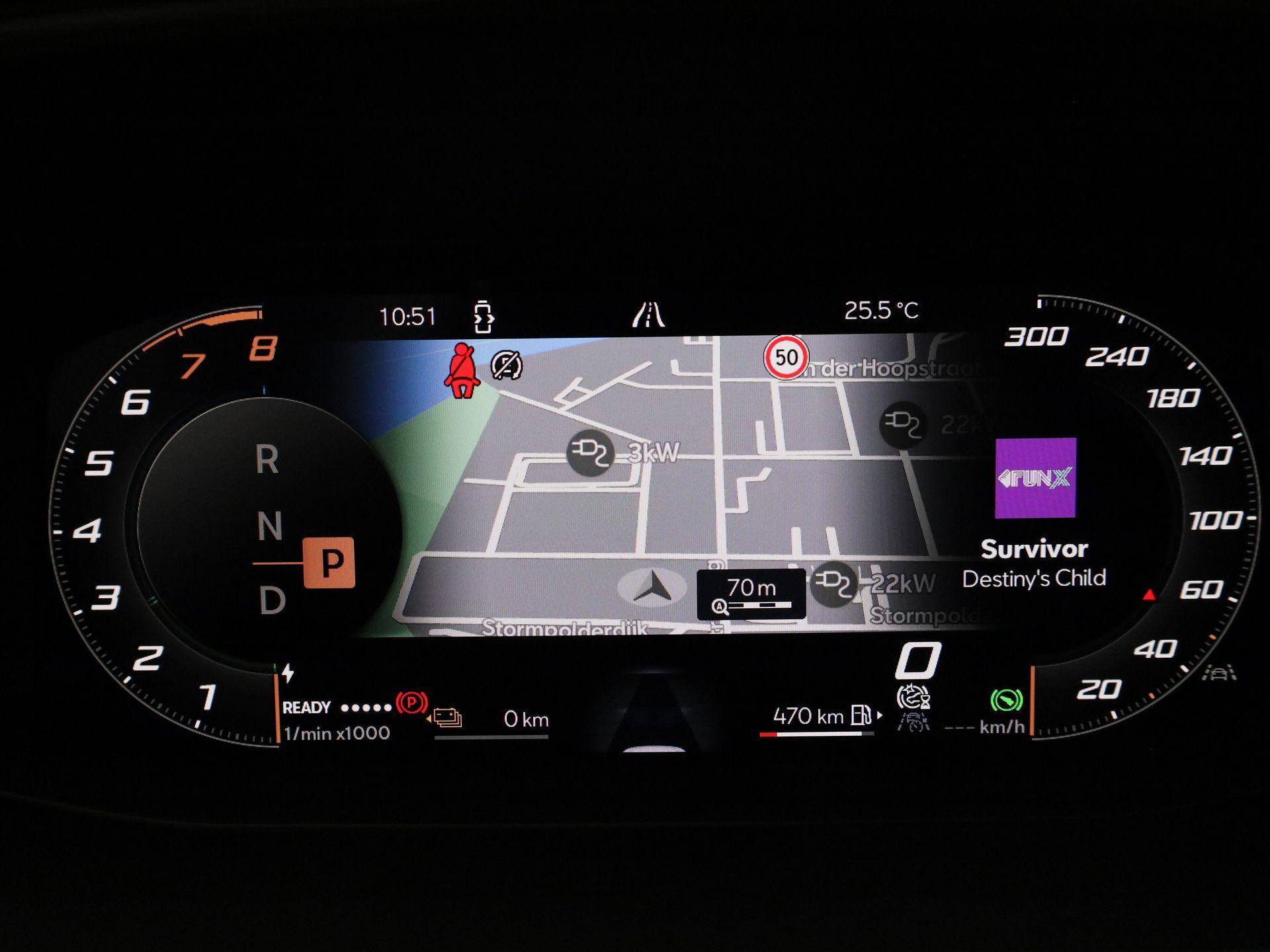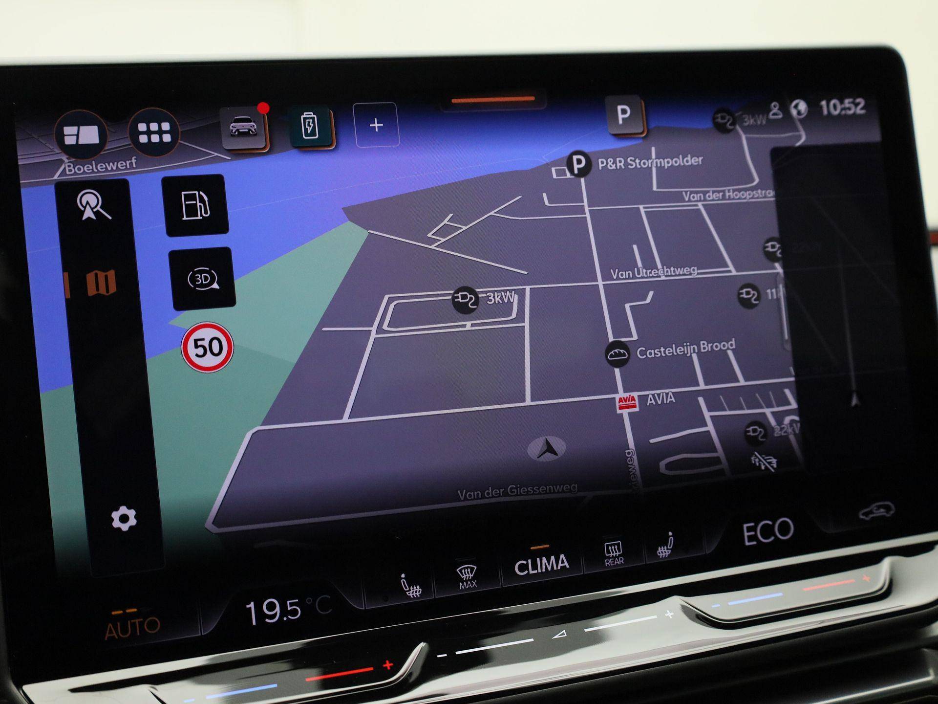 Alle functies die u onderweg nodig heeft, worden permanent geregistreerd en zijn afleesbaar op het digitale dashboard. Ook achter de auto geen verrassingen bij het inparkeren. Daarvoor zorgt de achteruitrijcamera. Adaptive cruise control houdt de ingestelde snelheid vast en houdt automatisch afstand tot uw voorligger. Spraakbediening herkent uw stem en voert opdrachten uit terwijl u beide handen aan het stuur houdt. De speciale app verbindt met Connected Services, die de status van vitale functies bijhoudt en waarschuwt als u bijvoorbeeld moet tanken, de bandenspanning moet controleren of olie moet bijvullen. De uitrusting van deze auto is met full map navigatiesysteem, electronic climate control, draadloos opladen, DAB ontvangst, regensensor en keyless entry behoorlijk compleet.