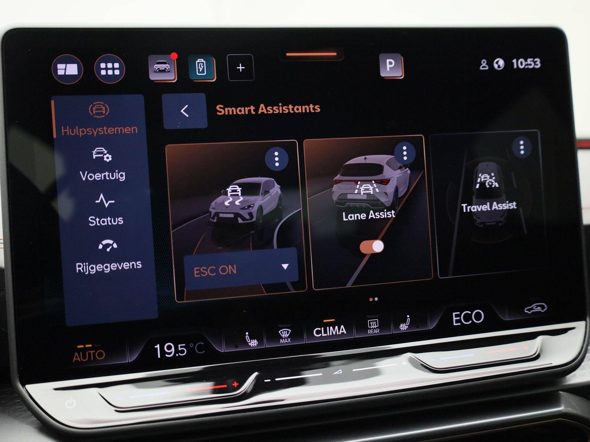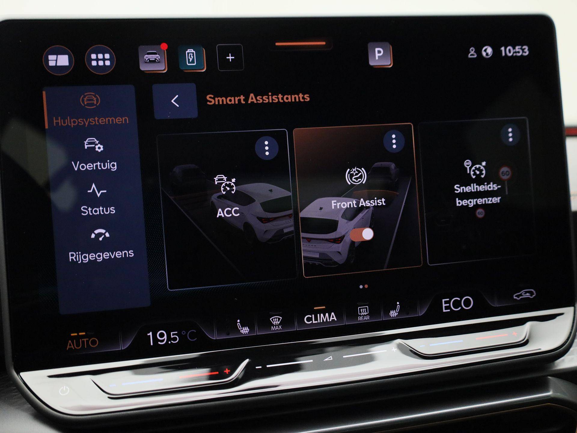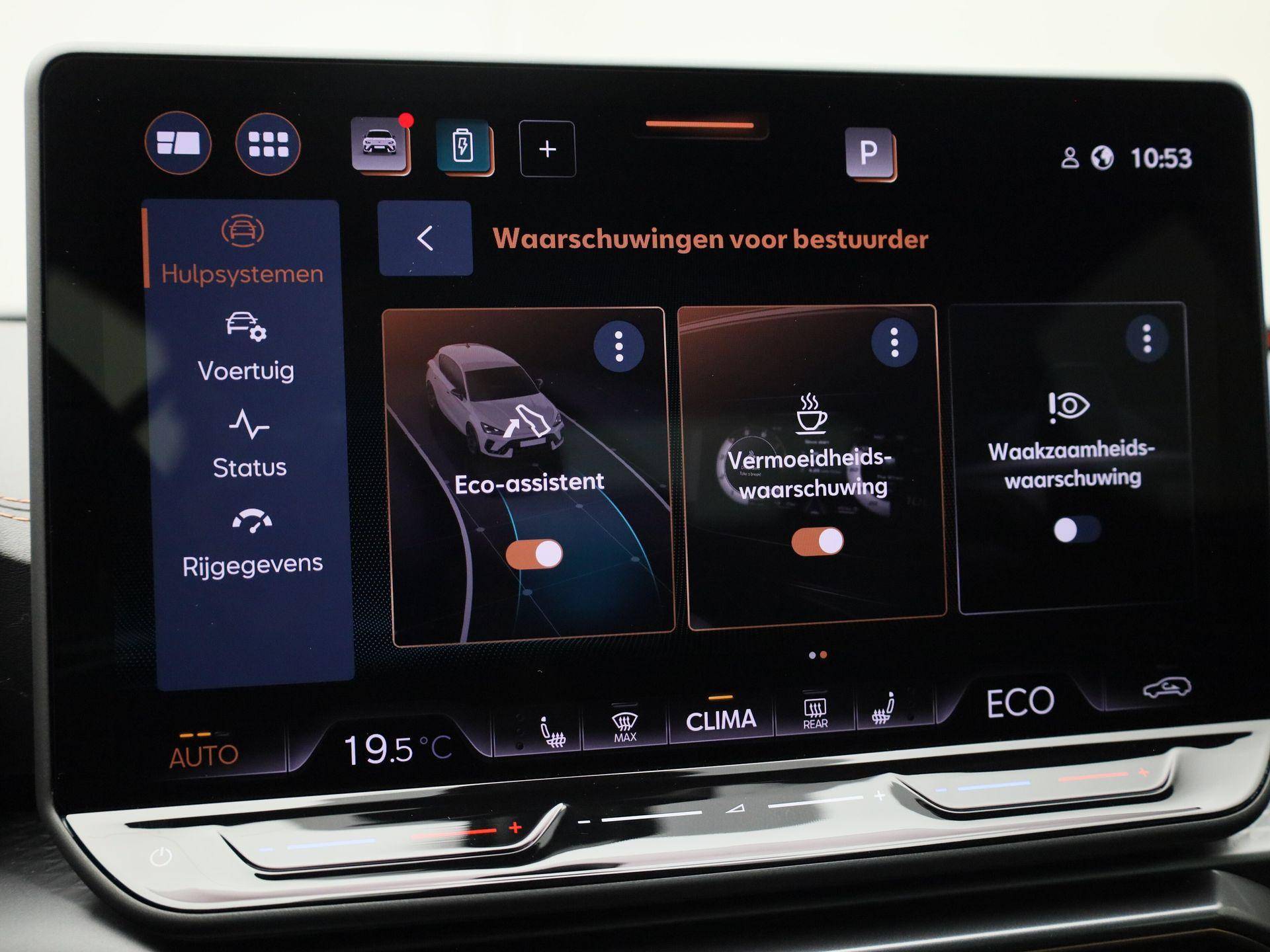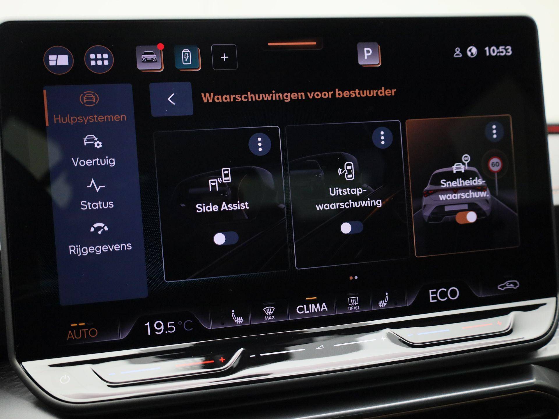 Pragmatisch en veilig als deze auto is, beschikt hij over diverse veiligheidssystemen. Wat deze auto ook kan, is lezen. Hij 'leest' voor u de verkeersborden tijdens de rit en attendeert u erop door ze op het dashboard te projecteren. Een camera houdt de juiste koers binnen de rijstrook in de gaten en het Lane-keeping systeem corrigeert bij afwijkingen. Het forward collision warning-systeem waarschuwt indien een botsing dreigt met een voorliggend of tegemoetkomend voertuig. In deze CUPRA vinden we verder een dodehoekdetectie, hill hold functie, vermoeidheidsherkenning, autonoom remsysteem en bandenspanningcontrolesysteem.