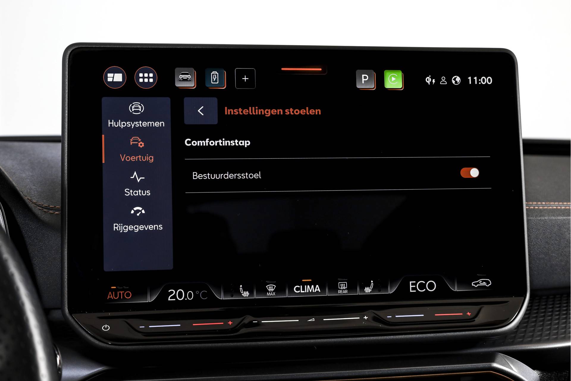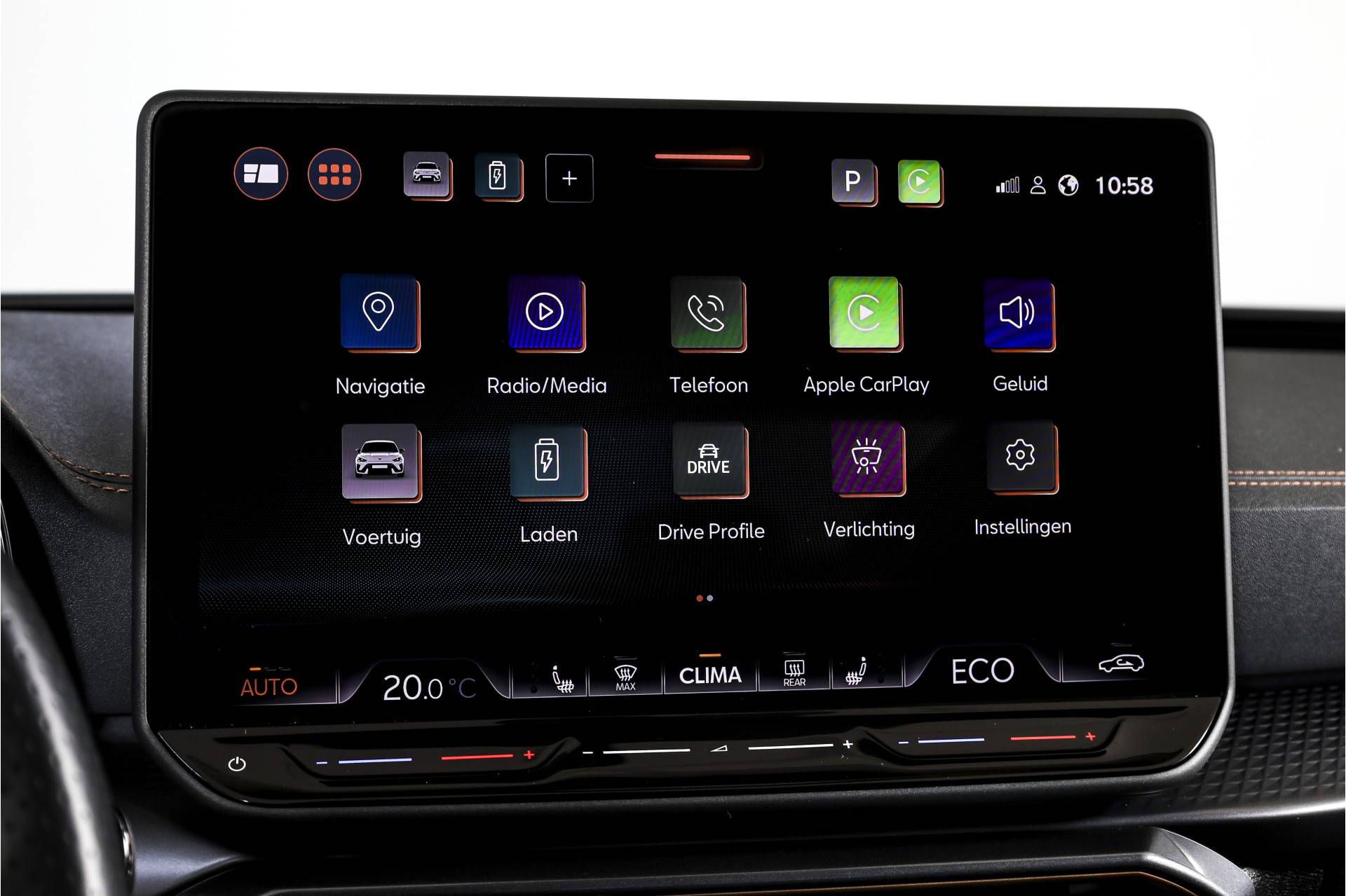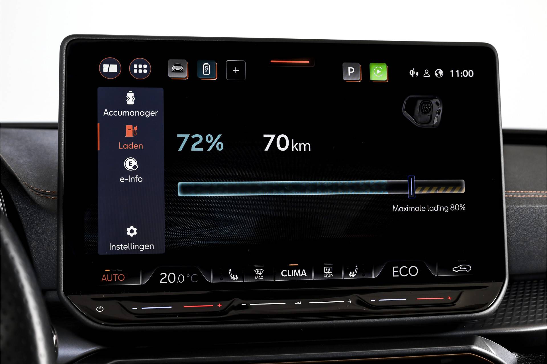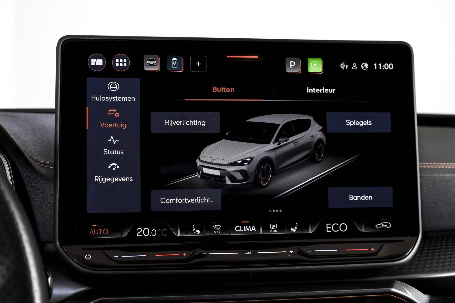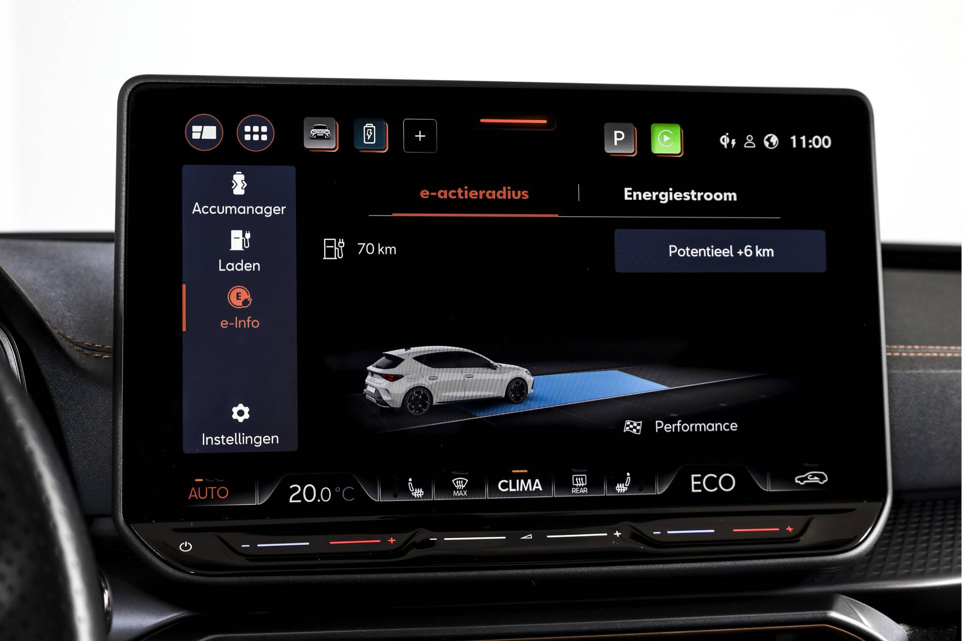 Het gaat hier om een rijk uitgevoerde VZ Performance, wat je direct merkt aan het hoge comfort- en uitrustingsniveau. Opladen gaat praktisch en toekomstbestendig via de 11 kW lader. Het interieur is comfortabel voor alle inzittenden dankzij electronic climate control, aangevuld met airco separaat achter. In koude of warme omstandigheden is het extra prettig dat de auto beschikt over interieur voorverwarming/(koeling).
