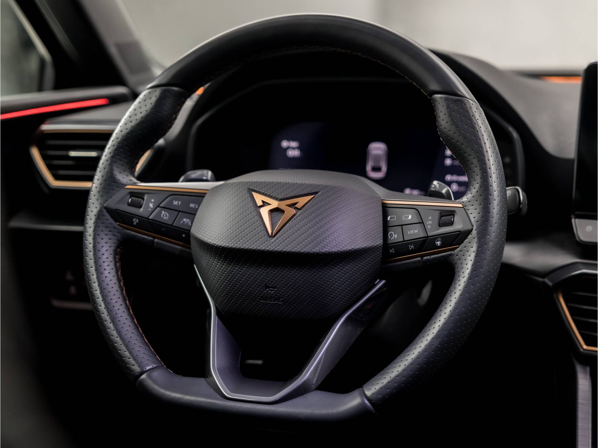 De slimme lay-out van het digitale dashboard zorgt voor een uitstekend overzicht onderweg. Wat een gemak, die achteruitrijcamera. Alles in beeld zonder capriolen. Adaptive cruise control houdt de ingestelde snelheid vast en houdt automatisch afstand tot uw voorligger. Ingericht op Connected Services, voor een nog veiligere en comfortabelere rit. Onderweg kunt u veilig genieten van het audio-installatiesysteem met DAB-radio en het TomTom navigatiesysteem. Want in deze CUPRA bedient u ze vanaf het stuurwiel of met uw stem. Ook WIFI-hotspot, automatische airconditioning, sportstuur met schakelpaddels, draadloos opladen, regensensor en keyless entry zijn aan boord.