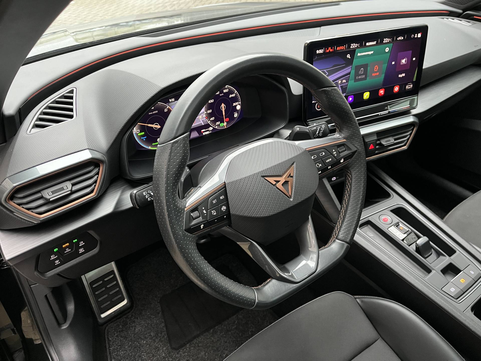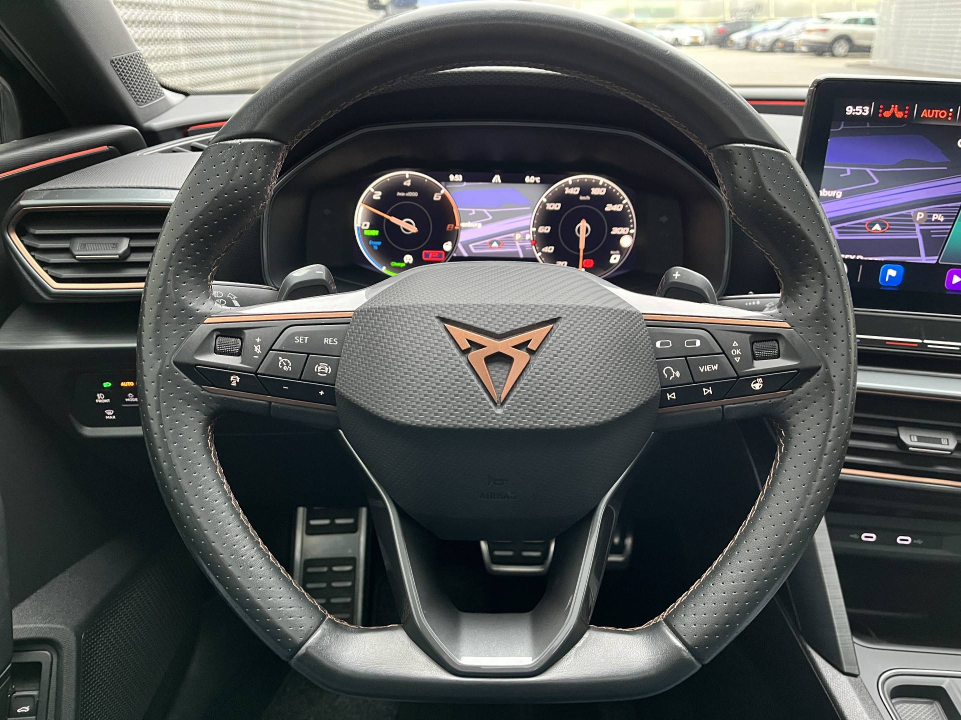 Geen andere techniek heeft in deze eeuw de automobiel zo veranderd als de hybridetechniek. We weten het: benzinerijden is een dure grap. Elektrisch heeft de toekomst. Met de hybride motor van deze CUPRA Leon heb je de keuze: elektrisch als het kan, benzine als het moet. Lekker hoor, die verwarmbare voorstoelen. Helemaal op koude dagen. Dankzij het elektrisch bediende glazen panoramadak lijkt het of je altijd met open dak rijdt. Bij de uitrusting van deze CUPRA horen onder meer 19 inch lichtmetalen velgen, LED koplampen, donker getint glas achter, in delen neerklapbare achterbank, LED-achterlichten en verstelbare lendensteunen.