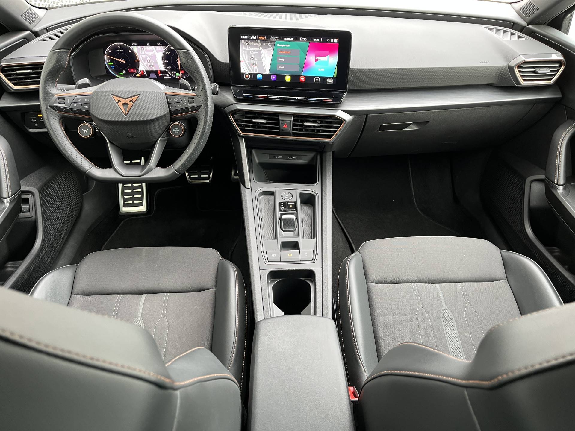 Slim, efficiënt, veilig en goed geïnformeerd rijden? Het digitale dashboard vertelt je alles wat je wilt weten. De achteruitrijcamera maakt inparkeren gemakkelijker dan ooit. Met adaptive cruise control houdt deze auto automatisch afstand tot jouw voorligger. Kop aan kont langzaam rijden: dan is afstand houden soms lastig. De file assistent helpt en zorgt automatisch voor veilige ruimte tot de voorligger. Ook als die tot stilstand komt. Ingebouwde spraakbediening maakt het mogelijk om de auto te bedienen zonder dat jouw aandacht wordt afgeleid. Je bent in deze CUPRA ook voorzien van full map navigatiesysteem, WIFI-hotspot, achteropkomend verkeer waarschuwing, electronic climate control, schakelpaddles aan het stuur en draadloos opladen.
