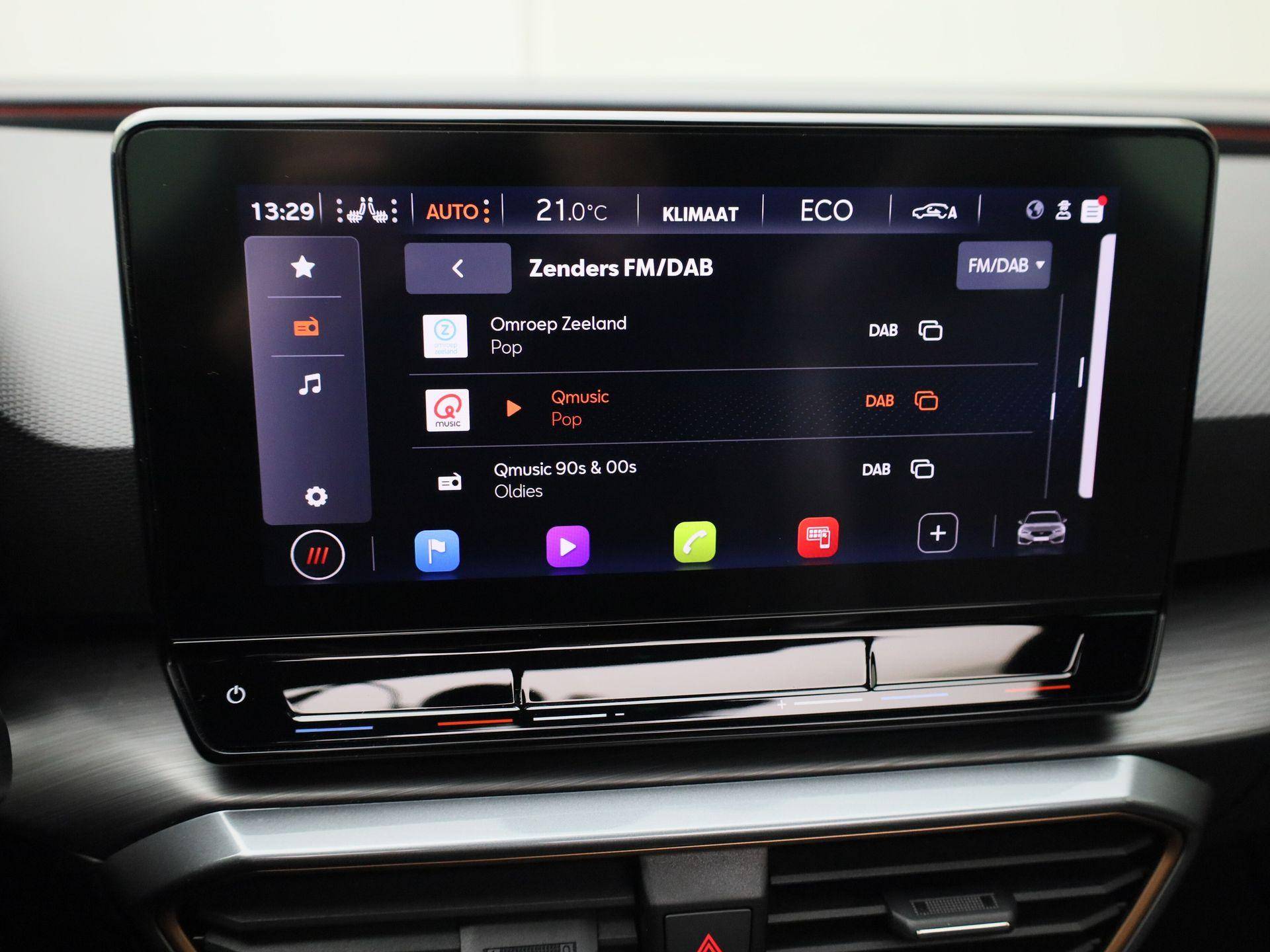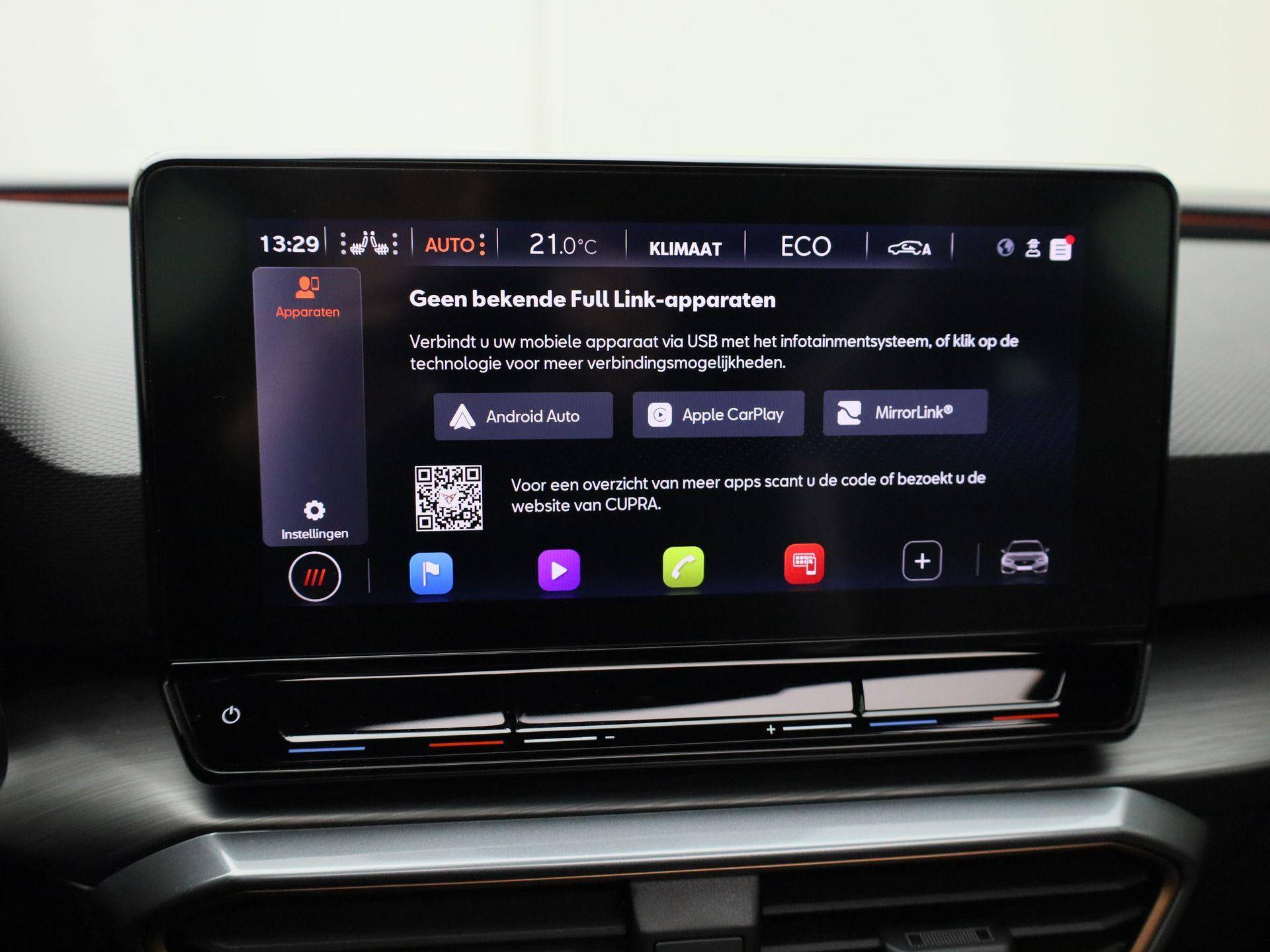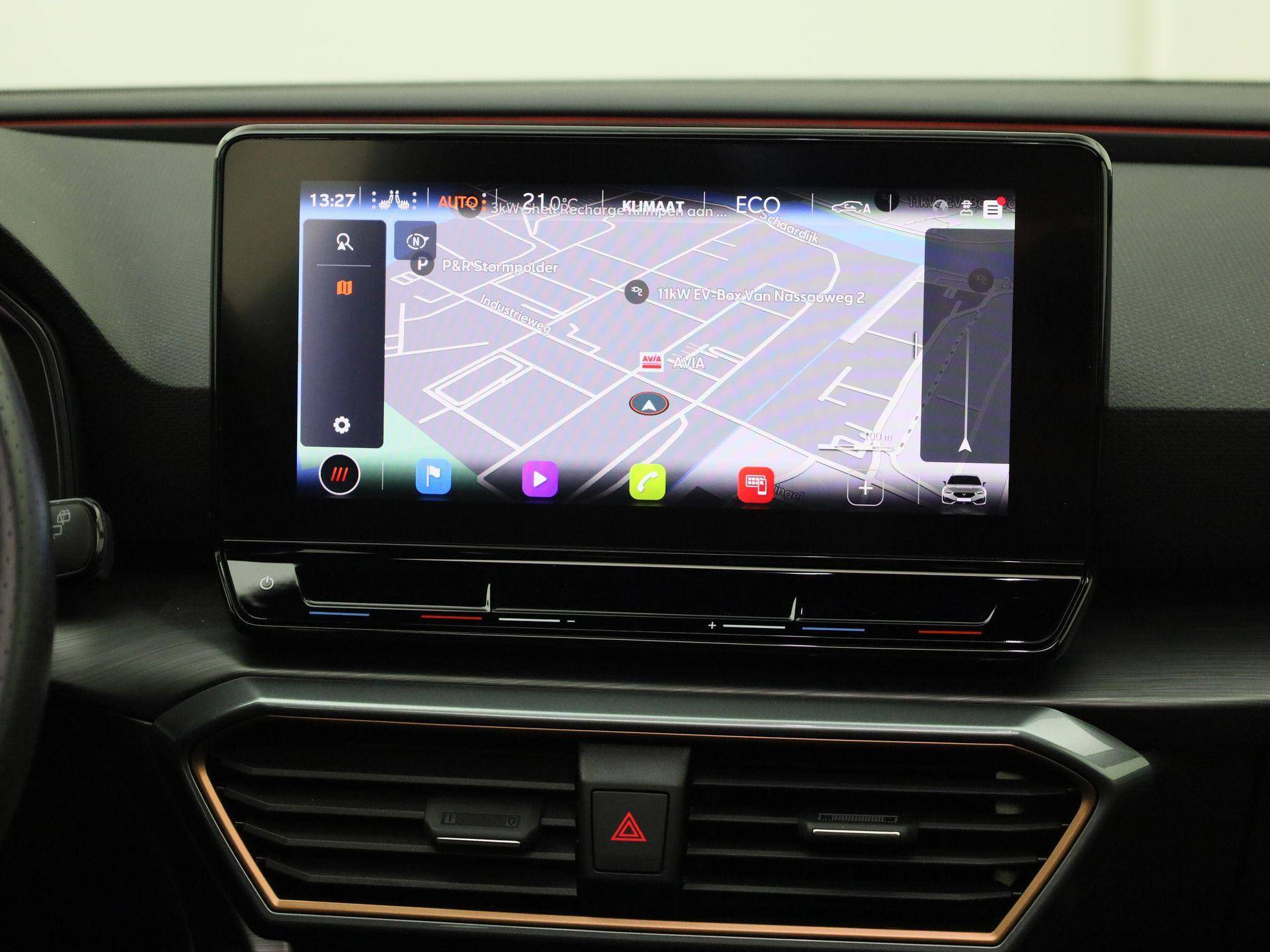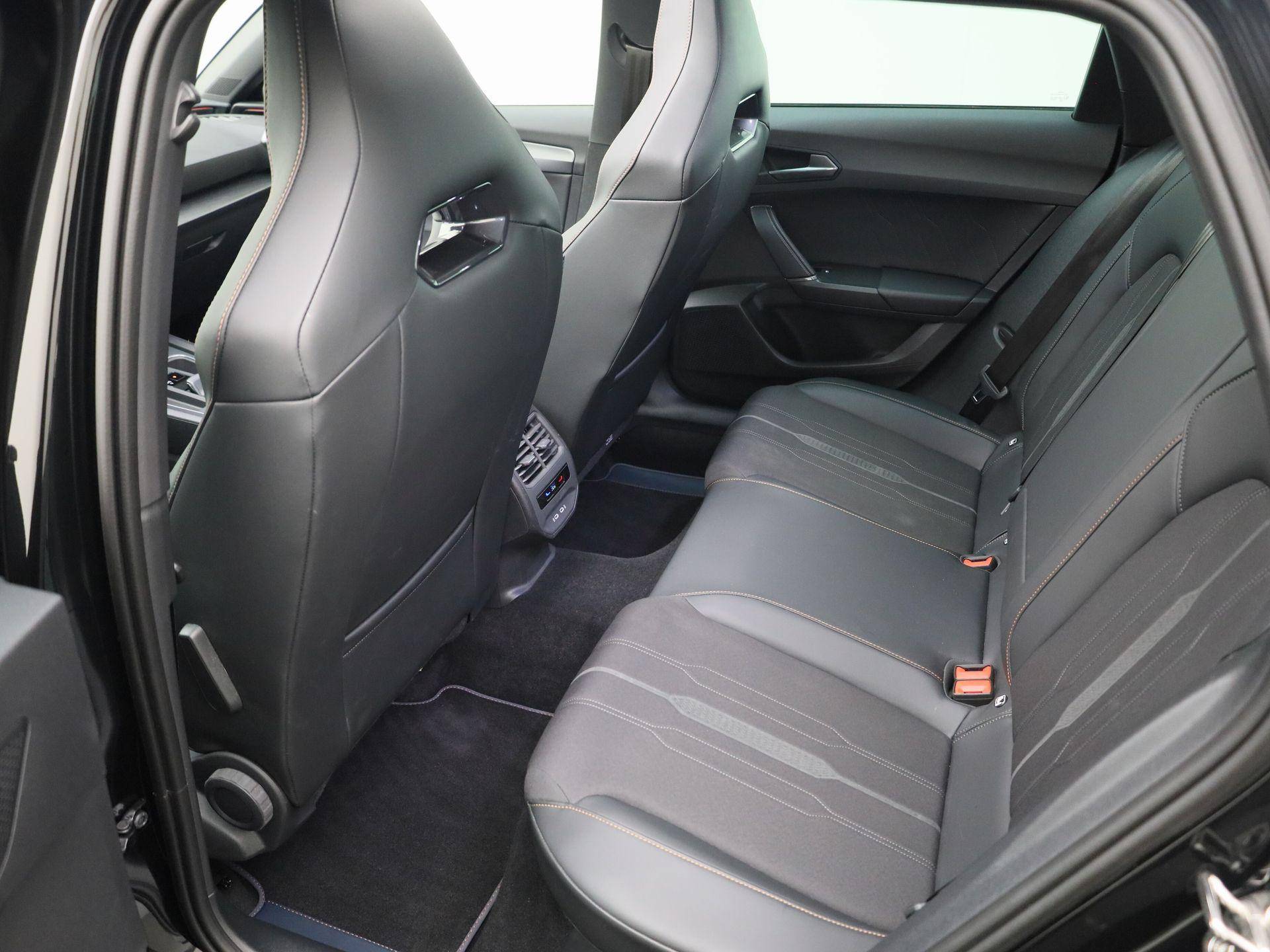 Alle functies voor een veilige en zuinige rit worden overzichtelijk weergegeven op het digitale dashboard. Met adaptive cruise control houdt de auto zelfstandig afstand tot uw voorligger. Een veiligheidsverhogende optie waarmee u comfortabel onderweg bent. Functies activeren en storingen opsporen? Bij deze auto gaat het eenvoudig via uw smartphone. Overal en altijd. Het full map navigatiesysteem en het audiosysteem (met DAB-ontvangst!) bedient u met knoppen op het stuur of met gesproken commando's. Telefoon onderweg aan de lader? Daar komt geen kabeltje aan te pas, want deze CUPRA Leon Sportstourer is voorzien van een draadloze oplaadmogelijkheid voor telefoons. Extra opties op deze auto zijn: electronic climate control, parkeersensoren achter, regensensor, keyless entry en automatisch dimmende binnenspiegel.