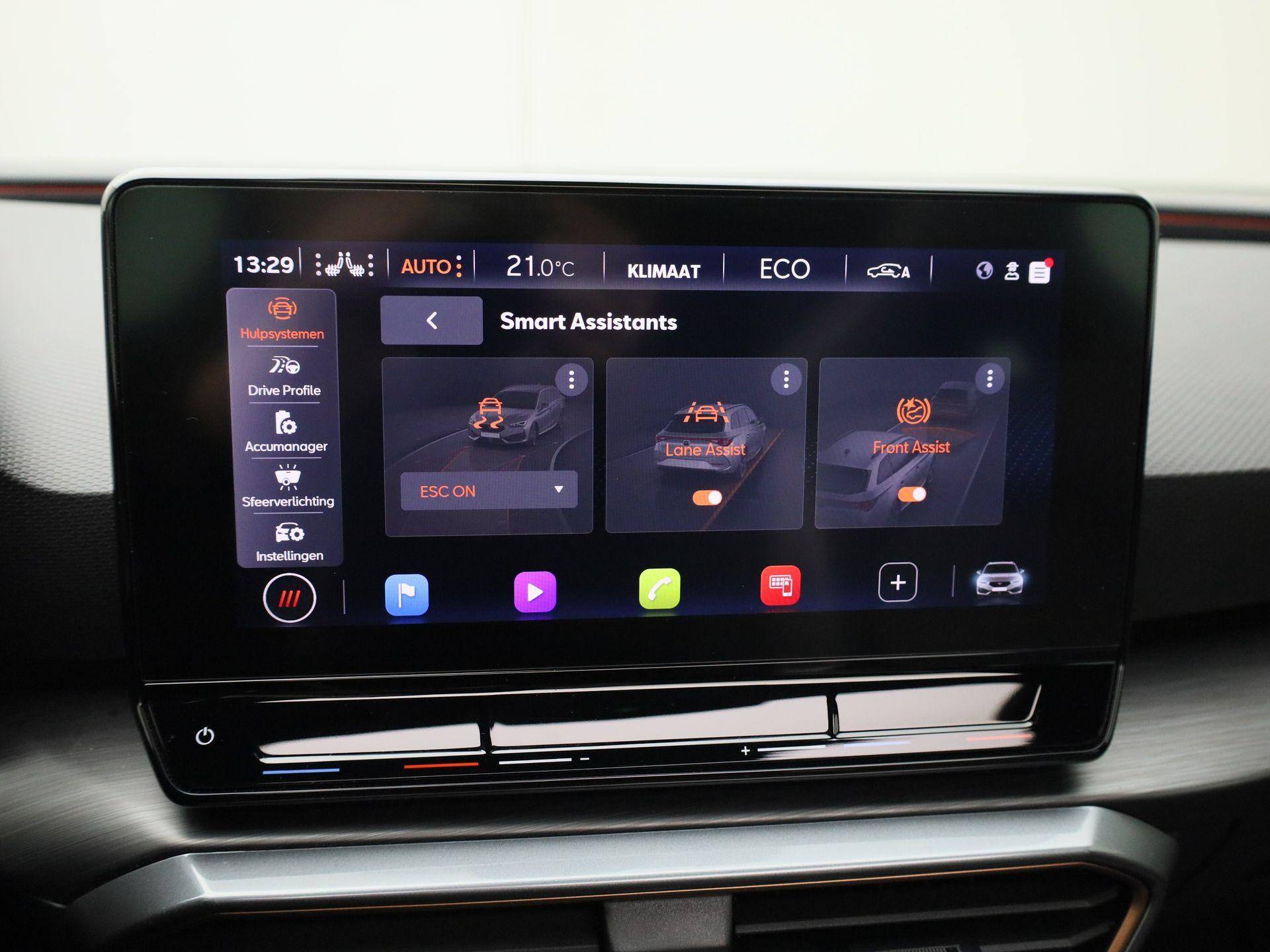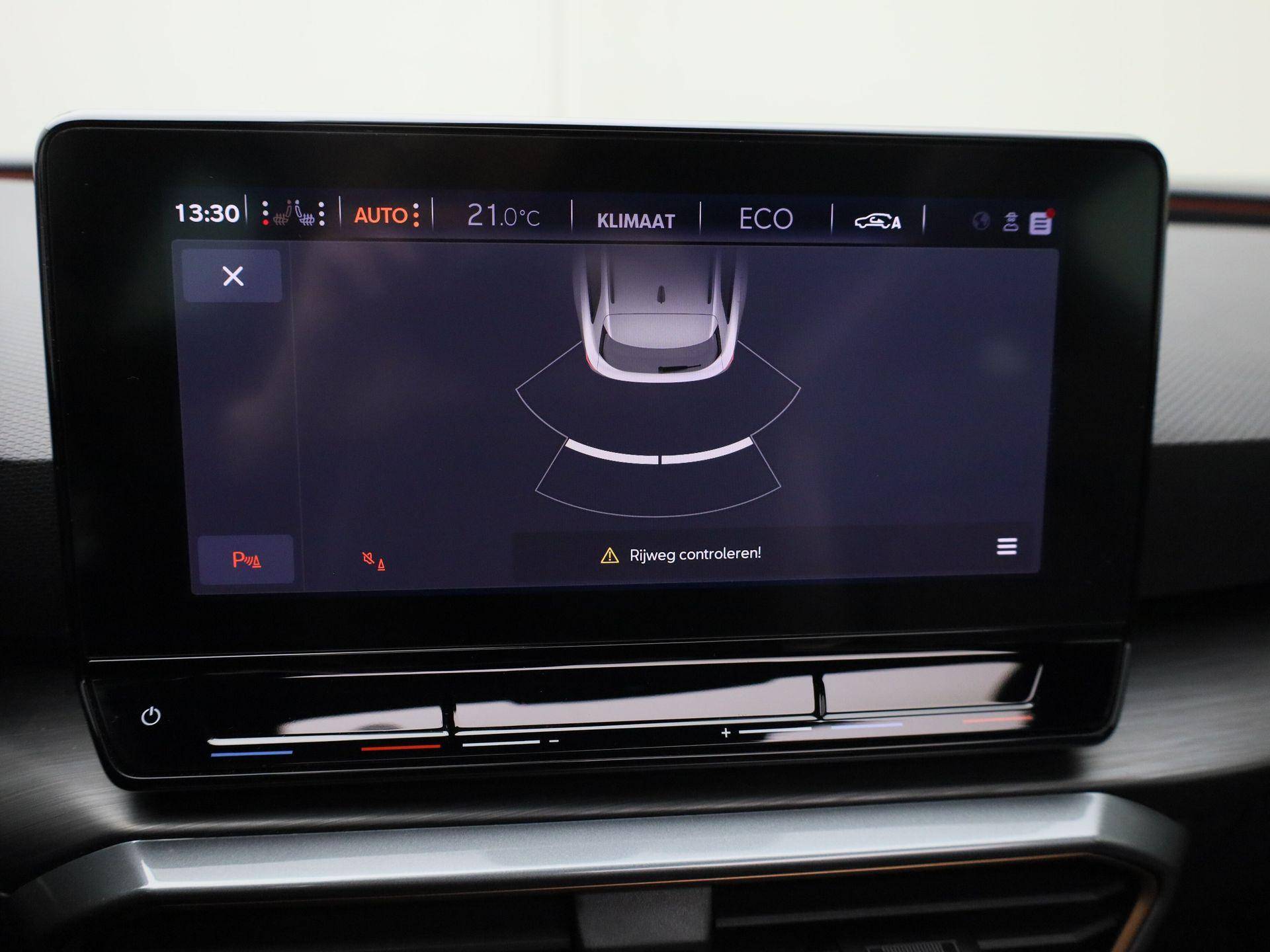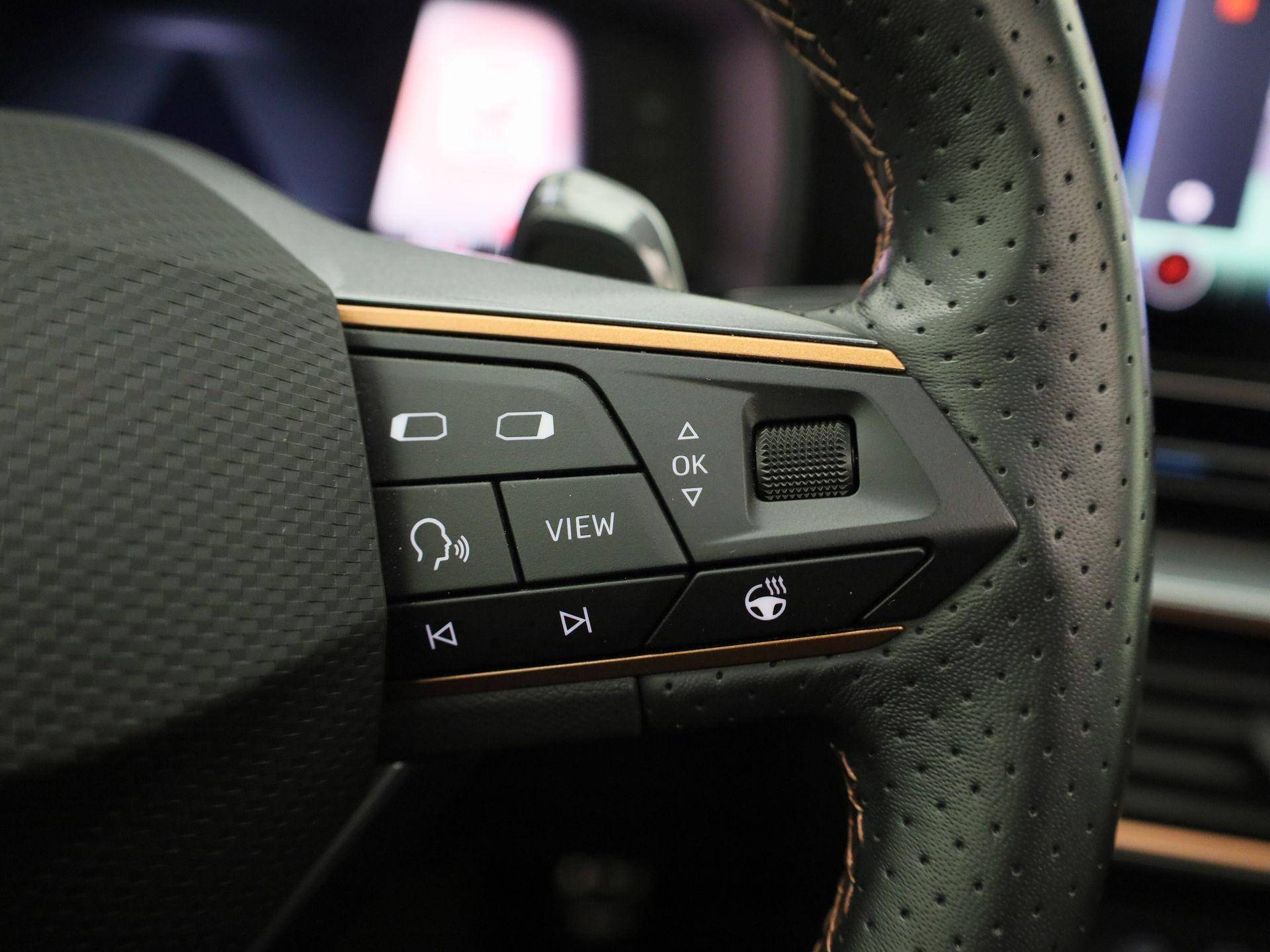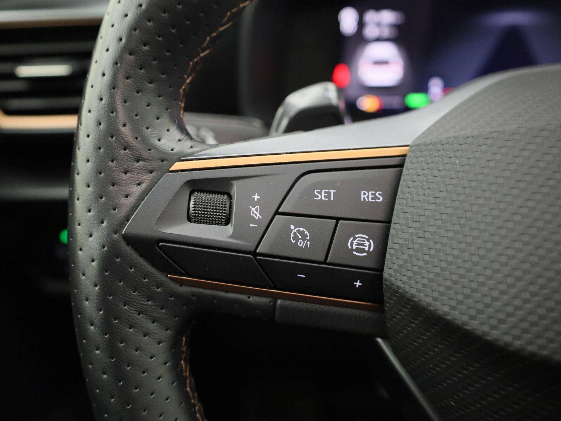 Geavanceerde technische systemen houden tijdens elke rit het verkeer in de gaten en reageren op potentieel gevaarlijke situaties. De camera van de verkeersborddetectie herkent verschillende soorten verkeersborden en toont deze op het dashboard. Ongemerkt buiten de rijstrook raken? Nee hoor, het Lane-keeping systeem waarschuwt en corrigeert. Het forward collision warning-systeem is constant alert en detecteert via sensor de afstand tot voorliggers. Wordt die te klein, dan volgt een automatische waarschuwing. In deze CUPRA vinden we verder een front assist, hill hold functie, vermoeidheidsherkenning, autonoom remsysteem en bandenspanningcontrolesysteem.