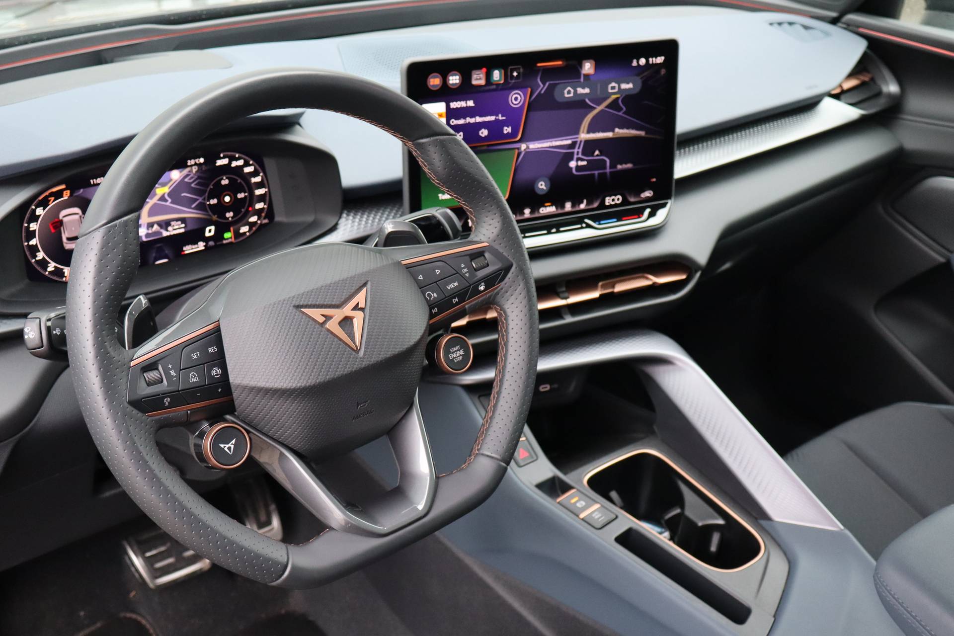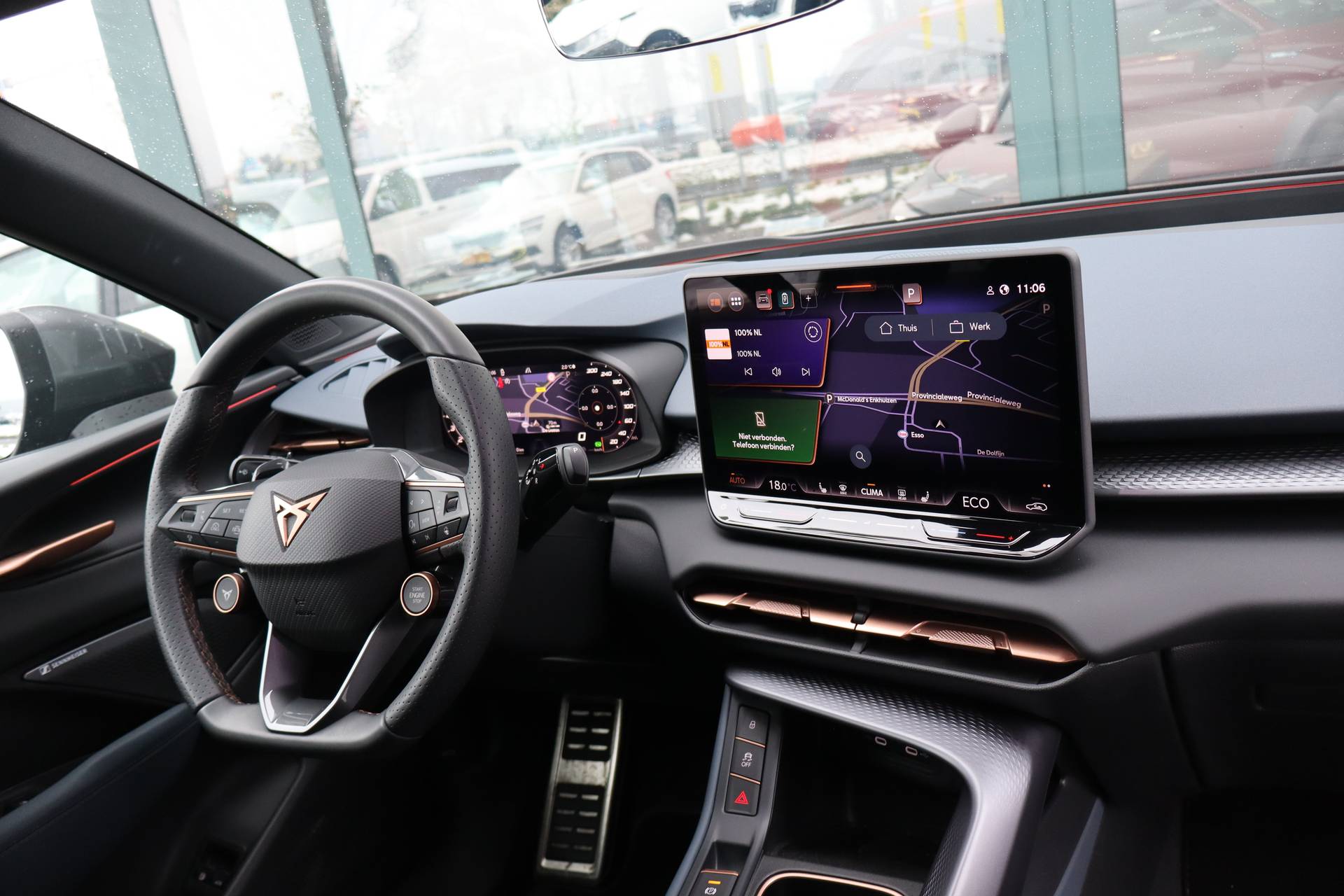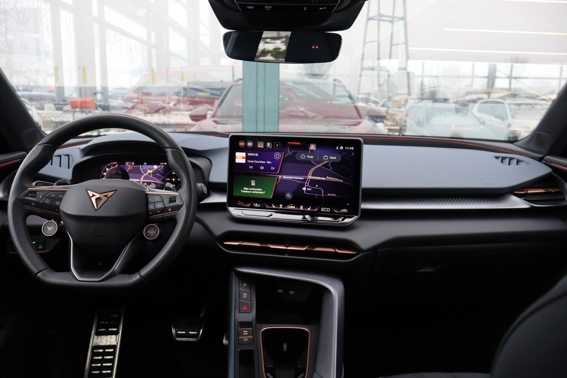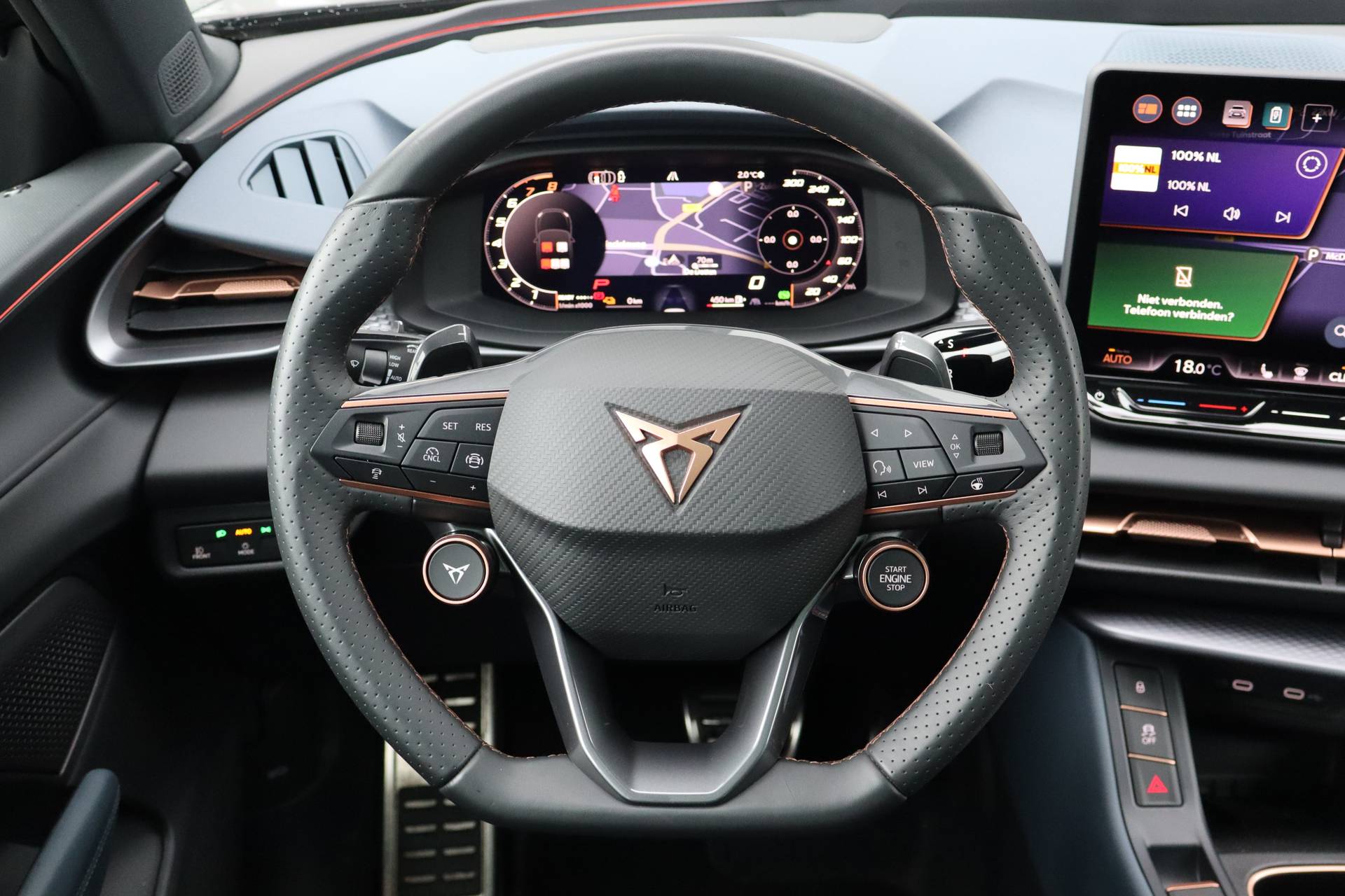 In het moderne verkeer hebt u achter het stuur van de CUPRA Terramar altijd de controle. Deze auto uit 2025 heeft 14517 kilometer op de teller staan. Het is een hybride, daardoor is de auto zuinig met brandstof. U zit er altijd warmpjes bij door de stoelverwarming. De achterklep opent automatisch met een druk op de knop. Handig als u met volle handen staat. Fijn plusje, zeker in de kille dagen, is het verwarmd stuurwiel. U wordt in deze auto ook getrakteerd op 19 inch lichtmetalen velgen, Full LED koplampen, adaptief dempingsysteem, extra getint glas, in delen neerklapbare achterbank en LED-achterlichten. Slim, efficiënt, veilig en goed geïnformeerd rijden? Het digitale dashboard vertelt u alles wat u wilt weten. Met de hulp van vier camera's, biedt de 360 graden camera op deze auto een panoramisch zicht, wat bijzonder nuttig is bij het parkeren en manoeuvreren. Met adaptive cruise control houdt deze auto automatisch afstand tot uw voorligger. Intelligente spraakbediening herkent uw commando's en voert opdrachten snel en soepel uit. Communiceren met uw auto? Dat gaat via remote services. Met uw smartphone maakt u waar dan ook contact om allerlei functies te checken of te activeren. Natuurlijk behoren navigatiesysteem, automatische airconditioning, draadloos opladen, DAB ontvangst, regensensor en keyless entry ook tot de uitrusting van deze complete auto. In de CUPRA Terramar heeft uw veiligheid en die van uw omgeving prioriteit. Belangrijke ritfuncties permanent in uw zichtveld: dat is het voordeel van de head-up display. Een belangrijke bijdrage aan de veiligheid onderweg levert de verkeersbord-detectie. Onbedoeld buiten de rijstrook raken wordt voorkomen door het Lane-keeping systeem. U bent mede dankzij dodehoekdetectie, forward collision warning system, hill hold functie, vermoeidheidsherkenning, frontale botsbescherming en bandenspanningcontrolesysteem steeds veilig onderweg. Natuurlijk bent u van harte welkom om deze CUPRA in ons bedrijf te komen bekijken. Laat u ons weten wanneer u wilt komen?