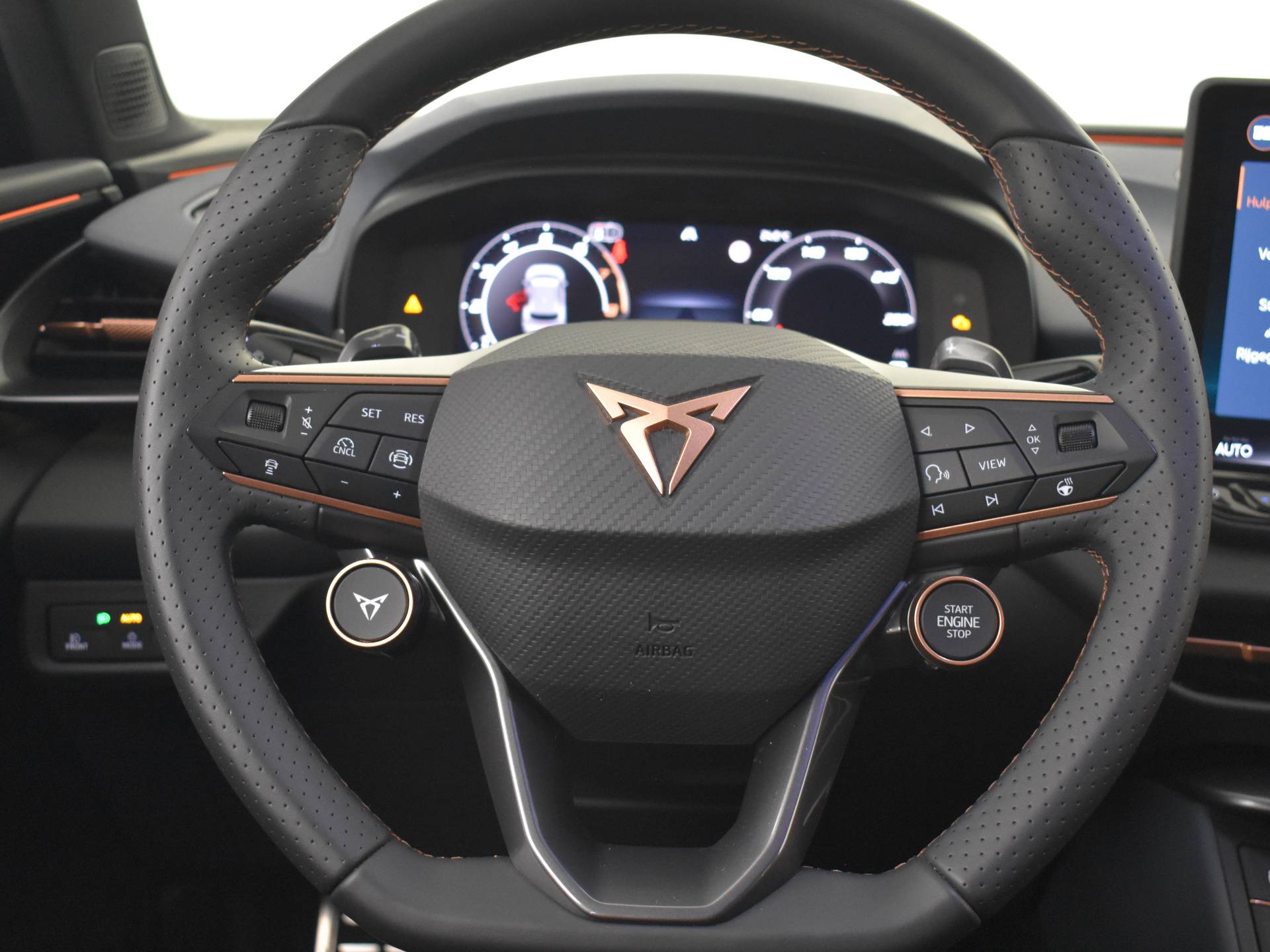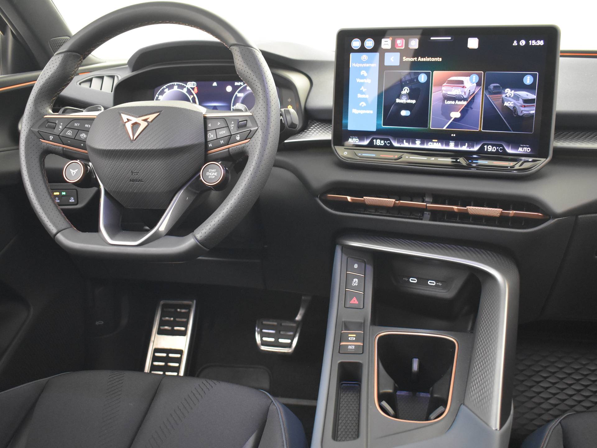 Dit is een auto die is ontworpen voor uw comfort. Deze CUPRA Terramar van het bouwjaar 2025 heeft 11474 kilometer op de teller staan. Hij heeft een benzinemotor en een automatische transmissie. Ga samen met uw bijrijder lekker zitten in de verwarmbare voorstoelen. Met een druk op de knop gaat de elektrische achterklep open. Nooit meer koude handen of koude vingers in de auto. Stuurverwarming zorgt ervoor dat het stuur behaaglijk warm aanvoelt. Ook 19 inch lichtmetalen velgen, Full LED koplampen, extra getint glas, in delen neerklapbare achterbank, LED-achterlichten en verstelbare lendensteunen zijn aan boord. Altijd de benodigde functies in beeld? Het digitale dashboard zorgt ervoor. De achteruitrijcamera laat duidelijk zien hoeveel ruimte u nog heeft bij het inparkeren. Adaptive cruise control houdt de ingestelde snelheid vast en houdt automatisch afstand tot uw voorligger. Bedient u de auto liever met uw stem? Dan is het goed om te weten dat spraakbediening aanwezig is. Uw smartphone is tegenwoordig de sleutel tot heel veel. Ook voor deze auto. Remote services, noemen we dat. Waar u ook bent, contact houden is een eitje. Natuurlijk behoren automatische airconditioning, draadloos opladen, DAB ontvangst, regensensor, keyless entry en automatisch dimmende binnenspiegel ook tot de uitrusting van deze complete auto. In deze auto zijn verschillende technologieën aanwezig die voor u het verkeer en de omgeving in de gaten houden en die desnoods ook kunnen remmen of bijsturen. In het instrumentarium ziet u tijdens de rit ook de belangrijkste verkeersborden aangegeven, die de auto automatisch voor u leest. Met het Lane-keeping systeem komt u nooit per ongeluk buiten de rijstrook. Het laatste wat u wilt is dat u achter het stuur indommelt. Om dat te voorkomen is deze auto uitgerust met vermoeidheidsherkenning. De auto is ook uitgerust met hill hold functie, autonoom remsysteem en bandenspanningcontrolesysteem. Meer weten? Neem nu contact met ons op voor een afspraak.