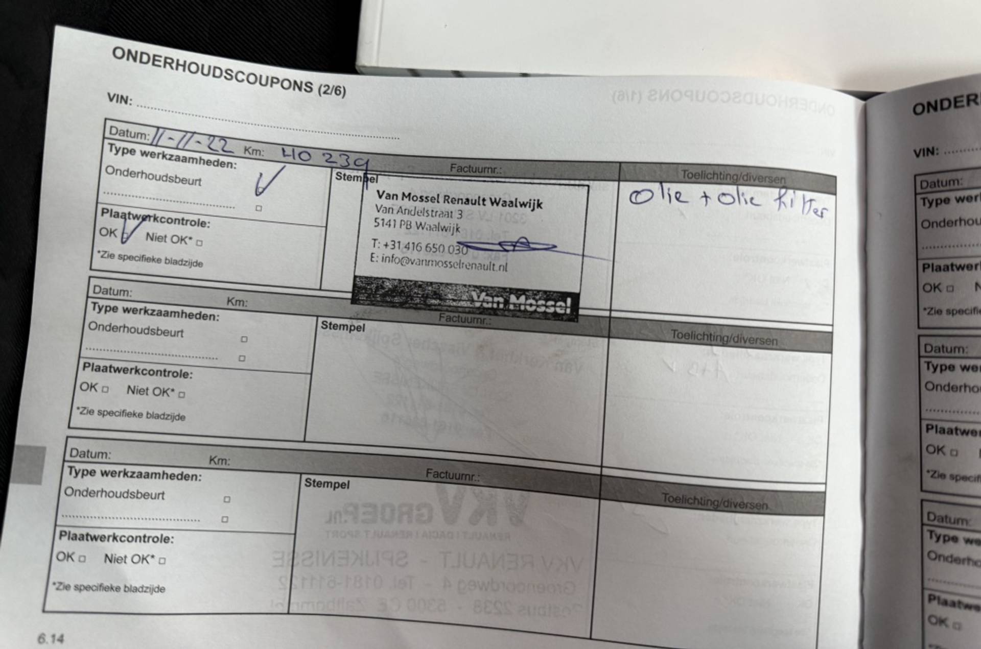 ✓ APK bij aflevering: J