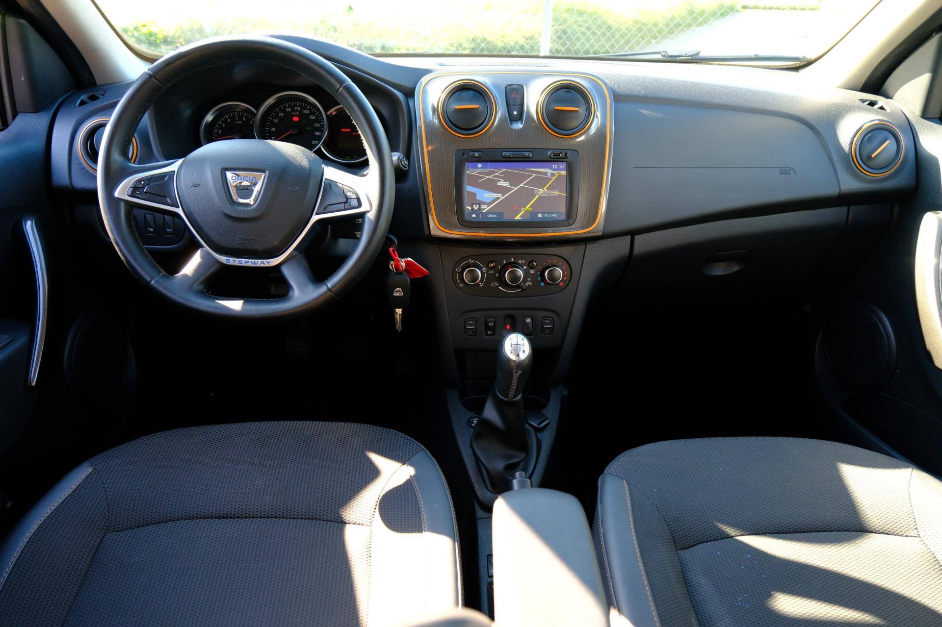 Geen nekkramp of spiegelwerk meer bij het achteruitrijden: de achteruitrijcamera kijkt en ziet alles! U rijdt snel, zuinig en zeker naar uw bestemming met het navigatiesysteem. Het geluidssyteem in deze Dacia Sandero is regelbaar met behulp van de audiobediening op het stuur. De voordelen van de aanwezige cruise control hoeven we niet uit te leggen. Een mooie, constante snelheid - niet te snel, niet te langzaam. Precies goed. In deze auto kiest u zelf uw ideale temperatuur dankzij de airconditioning. Met lederen stuur, centrale deurvergrendeling met afstandsbediening en boordcomputer is deze Dacia helemaal compleet.
