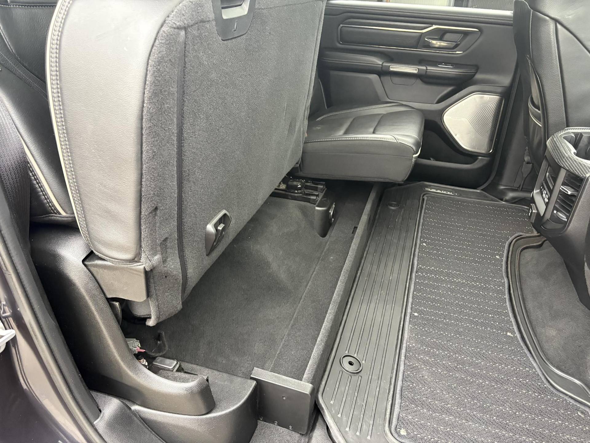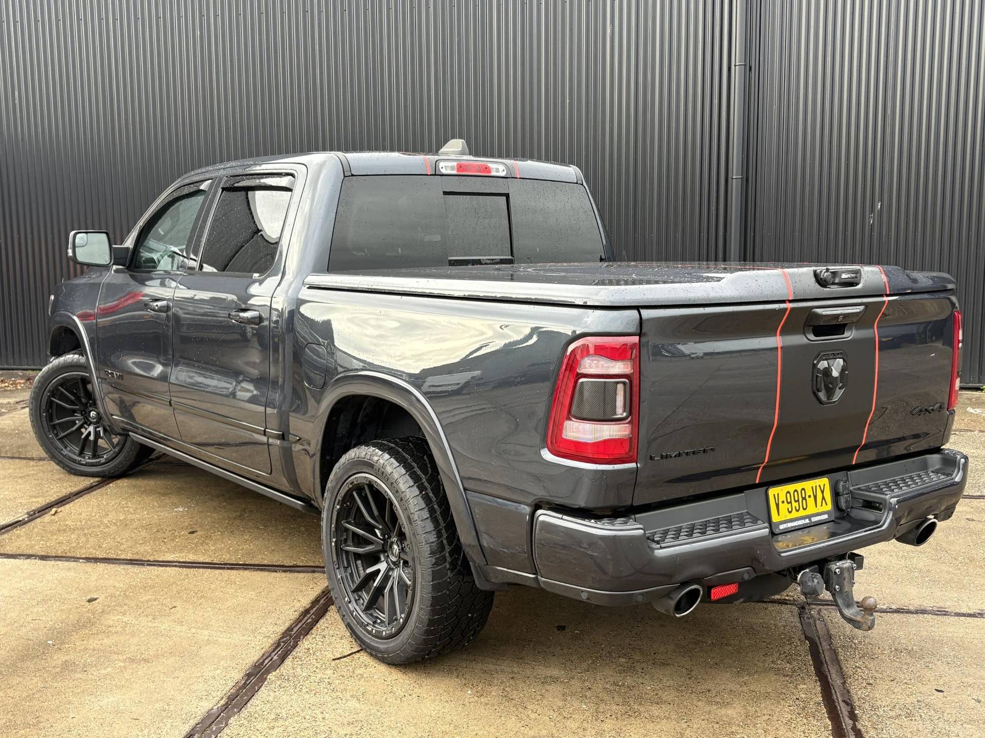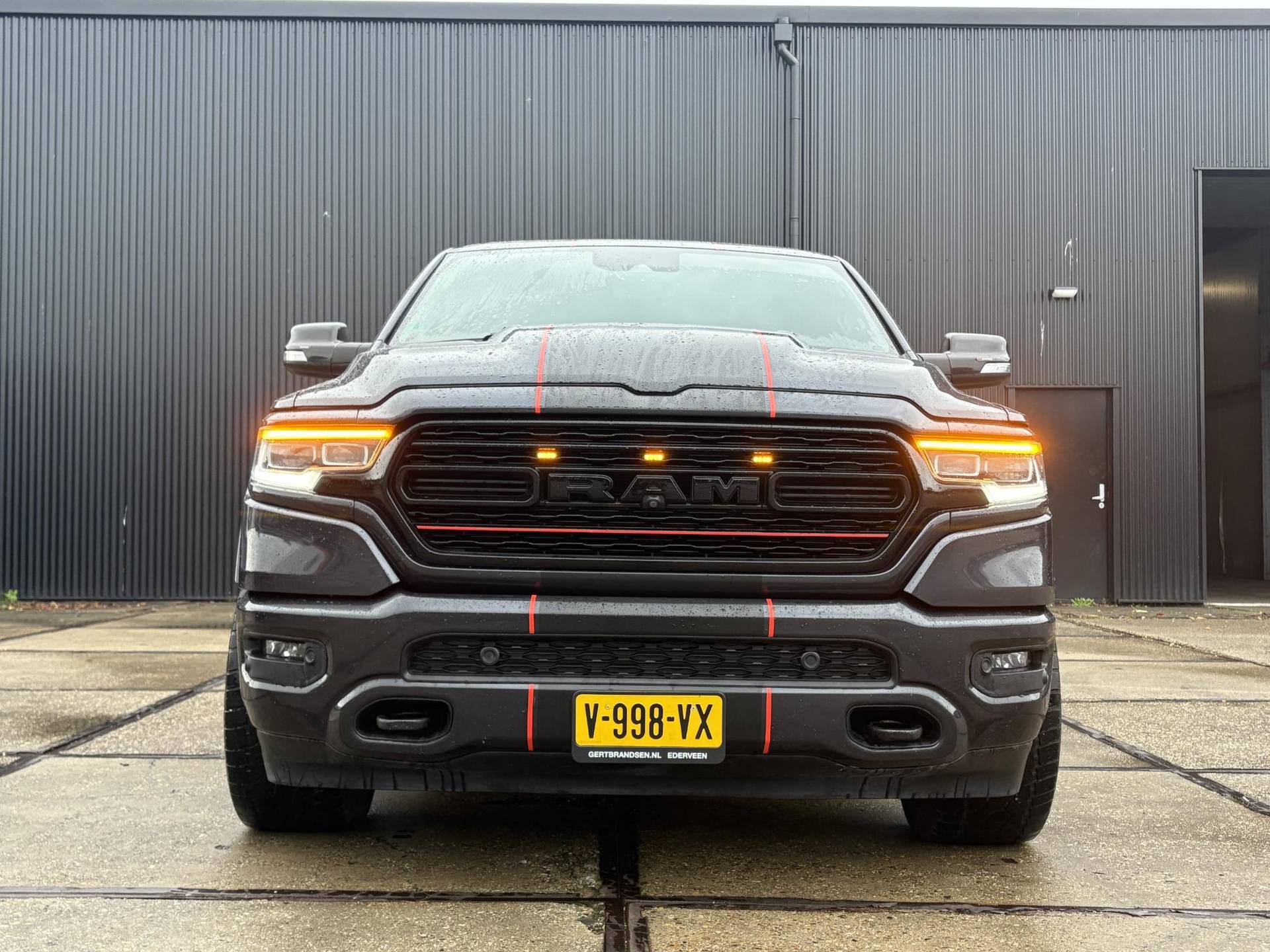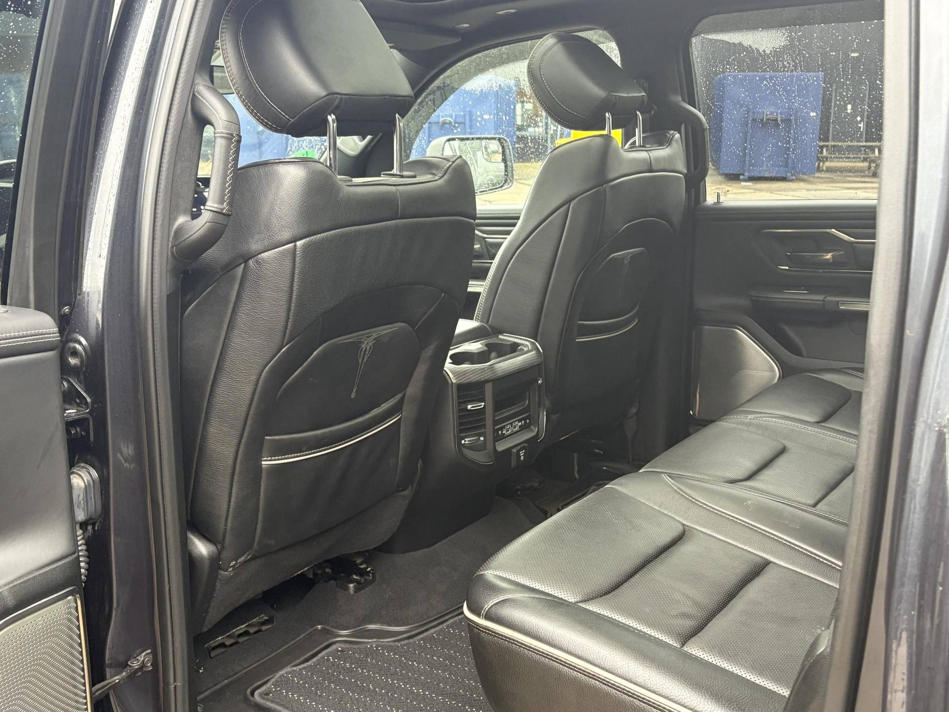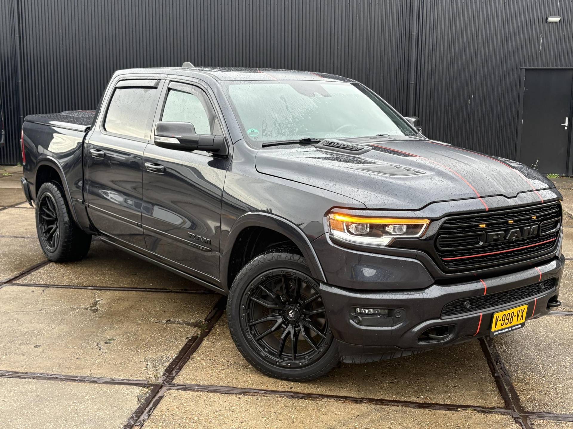 Het exterieur is minstens zo indrukwekkend. De Maximum Steel Metallic lak in combinatie met chroomaccenten, LED-koplampen en -achterlichten, en 22-inch lichtmetalen velgen zorgen voor een stoere en tegelijk verfijnde uitstraling. De elektrisch inklapbare spiegels met geheugen, automatische instapborden (power running boards), en een gedempte tailgate verhogen het gebruiksgemak. Bovendien is deze Ram uitgerust met een Mopar spray-in bedliner, bedverlichting, en handige cargo tie-downs, waardoor ook de laadbak tot in de puntjes doordacht is.