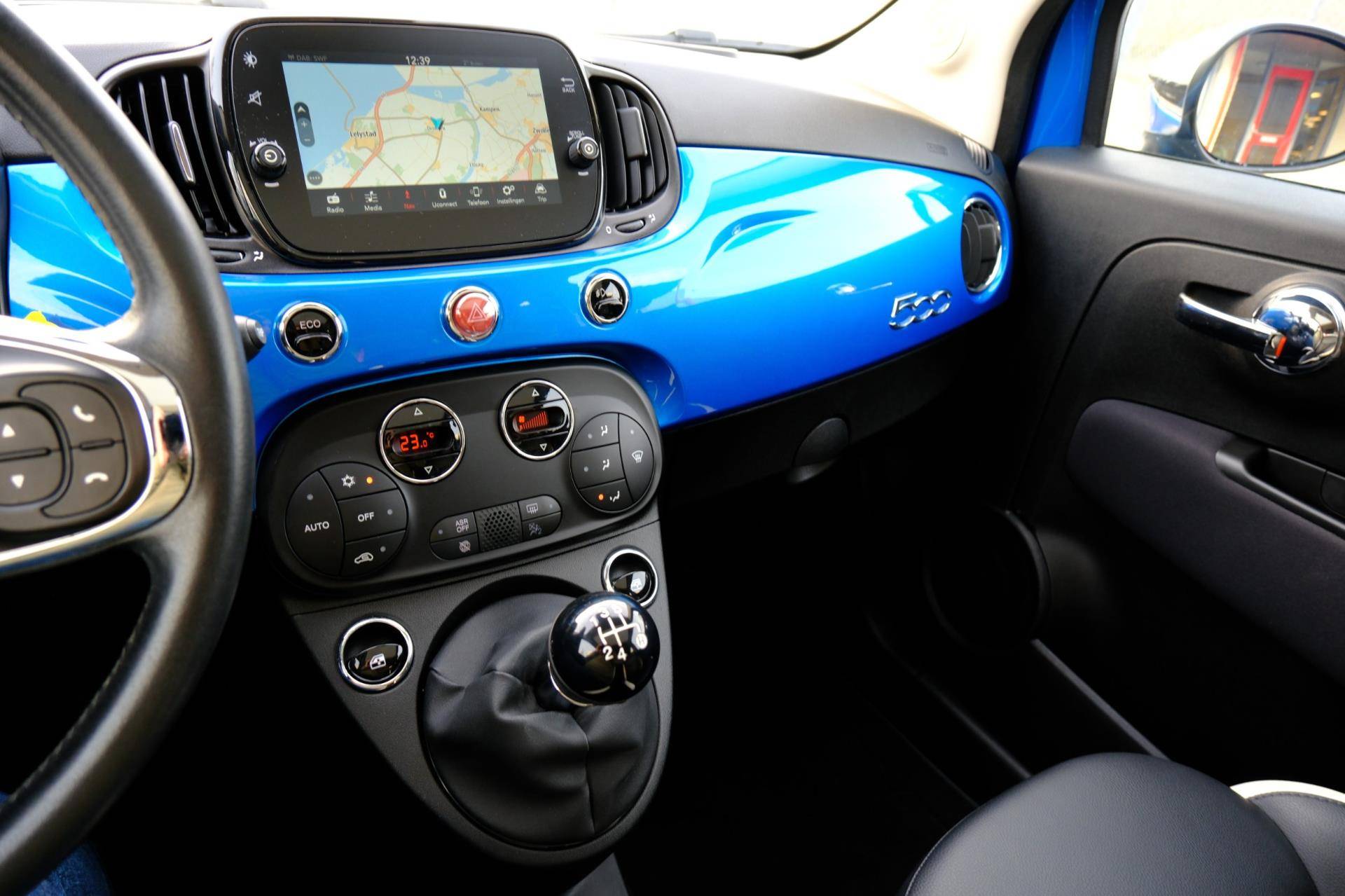 Deze leuke en opvallende Fiat 500 is dealer onderhouden en afkomstig van 1e eigenaar! Hij verloochent zijn Italiaanse roots niet, deze Fiat 500 is een genot om te rijden en bovendien een elegante verschijning. De aandrijving van deze Fiat wordt verzorgd door een tweecilinder motor en een handgeschakelde vijfversnellingsbak. Vergezichten krijgen een extra dimensie door het glazen panoramadak. Ook 16 inch lichtmetalen velgen, halflederen bekleding, warmtewerend glas, LED-dagrijverlichting, in delen neerklapbare achterbank en snelheidsafhankelijke stuurbekrachtiging horen tot de voorzieningen op deze auto.
