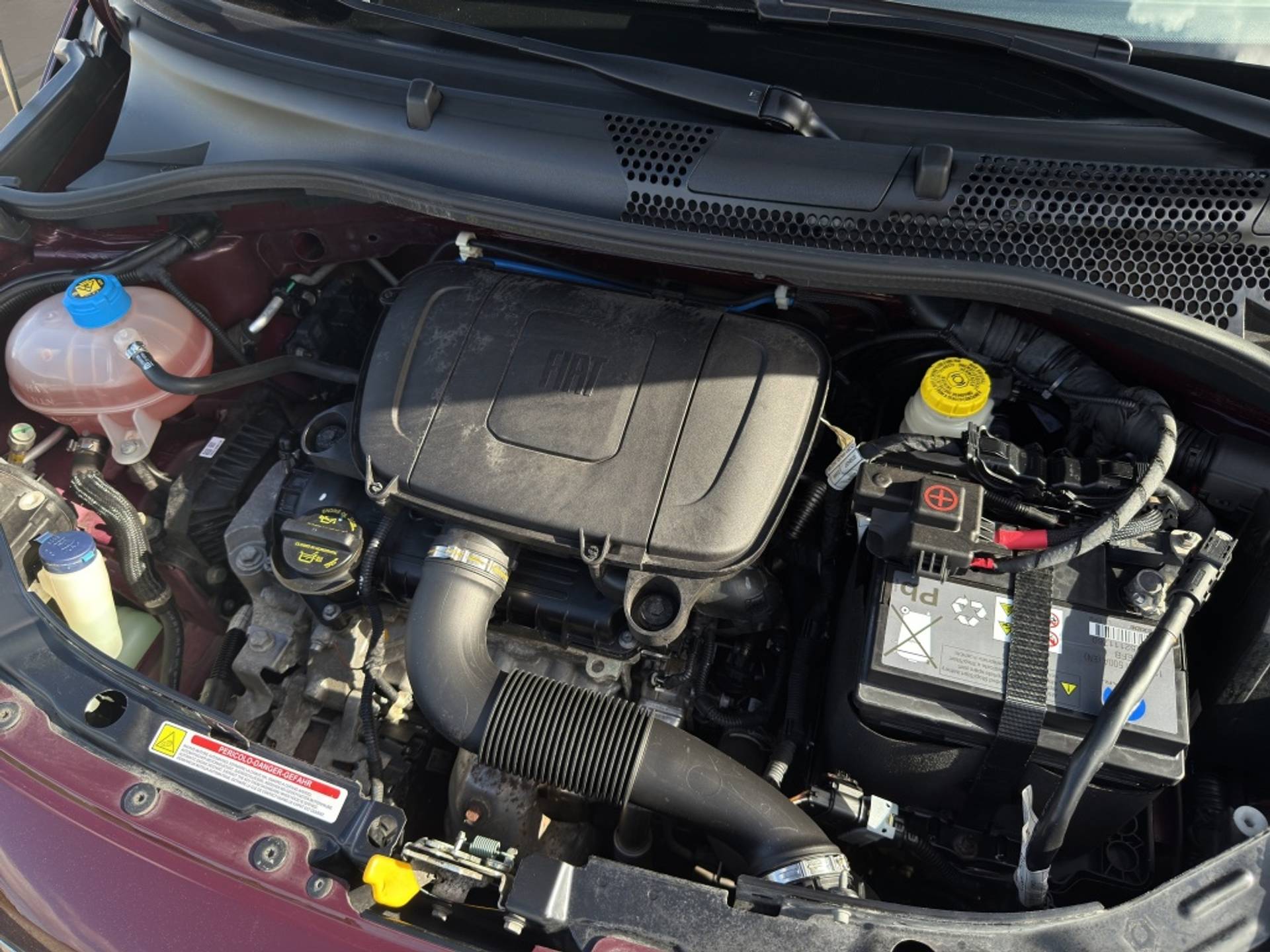 Een uniek kenmerk van deze Fiat is het panoramadak, waardoor u tijdens het rijden kunt genieten van een prachtig uitzicht op de omgeving. Het chique bordeaux rode exterieur met metallic lak en chroom delen geeft deze auto een moderne uitstraling die zeker de aandacht zal trekken.