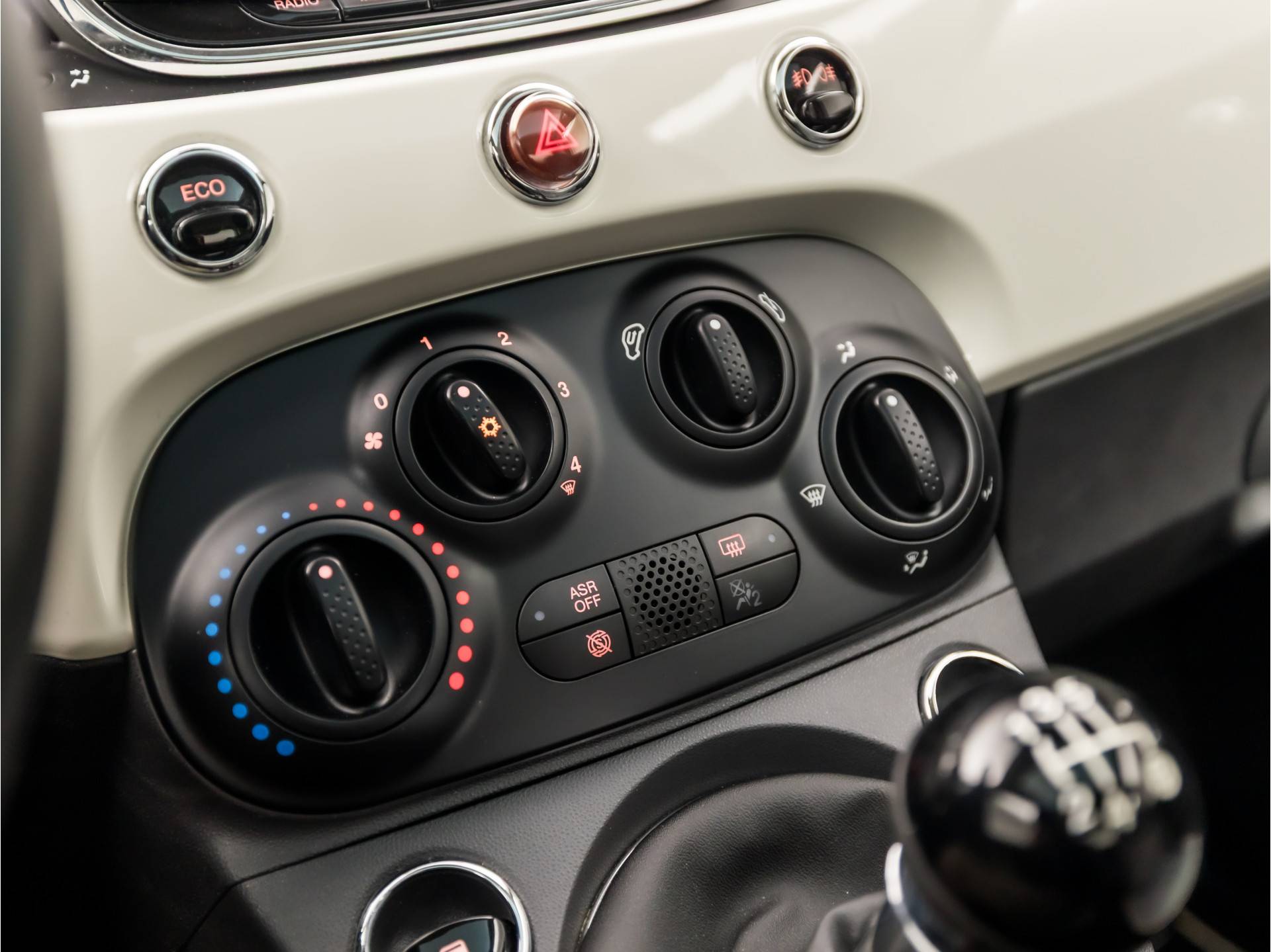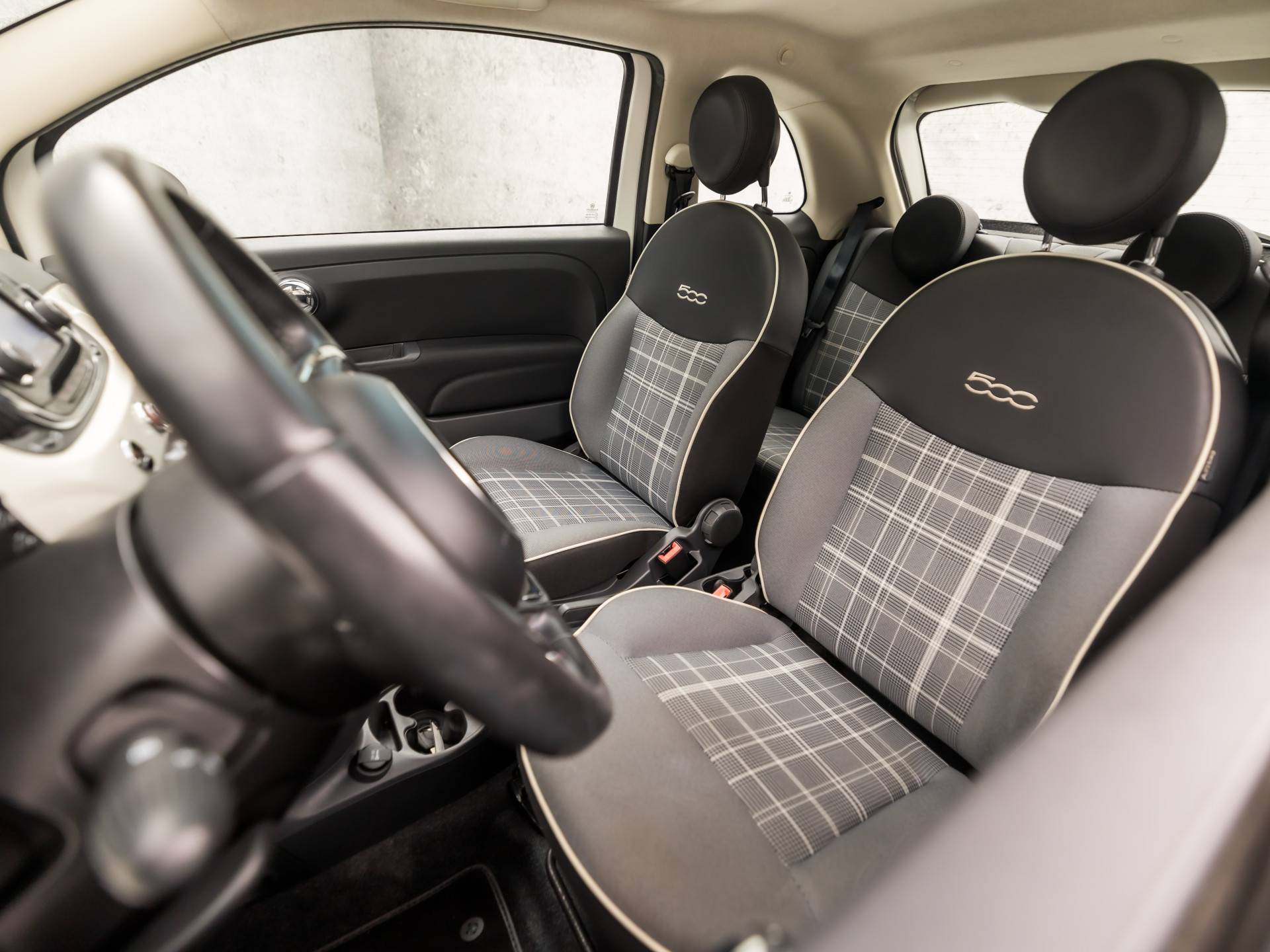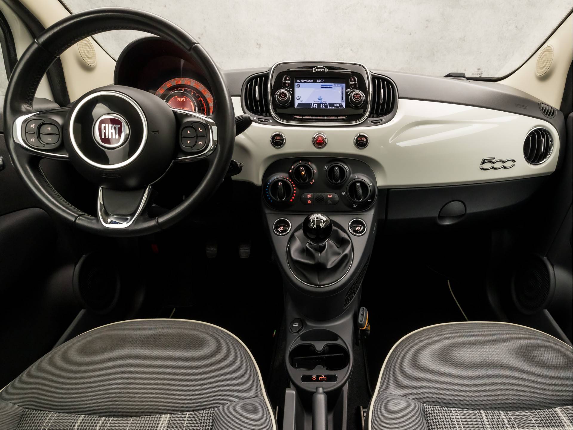 Deze Fiat 500 is voorzien van sensoren aan de achterzijde om een achteropkomend verkeer waarschuwing te geven als de afstand tussen u en een achterligger te klein is. Met climate control hoeft u alleen de gewenste temperatuur in te stellen. Het systeem doet de rest. Met de audiobediening op het stuur bedient u het audiosysteem zonder uw ogen van de weg te halen. Parkeersensoren ondersteunen u tijdens het in- en uitparkeren. En deze auto heeft ook lederen stuur, isofix-aansluiting, centrale deurvergrendeling met afstandsbediening, bagage afdekhoes en boordcomputer als standaard uitrusting.