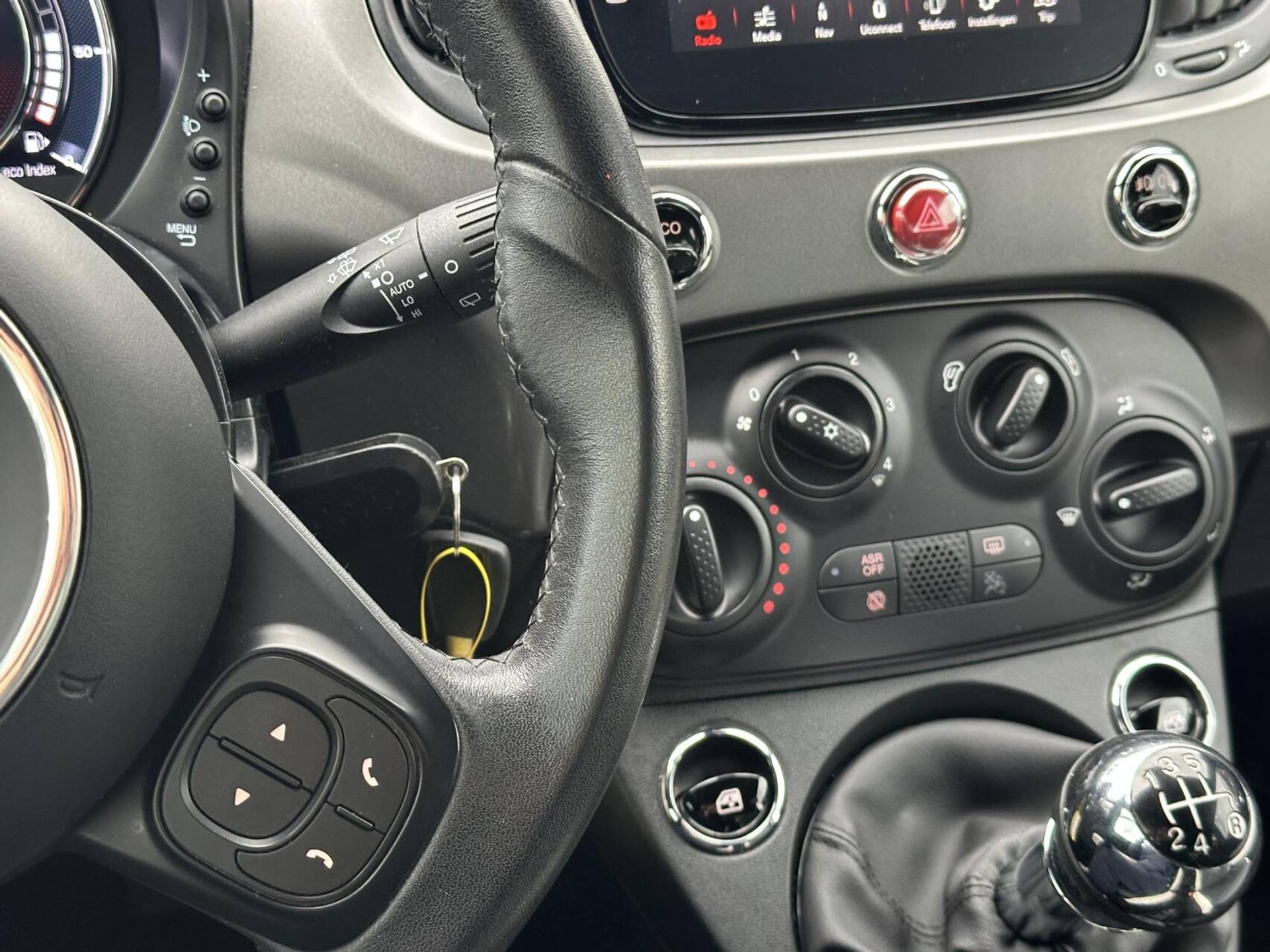 Zoals u mag verwachten van deze Fiat 500 is hij uitgerust met een reeks aan actieve veiligheidssystemen. De Brake Assist geeft een maximale boost aan het remsysteem in een noodsituatie. Zo verkort u de remweg en verkleint u de kans op ongelukken.